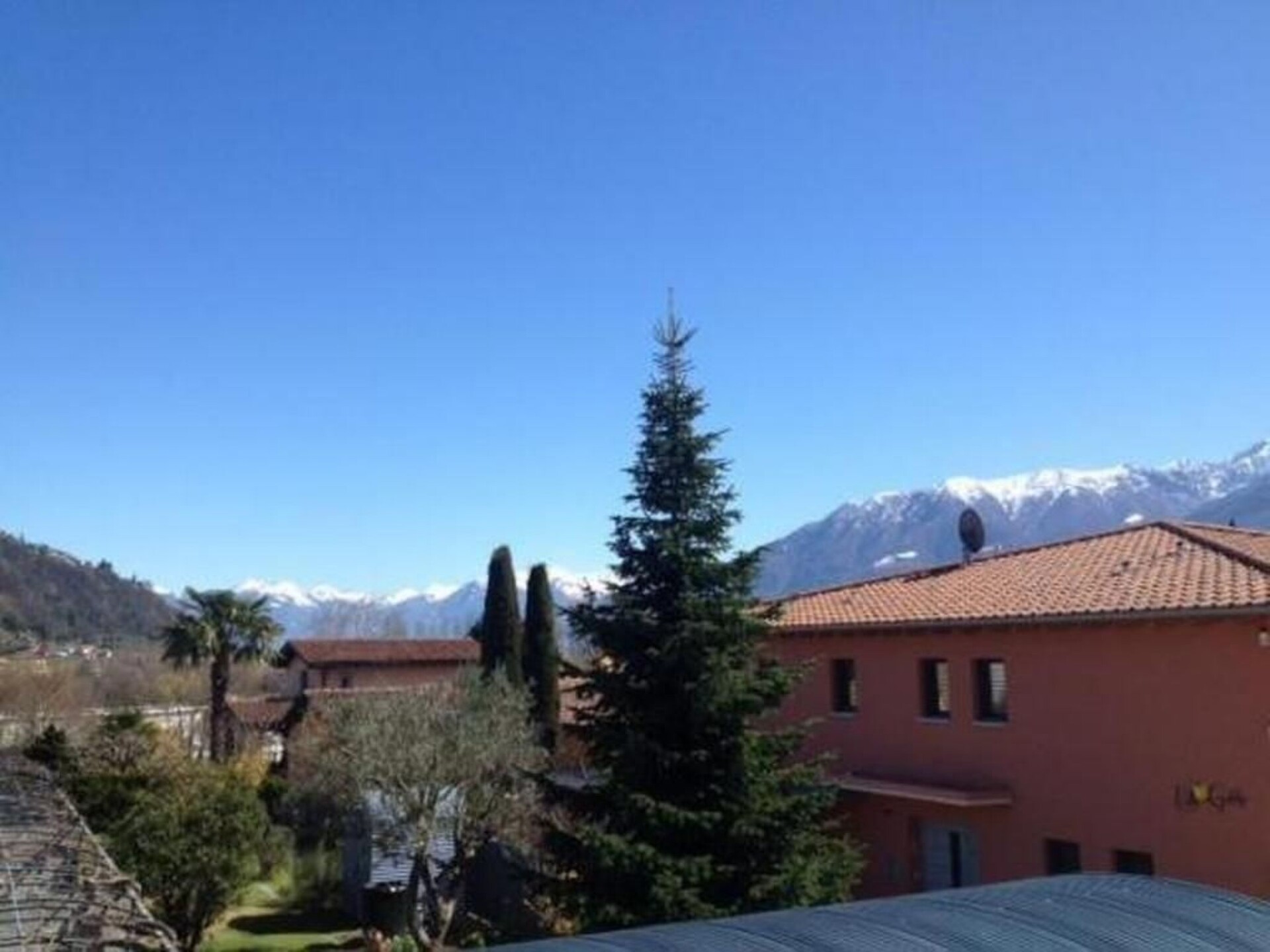 The panoramic flat is located on the 1st floor of Casa Viola and has a lovely balcony. It is in the immediate vicinity of Locarno and Ascona and offers a beautiful panoramic view of the idyllic palm garden and the valleys of Centovalli, Maggia and across to Monte Ceneri and Monte Verita.The flat is equipped to the latest standards, including ceramic hob, dishwasher, white floor tiles and laminate flooring. There is a bathroom with shower and bathtub as well as a separate toilet. The garage is included and belongs to the flat on the 1st floor. The Magggia river and several dream sandy beaches are just a few minutes' walk away. Shops such as the COOP supermarket, bakery, café bar and pharmacy can be reached on foot in 3-5 minutes. The bus station is a 5-minute walk away. The beautiful old town of Losone can be reached in 7 minutes, the three most famous and highly recommended grottos of Losone can be reached on foot through the old town of Losone in 10-15 minutes. Further important addresses, tips for good restaurants and grottos can be found in the dossier, which is available for you in the flat.There is a separate entrance for each flat. The flats are very bright with many windows and are aired and thoroughly cleaned after each stay. The bed linen and towels are washed at 60 degrees.The house can also be booked as a whole - i.e. flat 1st floor and garden flat together. NL-00010105
