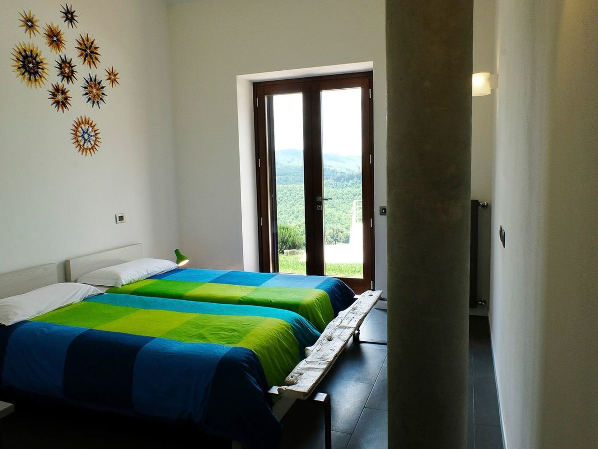The Villa is beautifully positioned in the green Umbrian hills. From the Villa you can see an ancient village with a bell tower romantically illuminated in the evening. It is close to the state road (SS 317) from Marsciano to San Venanzo, a road with low traffic. This makes this villa very easy to reach, but still in a very private position. Marsciano is a medium-large town with all services, restaurants, bars, etc.. From Marsciano you can reach Todi in 10 minutes by car, a beautiful medieval village with a wonderful environment.PADEL enthusiasts can take advantage of the newly opened courts in nearby Marsciano.The Villa is a newly built farmhouse for 8 guests near Marsciano, designed by a well-known contemporary architect on the remains of a 17th century Umbrian farm. Inside and out, the authentic features of the time have been respected, but the interior is finished in a beautiful light modern style. This modern villa is the perfect place to stay and enjoy a beautiful infinity pool and indulge in the typical Umbrian summer. The owner has dedicated all her time and passion to the interior design and has created a very personal, warm and unique modern ambience for herself and her guests, which has been studied in every detail. You will perceive this immediately when you enter the Villa.For stays longer than 30 days, a rental contract for transient use will be signed.For check-ins after 8 p.m. there will be an extra charge. IT055030B403032092