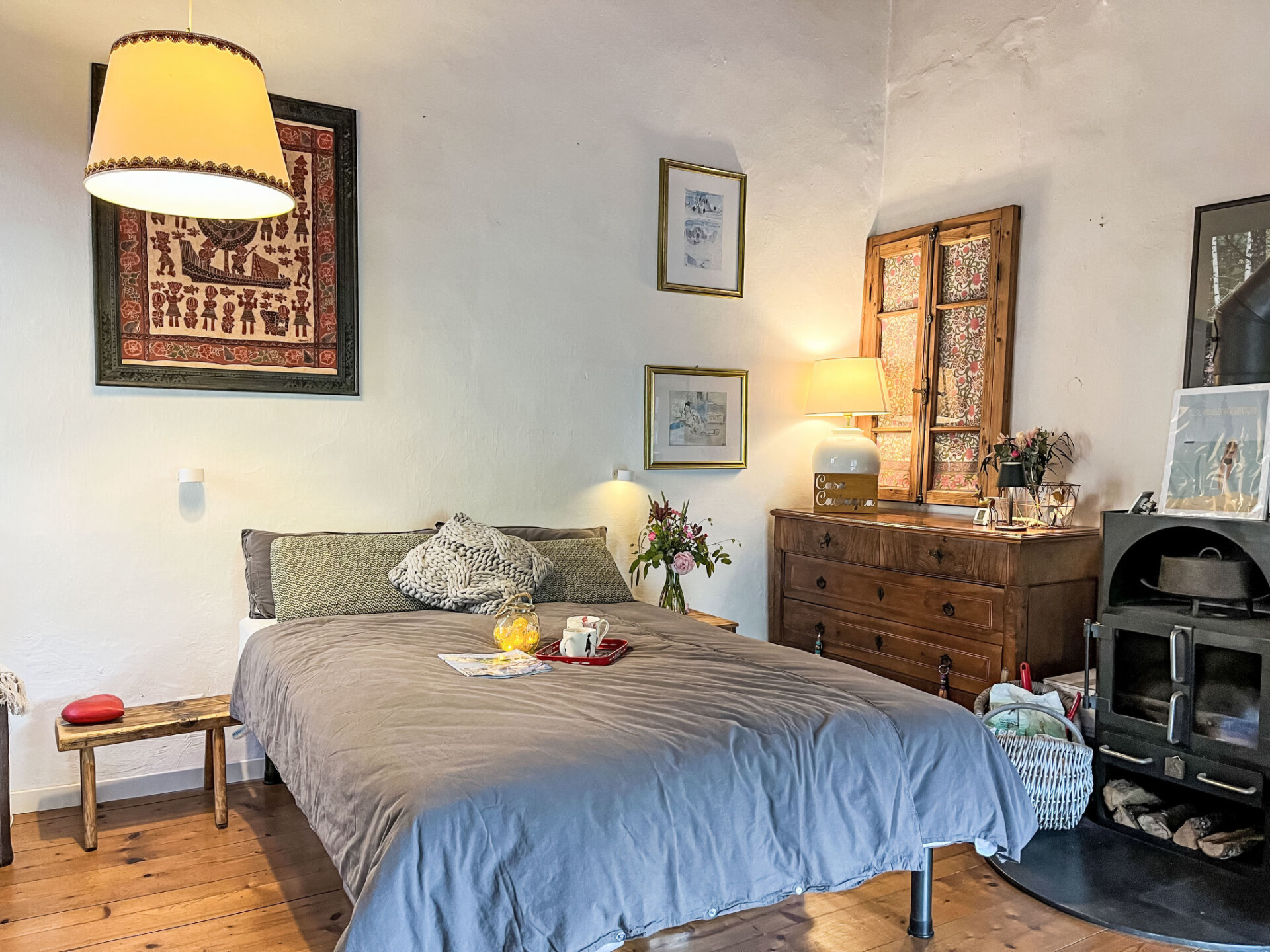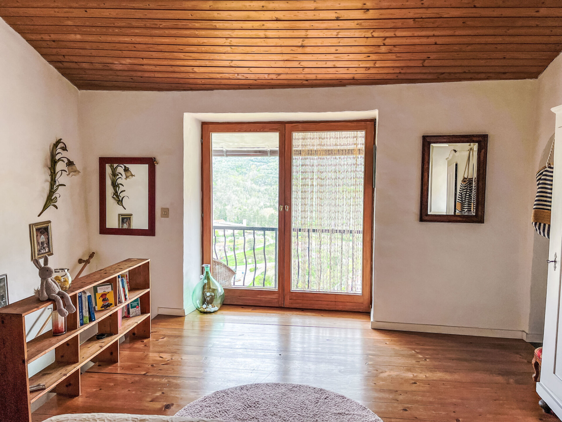 "Castagna", huis in een rij 3-kamers 60 m2. Licht, mooi en gezellig ingericht: woon-/eetkamer met eettafel en houtkachel. Open keuken (oven, afwasmachine, Gasfornuis, 5 kookpitten (vlammen), broodrooster, waterkoker) met houtkachel. Uitgang naar de tuin, naar het terras. Douche/WC. Gas-verwarming. Verwarming alleen beschikbaar van 01.11. tot 15.04. Bovenverdieping: 1 kamer met 1 2-pers bed (1 x 160 cm, lengte 200 cm). Uitgang naar het balkon. 1 kamer met 1 x 2 stapelbedden (140 cm, lengte 200 cm). Parketvloeren. Balkon. Ligstoelen. Mooi panoramazicht op de bergen, het dal en de plaats. Ter beschikking: wasmachine, strijkijzer. IT008010C2AGW3SSLP