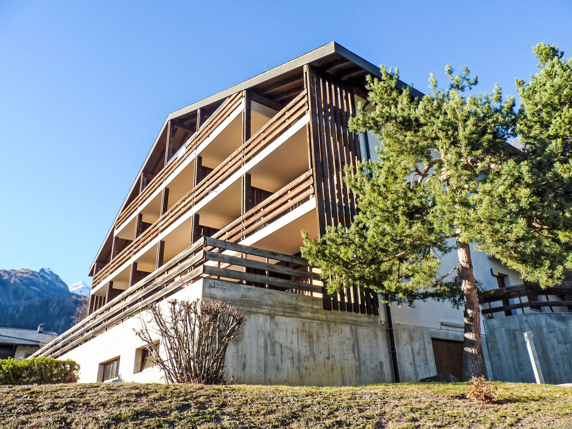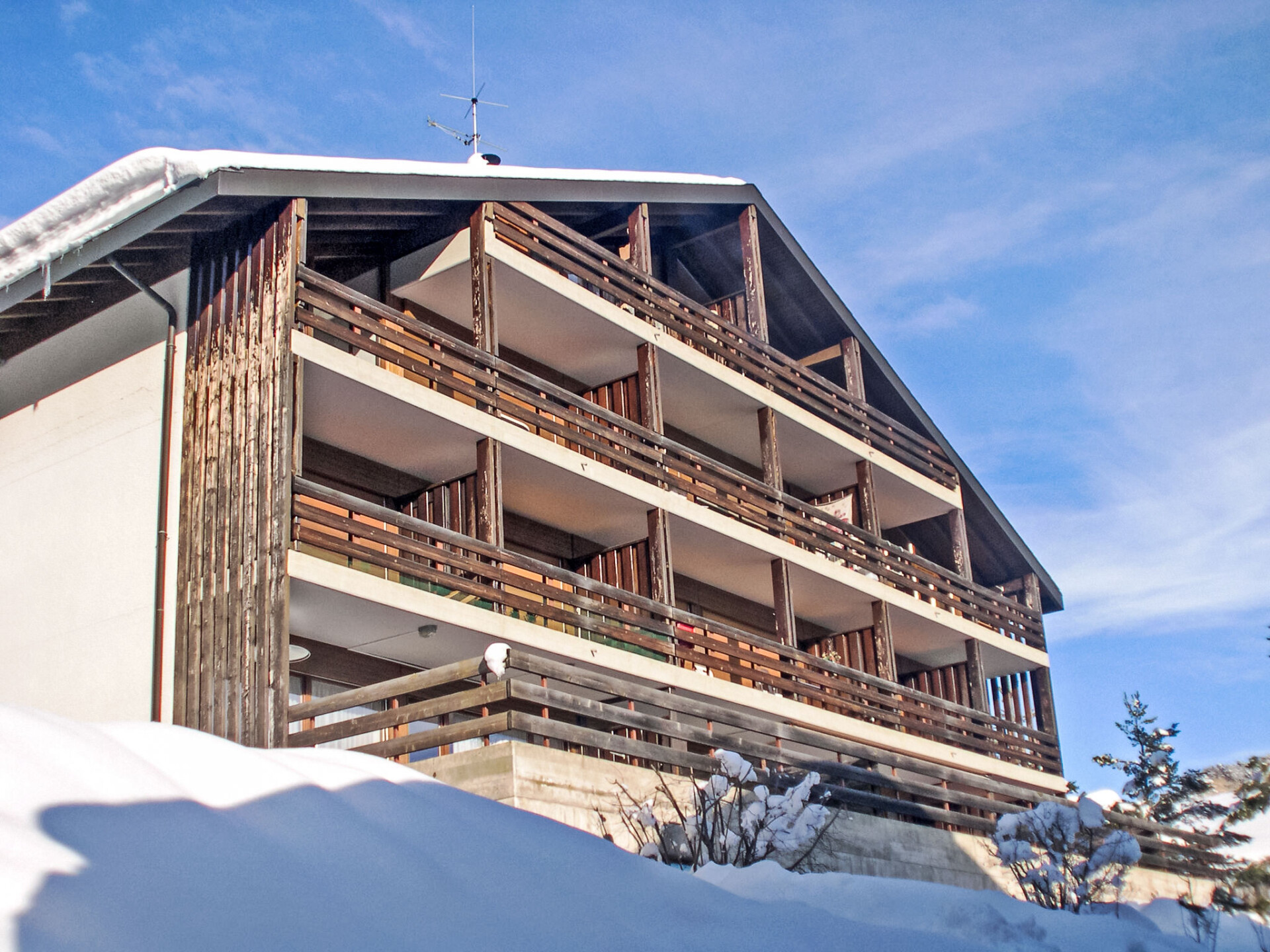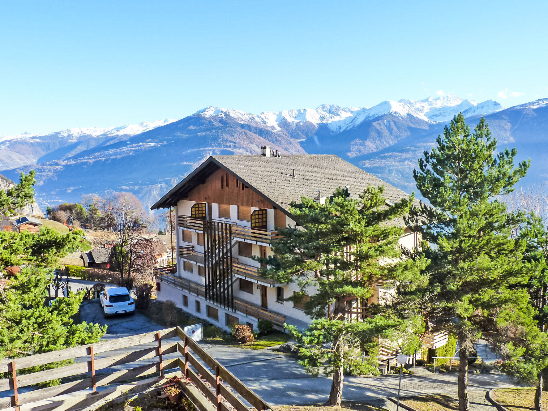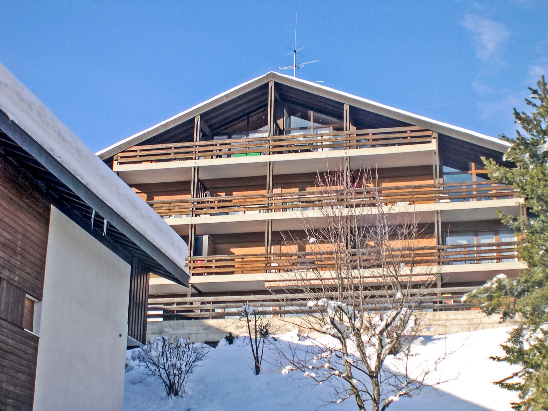 Klein, comfortabel appartementencomplex "Centaure A", van 4 verdiepingen. In de wijk Pont de Pierre, 1.2 km van het centrum van D'OVRONNAZ, 1.9 km van het skigebied, aan een doodlopende weg, op het zuiden. In het huis: centrale verwarming, wasmachine, droger (voor medegebruik, extra). Toegangsweg tot aan het huis (rolstoelhelling). Gemeenschappelijke garage bij het huis. Parkeerplaats of garage alleen voor een kleine/middelgrote auto. Levensmiddelenwinkel 1.3 km, restaurant, bar 430 m, bakkerij 1.3 km, café 430 m, bushalte "Postal Ovronnaz, Pont de Pierre" 370 m, treinstation "Riddes" 10.1 km, thermaalbad 430 m. Tennis 2 km, stoeltjeslift 1.9 km, skiverhuur 1.3 km, skibushalte 50 m, skischool 1280 km, langlaufloipe 2.5 km. Gratis skibus. Autobaan 10.3 km van het huis. Spoorweg 11.1 km van het huis.