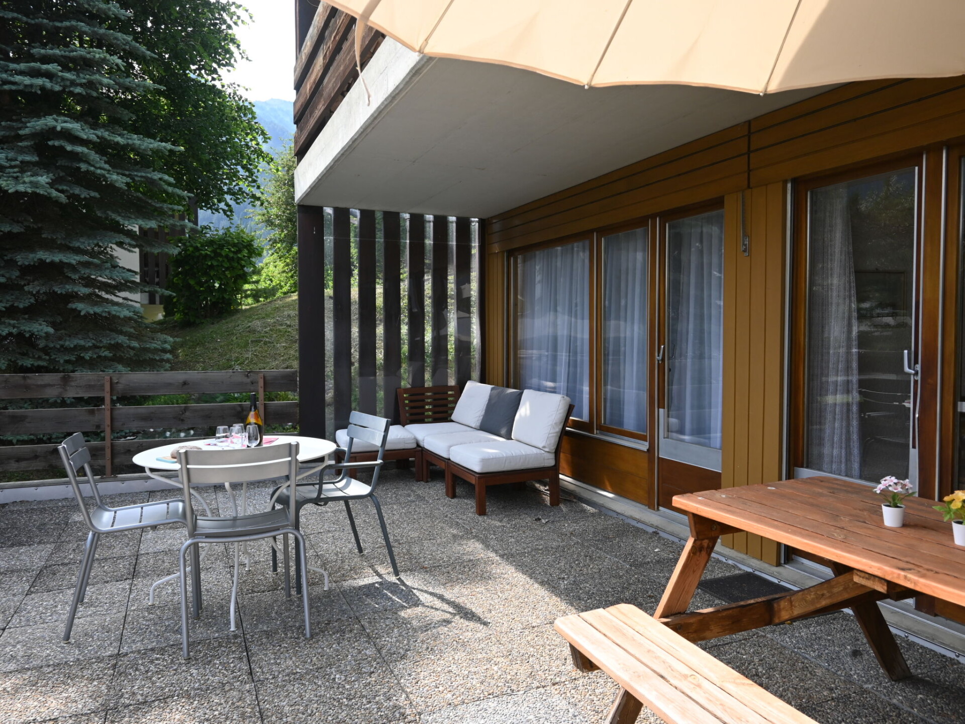 "Centaure B RI 1", appartement 3-kamers 80 m2, op de begane grond, op het zuiden gelegen. Ruim, doelmatig en comfortabel ingericht: hal. Groot woon-/eetkamer met 1 2-pers divanbed (2 x 80 cm, lengte 160 cm), Flatscreen TV. Uitgang naar het terras, op het zuiden. 1 kamer met 1 2-pers bed (2 x 80 cm, lengte 200 cm). Uitgang naar het terras, op het zuiden. 1 kamer met 1 2-pers bed (2 x 80 cm, lengte 200 cm). Kleine, open keuken (4-pits kookplaat, broodrooster, waterkoker, elektrische koffiemachine, pads voor de koffiemachine (Nespresso) extra, raclette oven, fondue Set (kaas)). Bad/WC, aparte WC. Groot terras 35 m2, op het zuiden gelegen. Terrasmeubelen. Uitzicht op de bergen. Ter beschikking: wasmachine (extra). Droger (extra), strijkijzer, kinderbed, haardroger. Garage nr. RI 1 (1 Auto), hoogte 185 cm, breedte 360 cm. Geschikt voor families. Niet rokers woning.