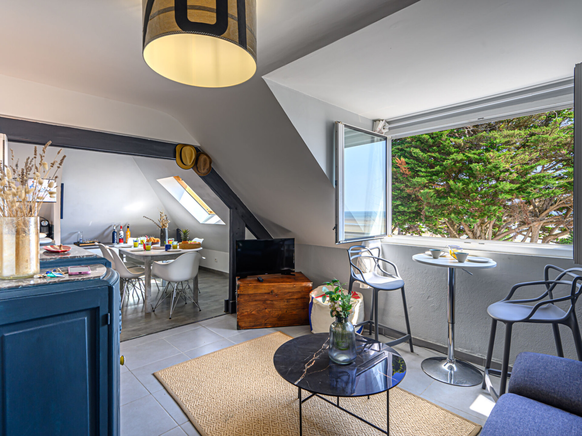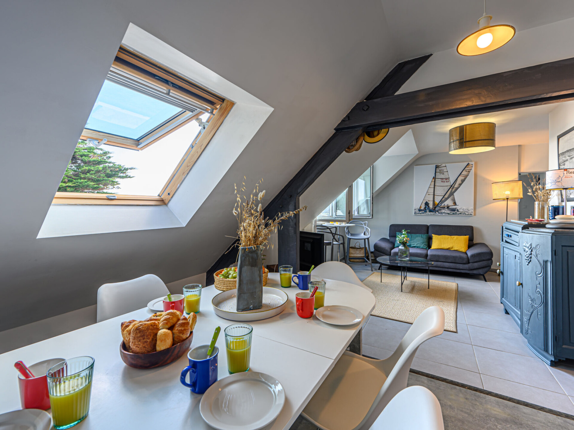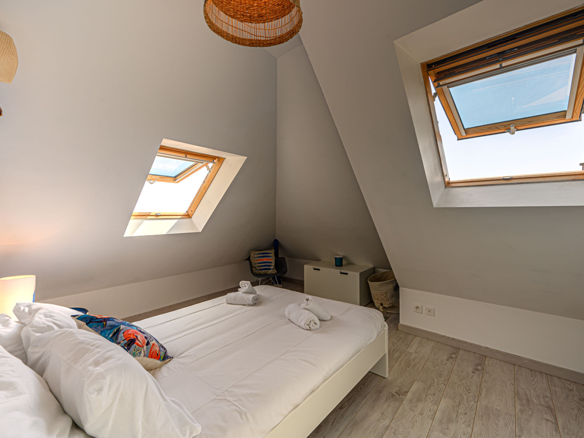 Appartement 4-kamers 55 m2 op de 3e verdieping. Comfortabel ingericht: woon-/eetkamer met TV (Flatscreen TV). 2 kamers met afgeschuinde daken, elke kamer heeft 1 2-pers bed (1 x 140 cm, lengte 190 cm). 1 kamer met afgeschuinde daken met 1 bed (90 cm, lengte 190 cm), 1 2-pers bed (1 x 140 cm, lengte 190 cm). Open keuken (oven, afwasmachine, 3 keramische glas kookplaten, broodrooster, waterkoker, elektrische koffiemachine, pads voor de koffiemachine (Nespresso) extra). Douche/WC. Elektrische verwarming. Zeer mooi uitzicht op zee. Ter beschikking: wasmachine, strijkijzer, haardroger. Internet (WiFi, extra). Rookmelders. Aanbod door een particulier volgens art. 155, IV van CGI. 56258000154FF
