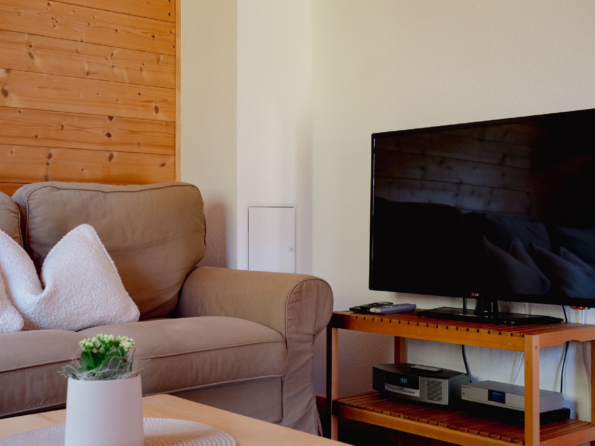 Appartement 4-kamers 100 m2, op de begane grond. Smaakvol en met veel hout ingericht: hal. 3 2-pers. kamers. Woon-/eetkamer met Sat-TV. Uitgang naar de tuin, naar het terras. Open keuken (afwasmachine, 4 inductiekookplaten, magnetron). Douche/WC, bad/douche/WC. Vloerverwarming. Comfortabele inrichting in landelijke stijl. Uitzicht op de bergen en het landschap. Ter beschikking: kluis, haardroger. Internet (Internet (WiFi)). Rookvrij huis. Geschikt voor allergiepatiënten, rookmelders. Let op: Niet meer dan 6 personen zijn toegestaan in het appartement!
