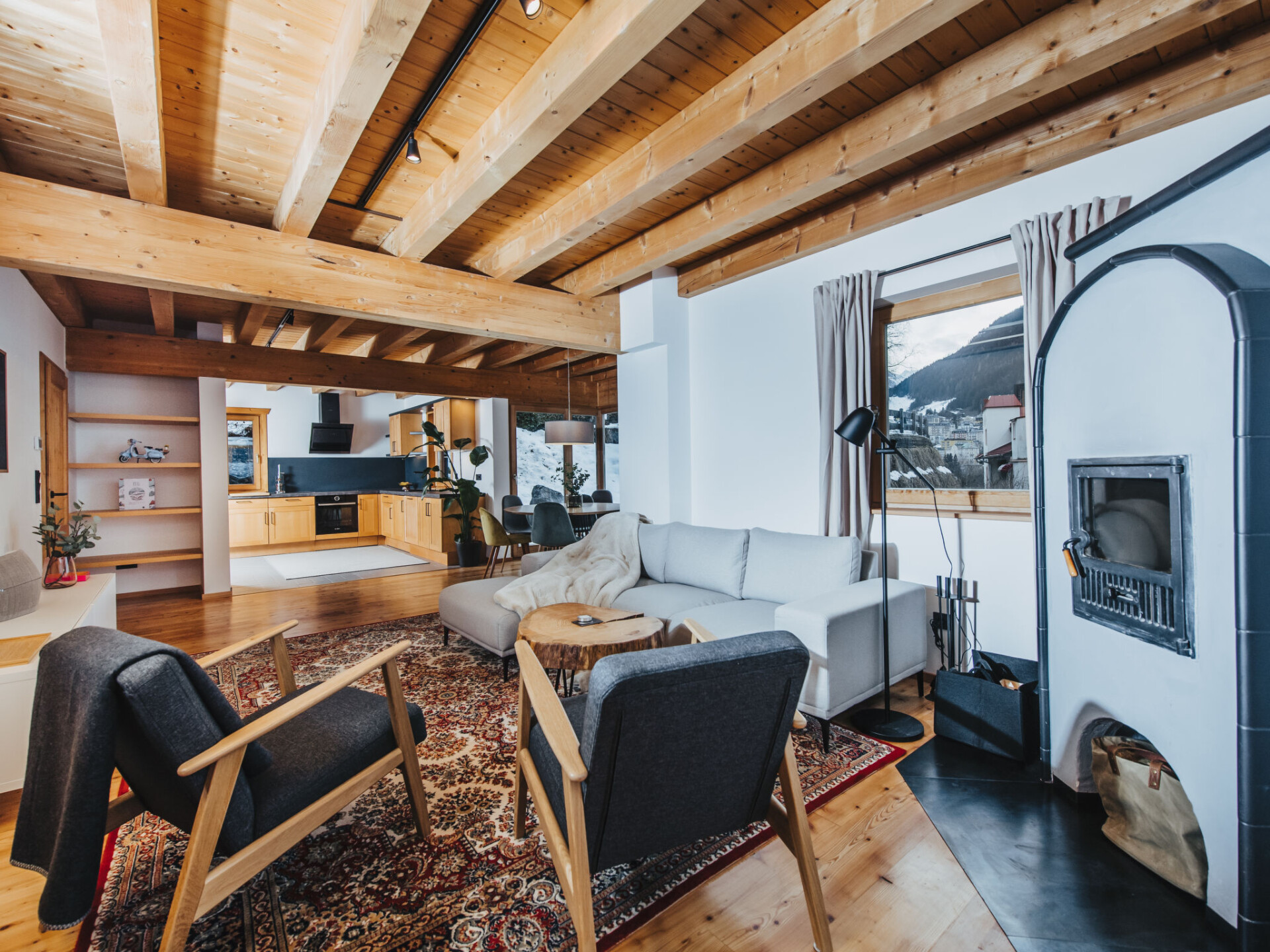 "Chalet 1018", chalet 5-kamers 110 m2 op 2 verdiepingen. Volledig gerenoveerd in 2022, zeer mooi en modern ingericht: hal met aparte WC. Woon-/eetkamer met eettafel en Kabel-TV (Flatscreen TV), tegelkachel. Uitgang naar het terras. Groot bureau. Groot woonkeuken (4-pits kookplaat, oven, afwasmachine, 4 keramische glas kookplaten, broodrooster, waterkoker, magnetron, diepvriezer, elektrische koffiemachine). Bovenverdieping: 3 2-pers. kamers. Douche/WC, bad/douche/WC. Elektrische verwarming. Parketvloeren. Terras. Terrasmeubelen, balkonmeubilair, ligstoelen. Mooi uitzicht op de bergen en het bos. Ter beschikking: wasmachine, droger, haardroger. Internet (Internet (WiFi), gratis). Niet rokers woning. Rookmelders, brandblusser. 50403-000483-2023