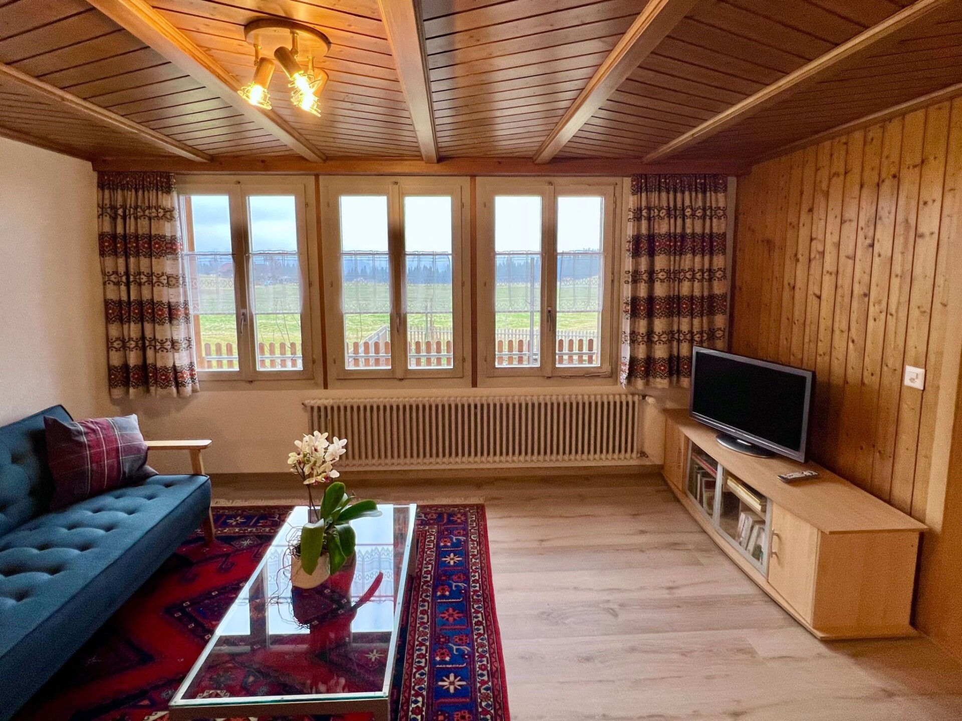 Discover the magic of the Bernese Oberland with a stay in our inviting holiday flat in Buchholterberg. Nestled in the picturesque mountain landscape, this cosy domicile is the ideal retreat for a small family or group of up to 5 people. Immerse yourself in the breathtaking natural beauty, enjoy the peace and quiet away from the hustle and bustle and experience unforgettable days surrounded by impressive scenery.The holiday flat boasts well thought-out furnishings to make your stay as comfortable as possible. With two bedrooms and a bathroom equipped with both a shower and bathtub (without WC) as well as a separate WC, there is enough privacy for all guests. There is also a washing machine for sole use - ideal for longer stays. The partial underfloor heating provides cosy warmth on cooler days. In the kitchen, a capsule coffee machine, kettle and dishwasher make everyday life easier, leaving more time for exploring the surrounding area.A striking feature of this holiday flat on the ground floor is the charming terrace. There you can relax in a cosy atmosphere while surrounded by a spacious garden for communal use. The garden offers a peaceful oasis where you can enjoy the fresh mountain air and the tranquillity of nature to the full. As the landlord also lives on the property, he will be happy to answer any questions or concerns you may have.The surrounding region of Buchholterberg is a true paradise for nature lovers and active holidaymakers. With a cross-country ski trail practically on the doorstep, ski lifts and ski schools just a few kilometres away, the opportunities for winter sports are almost limitless. In summer, hikes, bike rides and excursions to the nearby lakes are on offer. The nearest village centre with grocery shops is just 500m away. You can also explore the nearby Bernese Oberland with its picturesque villages and impressive peaks, all of which are easily accessible by car or public transport.Be enchanted by the beauty and diversity of the Swiss Alps and make our holiday flat in Buchholterberg your next holiday destination. Here you will find the perfect mix of relaxation, nature and regional culture. Experience unforgettable days surrounded by the fascinating mountains and breathtaking landscapes of the Bernese Oberland. The ideal choice for anyone who wants to escape from everyday life and enjoy pure relaxation.