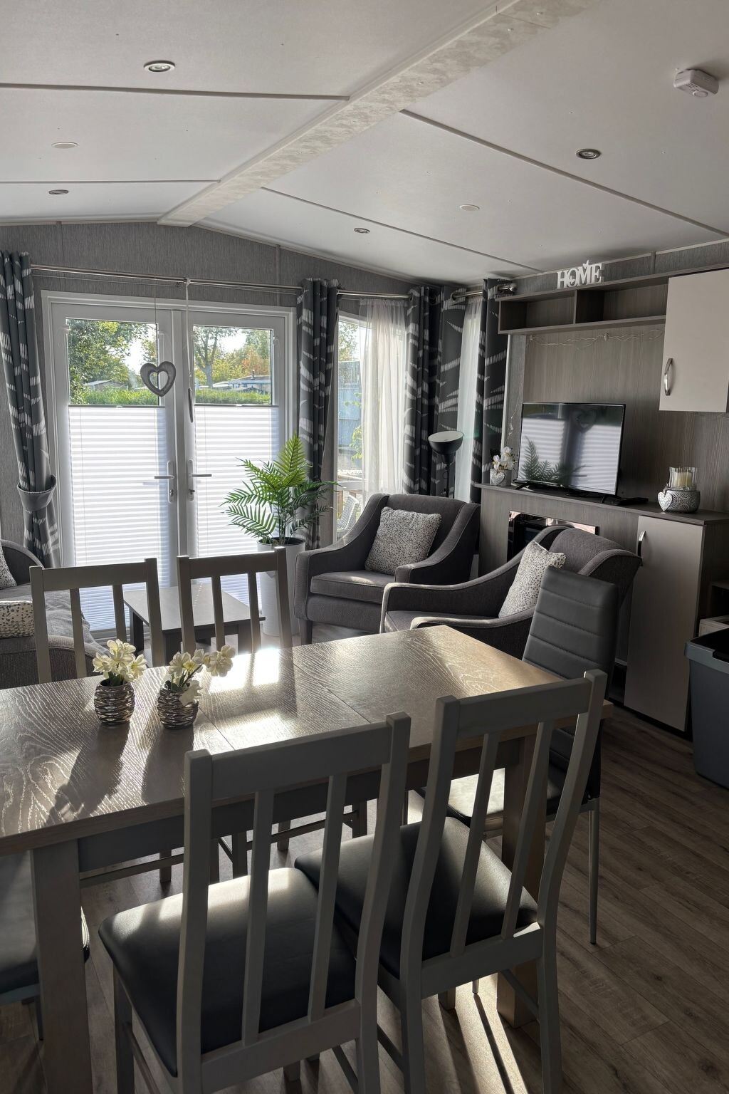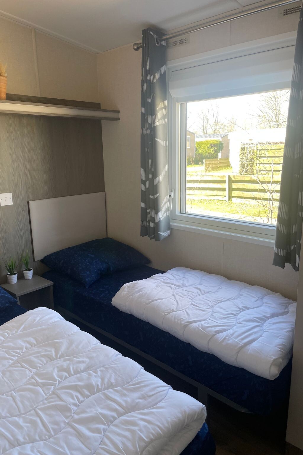 Discover our holiday chalet "Chiara", which offers you an exclusive break in the all-year premium holiday park directly on the Lauwersmeer. Ideal for up to 6 people, enjoy a unique holiday experience on the edge of the Wadden Sea, between Groningen and Friesland. Tucked away at the small marina, the quiet location of our chalet promises an unforgettable stay in the midst of an idyllic natural setting - a dream for every nature and water sports lover.The interior of our chalet leaves nothing to be desired. With three bedrooms, including one with a double bed and two others with two beds each, you will find enough space and comfort for a restful night's sleep. The bathroom is equipped with a WC and shower, and there is also a separate WC. The spacious living room with integrated kitchenette is equipped with everything you need for your stay: Oven, fridge, dishwasher, two different coffee machines and a toaster. A flat-screen TV and free Wi-Fi provide entertainment in the evening. On cooler days, the heating will keep you cosy.Outside, you will find a spacious wooden terrace with comfortable patio furniture and a barbecue grill - perfect for unwinding. Just a few steps away, the water invites you to relax and enjoy activities. The chalet also provides two parking spaces directly at the house so that you can enjoy the natural surroundings as carefree as possible.The area around the Lauwersmeer is an absolute paradise for nature lovers and active holidaymakers. Discover the nearby bird sanctuary, explore the forests and paths on foot or by bike. Water sports and boat trips are possible thanks to the ideal location on the Lauwersmeer and the neighbouring North Sea. The holiday park itself offers a wealth of leisure activities - from an indoor playground to a water playground, bike hire, tennis court and much more to make every day of your holiday varied and unforgettable.Choose our chalet "Chiara" for a holiday that perfectly combines relaxation and activity. We guarantee you high-quality facilities and an outstanding location that allows you to explore the unrivalled beauty of the North Sea and the Wadden Sea. Look forward to an incomparable holiday experience - we look forward to your booking and to welcoming you.