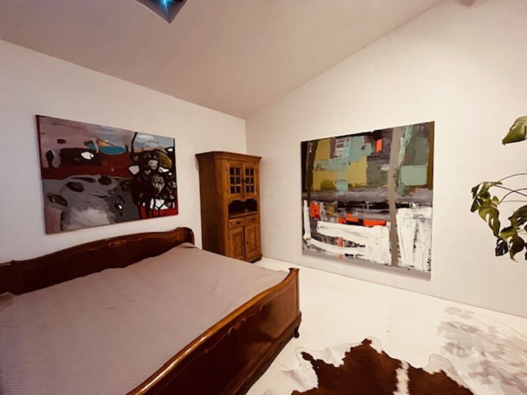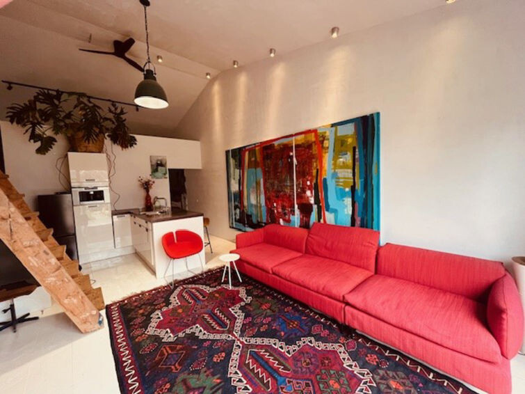 "Juna’s loft", appartement 2-kamers 80 m2. Comfortabel ingericht: woon-/eetkamer met eettafel, Flatscreen TV, radio en houtkachel. Uitgang naar de tuin. Kleine kookhoek (4-pits kookplaat, oven, waterkoker, elektrische koffiemachine). Douche/WC. Verwarming. Bovenverdieping: (ladder), 1 kamer met 1 2-pers bed, zitbad en Flatscreen TV. Terras, tuin. Terrasmeubelen, barbecue. Ter beschikking: haardroger. Internet (Internet (WiFi), gratis). Parkeerplaats bij het huis. Niet rokers woning. Rookmelders. 0373 0812 3610 52HW BUSM