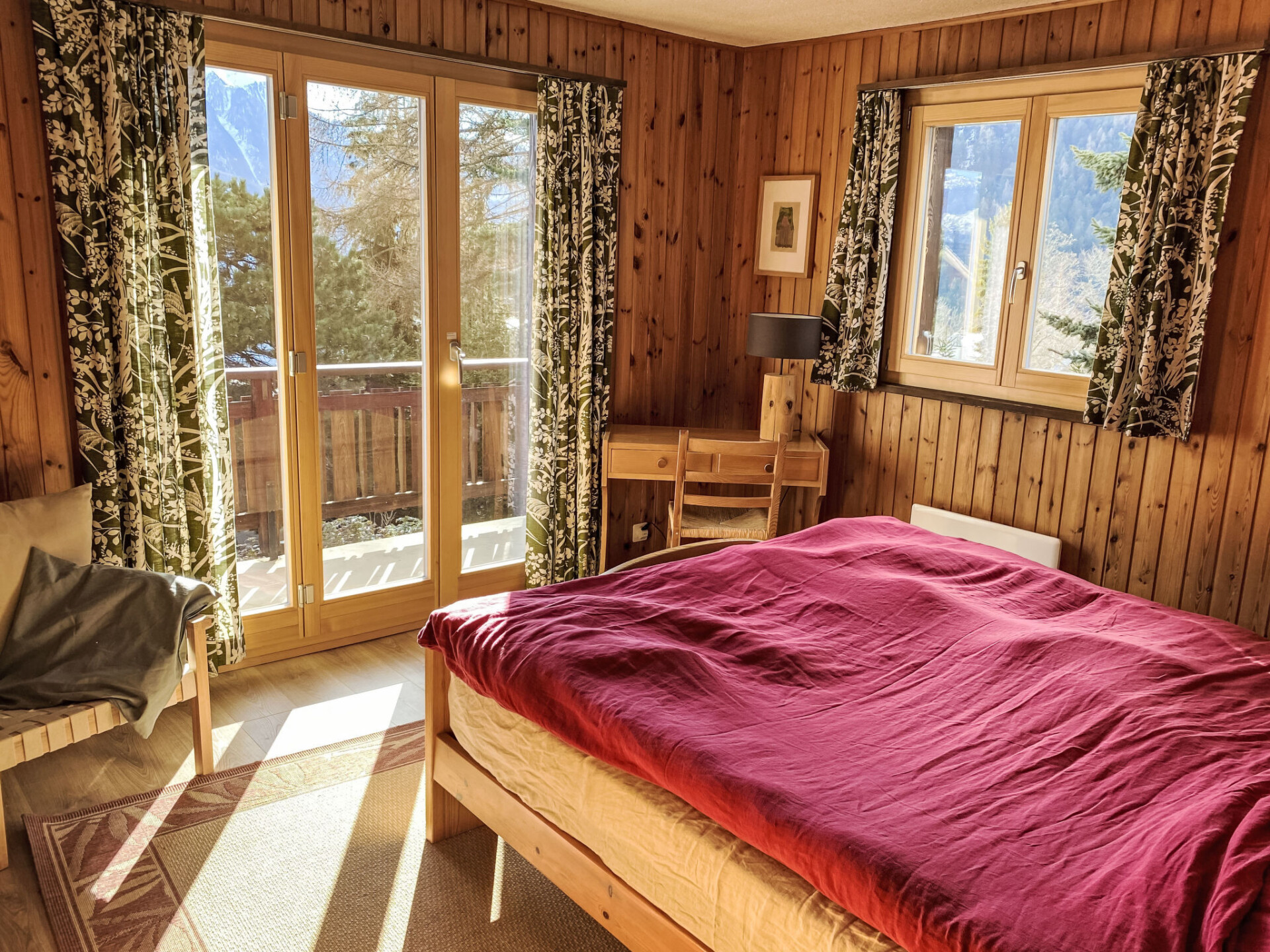 "L'Alpage", chalet 4-kamers 110 m2 op 2 verdiepingen, op het zuiden gelegen. Doelmatig en comfortabel ingericht: souterrain: 1 kamer met 1 2-pers bed (2 x 80 cm). 1 kinderkamer met 1 x 2 stapelbedden (90 cm). 1 kamer met 2 bedden (90 cm). Bad/WC. Bovenverdieping: woon-/eetkamer met open haard en Sat-TV (Flatscreen TV), stereo-installatie en DVD. Uitgang naar het balkon. Keuken (oven, afwasmachine, diepvriezer). Douche/WC. Balkon. Terrasmeubelen, barbecue. Zeer mooi uitzicht op de bergen en het dal. Ter beschikking: wasmachine, strijkijzer, haardroger. Internet (Internet (WiFi), gratis). Garage. Niet rokers woning.