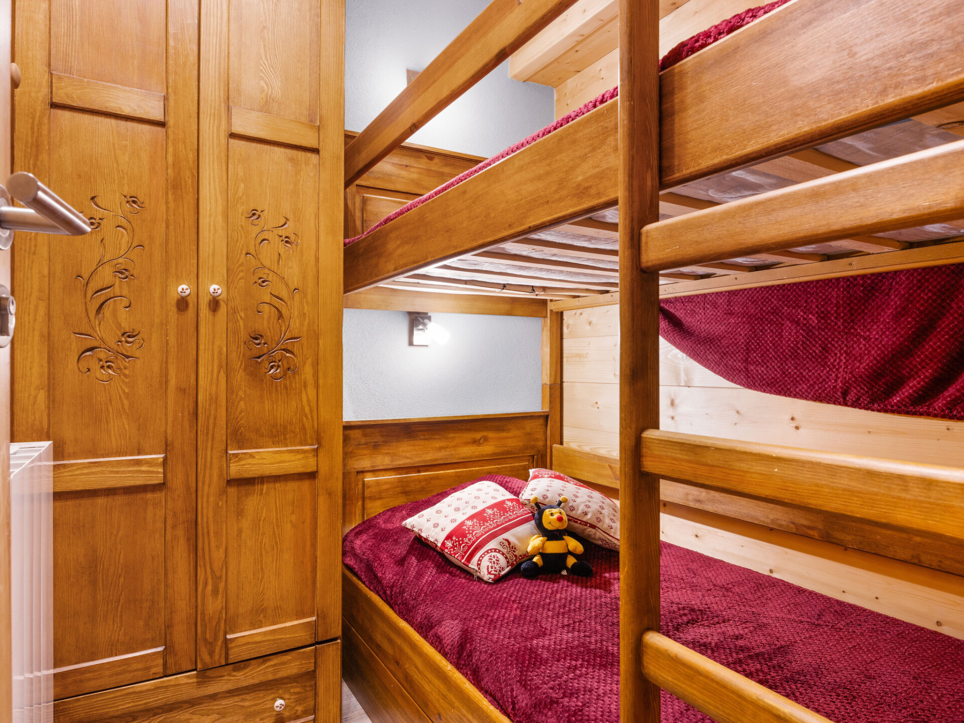 "Le Petit Savoyard", appartement 3-kamers 35 m2 op de 1e verdieping, op het zuiden gelegen. Het objekt is geschikt voor 2 volwassenen + 2 kinderen. Gezellig en met veel hout ingericht: woon-/slaapkamer met 1 divanbed (140 cm, lengte 190 cm), eettafel en Sat-TV. Uitgang naar het balkon. 1 2-pers. kamer met 1 2-pers divanbed (140 cm, lengte 190 cm). Uitgang naar het balkon. 1 kleine kamer met 1 x 2 stapelbedden (90 cm, lengte 185 cm). Open keuken (oven, afwasmachine, 4 keramische glas kookplaten, broodrooster, waterkoker, magnetron, elektrische koffiemachine, raclette oven). Douche, aparte WC. Elektrische verwarming. Klein balkon. Balkonmeubilair. Zijdelings uitzicht op de bergen. Ter beschikking: Internet (Internet (WiFi), gratis). Parkeerplaats (1 Auto) bij het huis. Niet rokers woning. Rookmelders. 74063000279XA