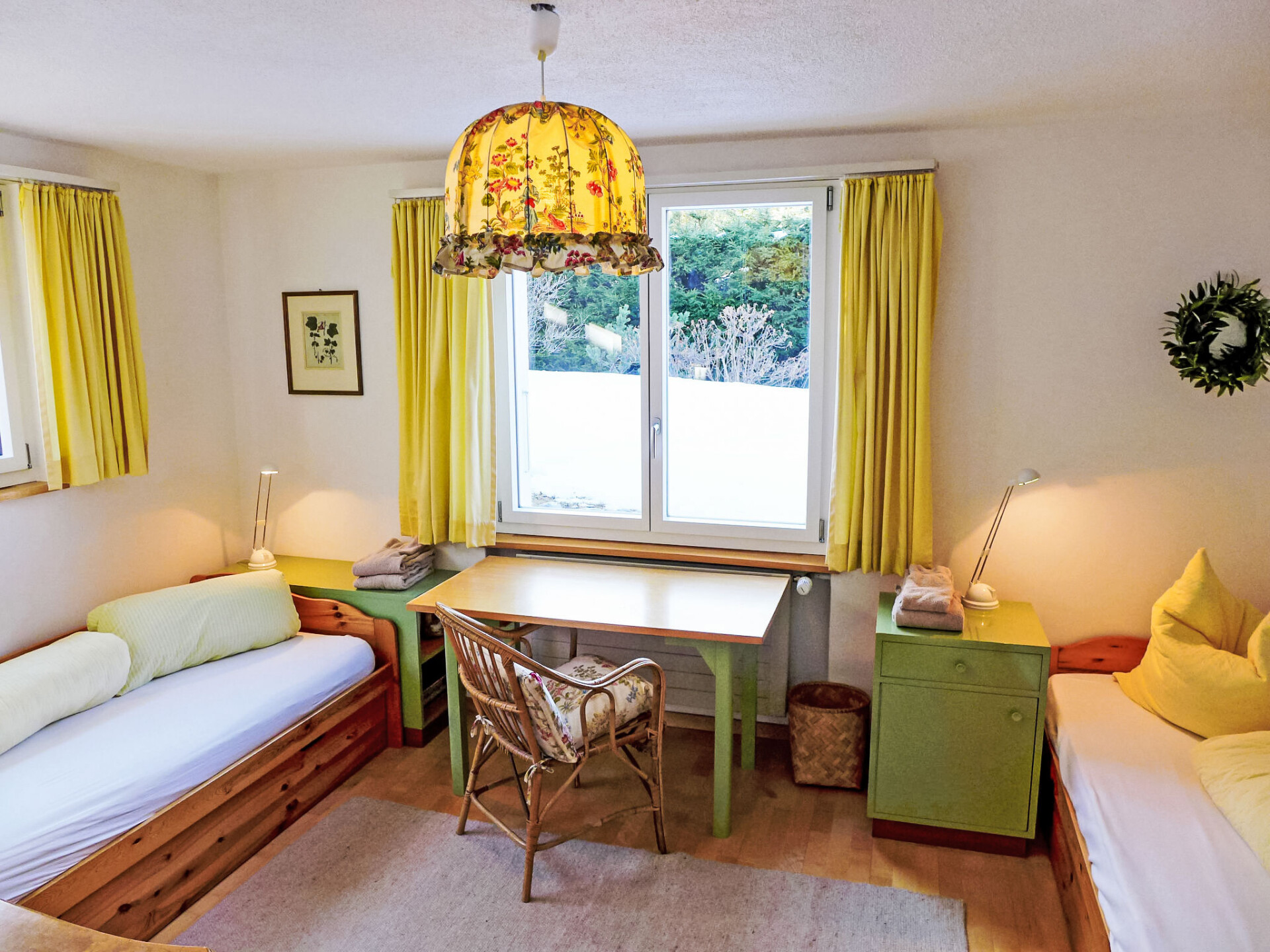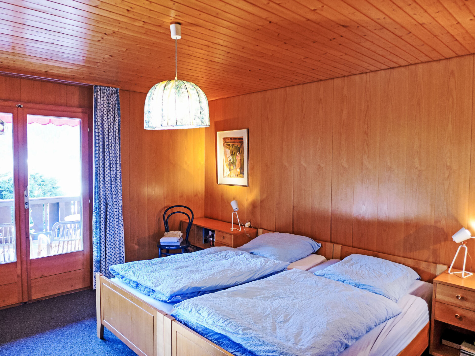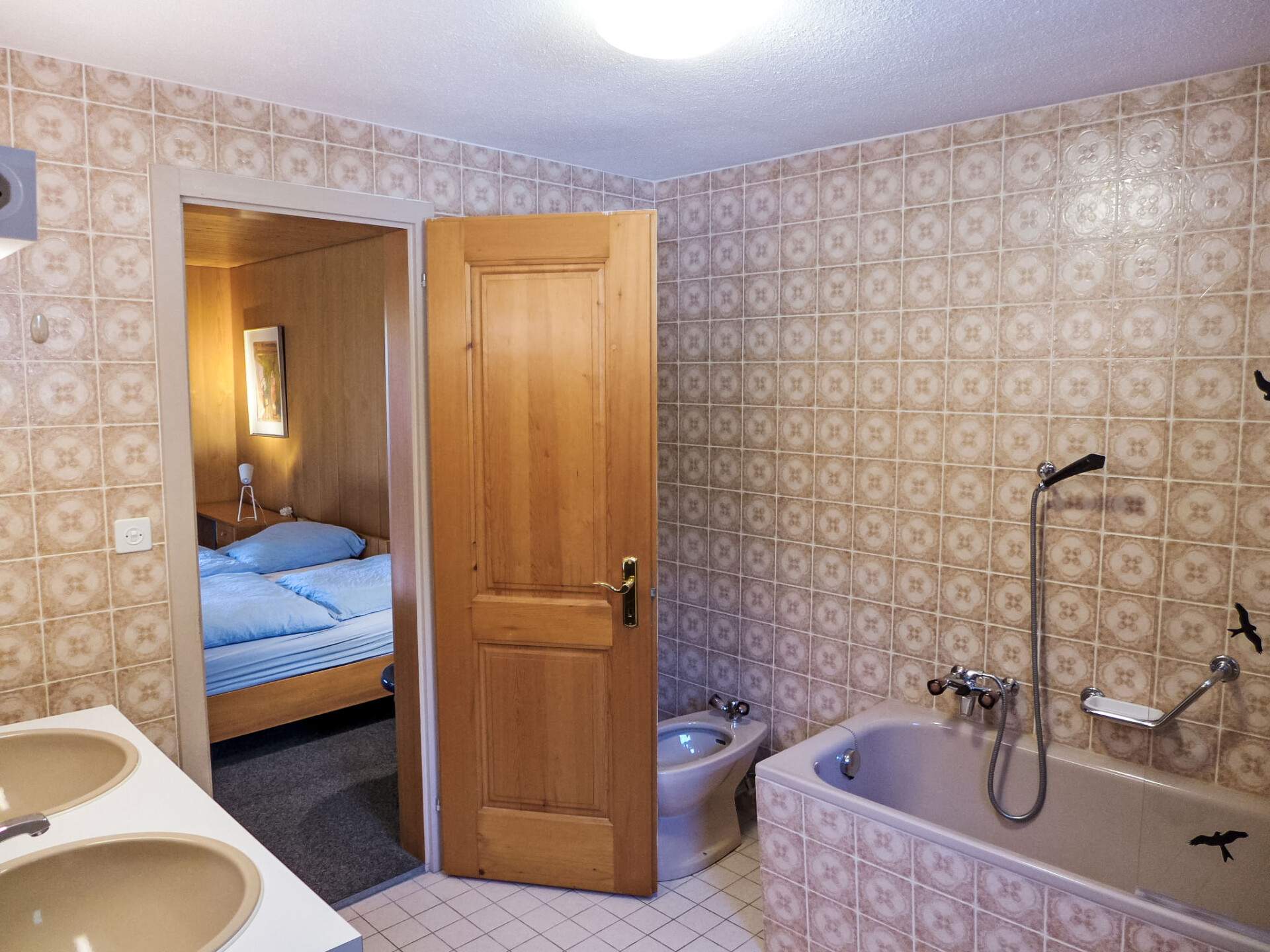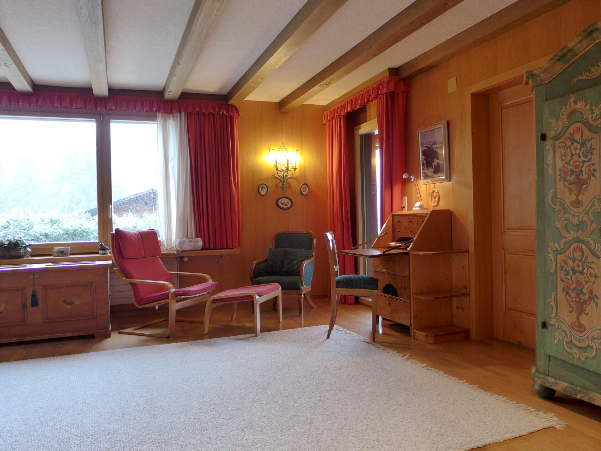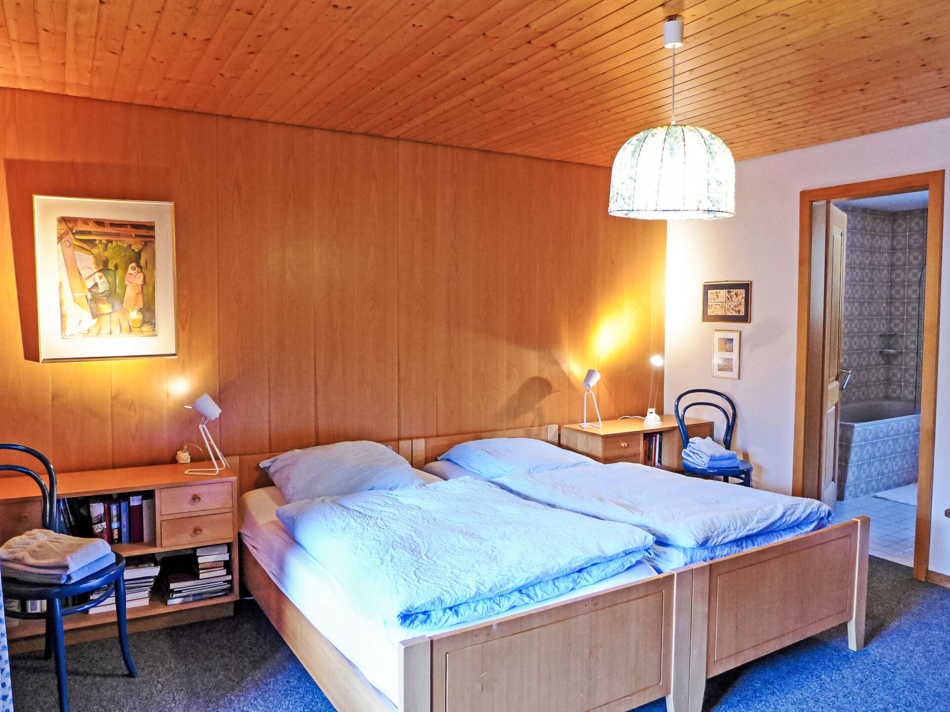 Chalet 4-kamers 120 m2 op 2 verdiepingen, op het zuidwesten gelegen. Ruim en licht, zeer comfortabel en smaakvol ingericht: groot woon-/eetkamer met panoramavenster met open haard, eethoek, Sat-TV en radio. Uitgang naar het balkon. 1 groot kamer met 1 2-pers bed (2 x 90 cm, lengte 200 cm), bad, bidet en aparte WC. Groot keuken (oven, afwasmachine, 4 keramische glas kookplaten, magnetron, elektrische koffiemachine, fondue Set (kaas)) met doorgeefluik. Souterrain: 2 kamers, elke kamer heeft 2 bedden (90 cm, lengte 200 cm). Douche/WC. Groot balkon, op het zuiden gelegen. Balkonmeubilair. Mooi panoramazicht op de bergen, het dal en de plaats. Ter beschikking: wasmachine, kinderbed tot 3 jaar, haardroger. Internet (WiFi, gratis). Geschikt voor families. Niet rokers woning. Rookmelders.