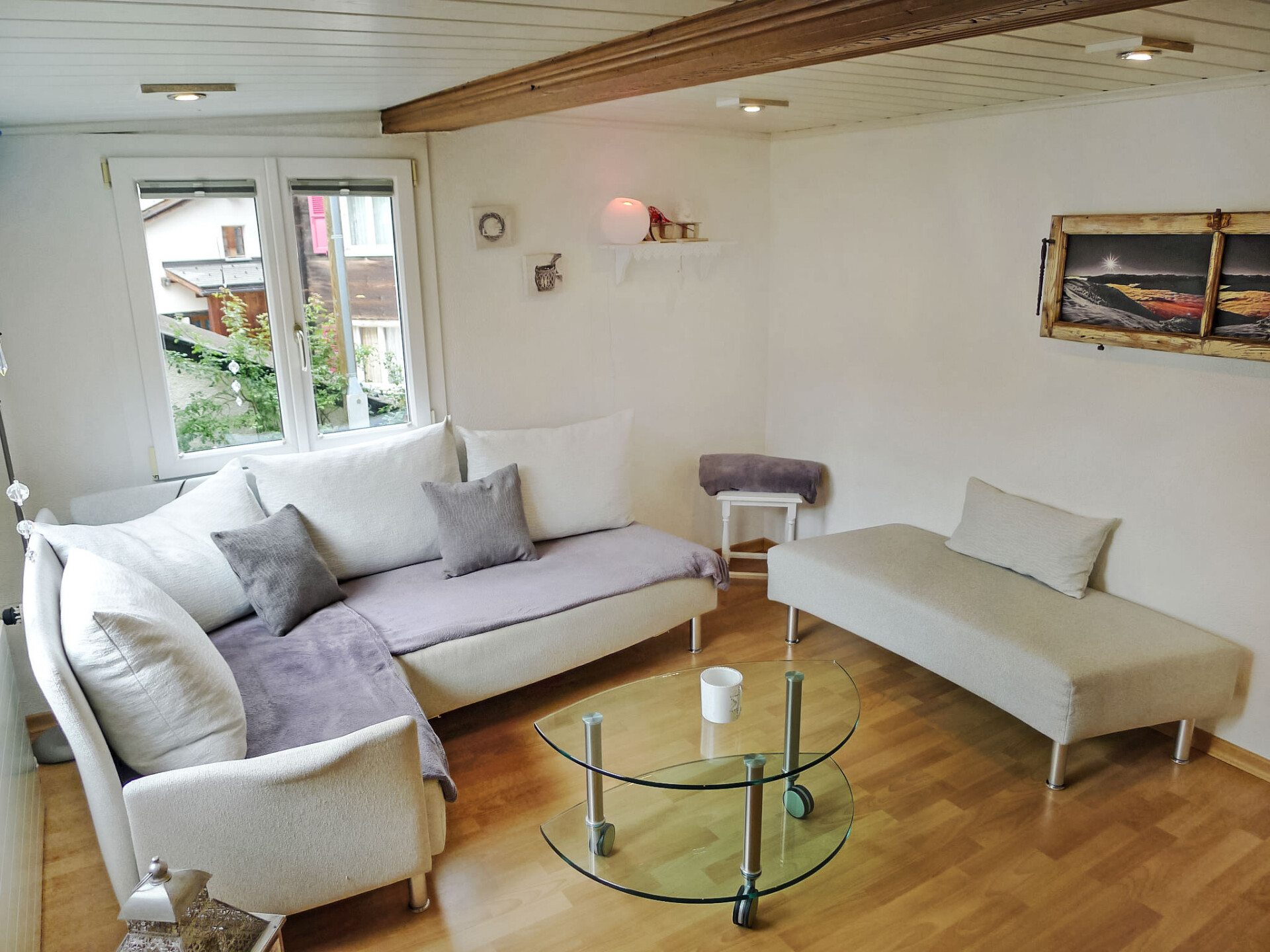 Appartement 4-kamers 50 m2, op de begane grond. Comfortabel en gezellig ingericht: woonkamer met Kabel-TV (Flatscreen TV). 1 kleine 2-pers. kamer. 1 kleine kamer met 1 x 2 stapelbedden. 1 kleine kamer met 1 kastbed. Groot keuken (oven, afwasmachine, 4 keramische glas kookplaten, elektrische koffiemachine, raclette oven, fondue Set (kaas)) met eettafel. Douche/WC. Kleine zithoek in de tuin. Terrasmeubelen. Beperkt uitzicht op de bergen, het landschap en de plaats. Ter beschikking: Internet (WiFi, gratis). Niet rokers woning. Maximaal 1 huisdier/hond toegestaan.