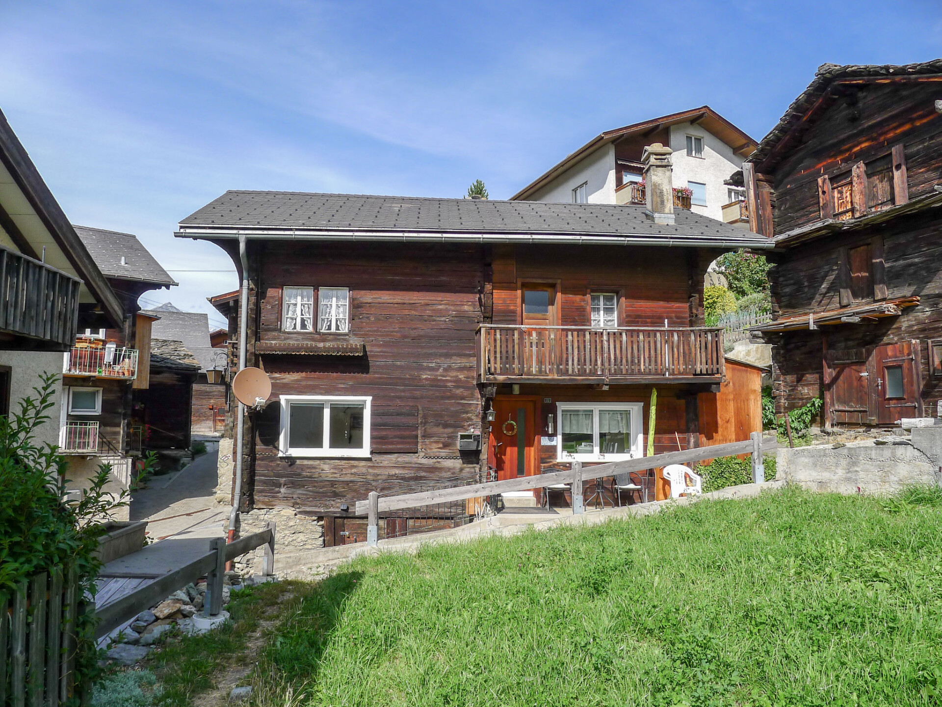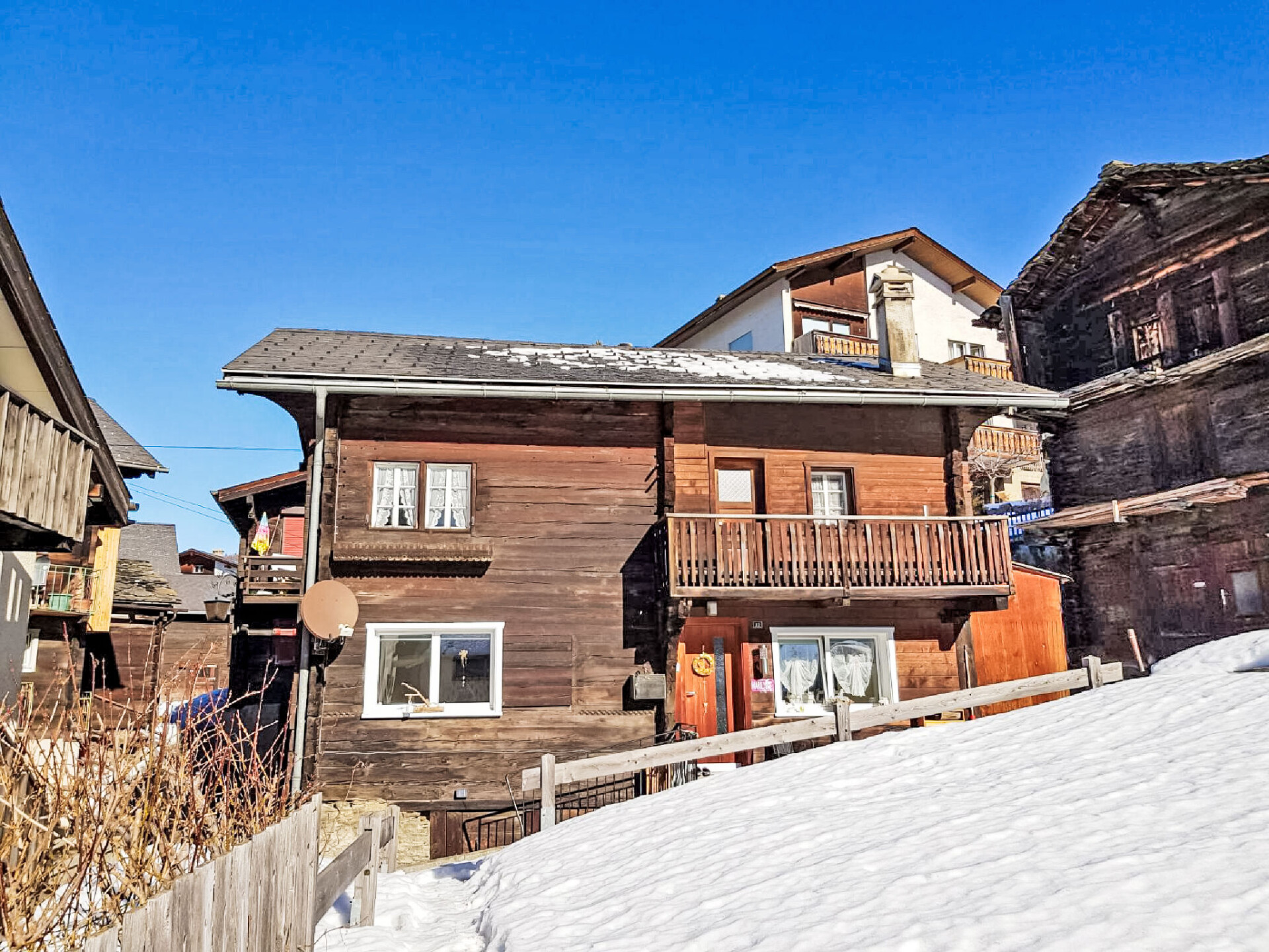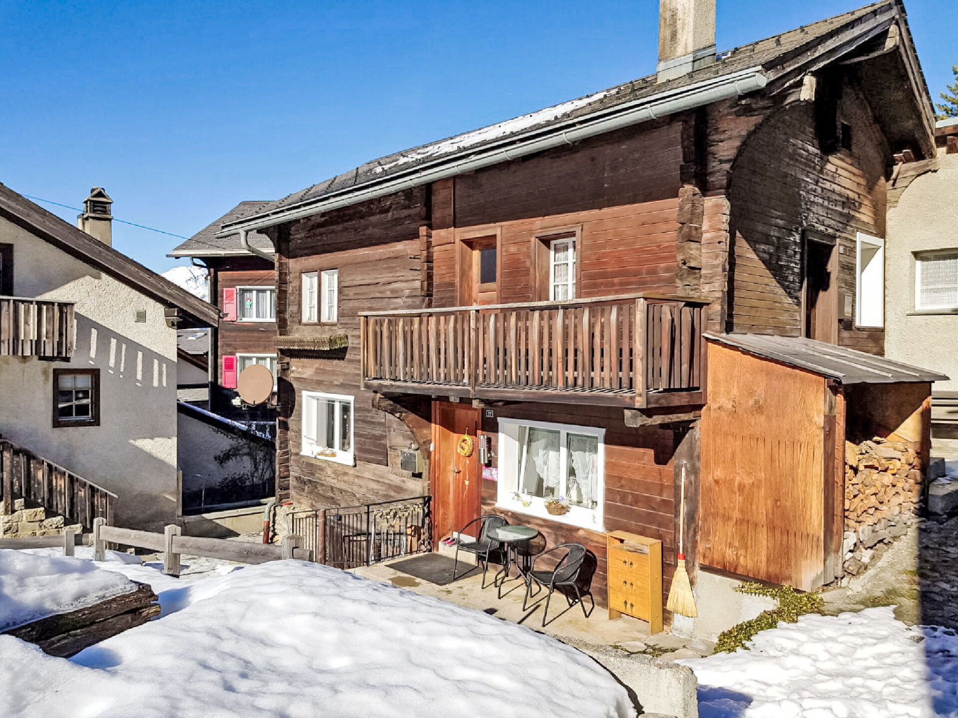 Visperterminen 9 km van Visp: Gezellig, rustieke chalet "Marilyn", 1.330 m boven zeeniveau, van 2 verdiepingen. In de plaats, rustige, zonnige ligging, 200 m van het skigebied. In het huis: centrale verwarming. Toegangsweg tot 50 m voor aan het huis (bergweg). 50 m voetpad naar het huis. Openbare parkeergarage op 200 m, openbare parkeerplaatsen 100 m extra. Levensmiddelenwinkel 300 m, winkelcentrum 10 km, restaurant 200 m, bushalte 200 m, treinstation "Visp" 10 km, openluchtzwembad 10 km, overdekt zwembad 10 km. Skilift, stoeltjeslift, ski faciliteiten, skipisten, skischool, rodelbaan, ijsbaan, kinderspeelplaats 200 m. Bekende skigebieden kunnen gemakkelijk worden bereikt: Zermatt 45 km, Saas Fee 40 km.
