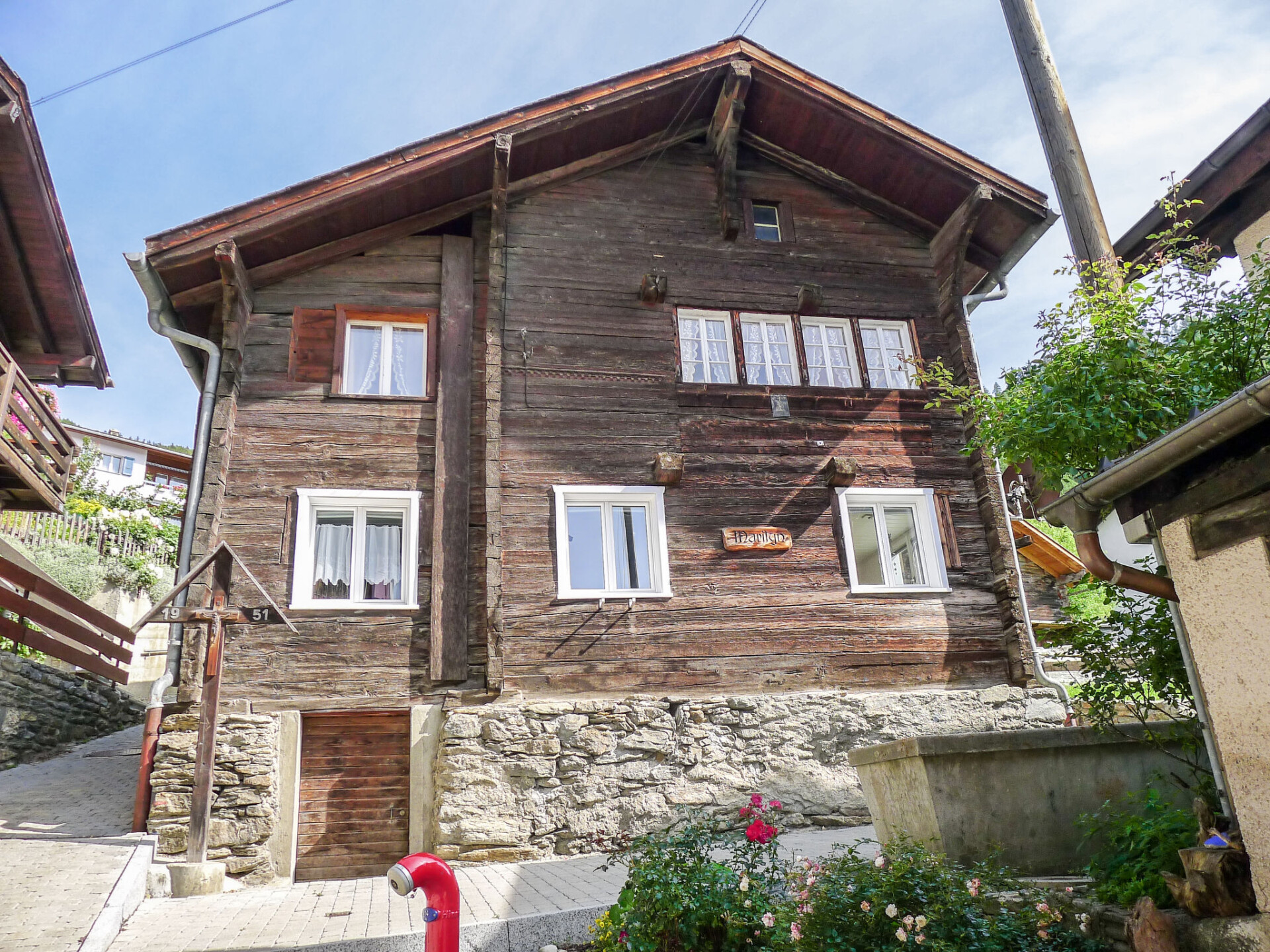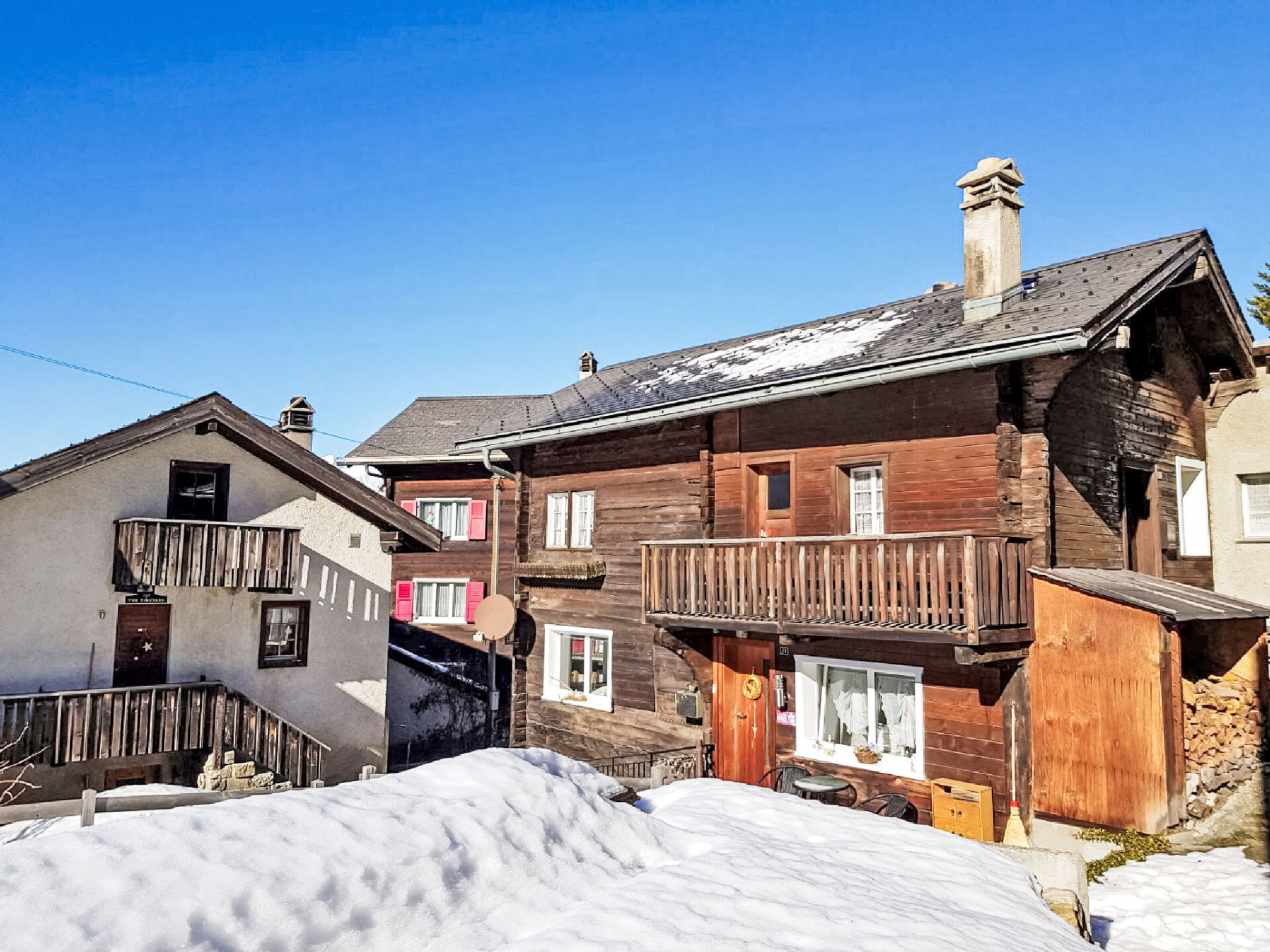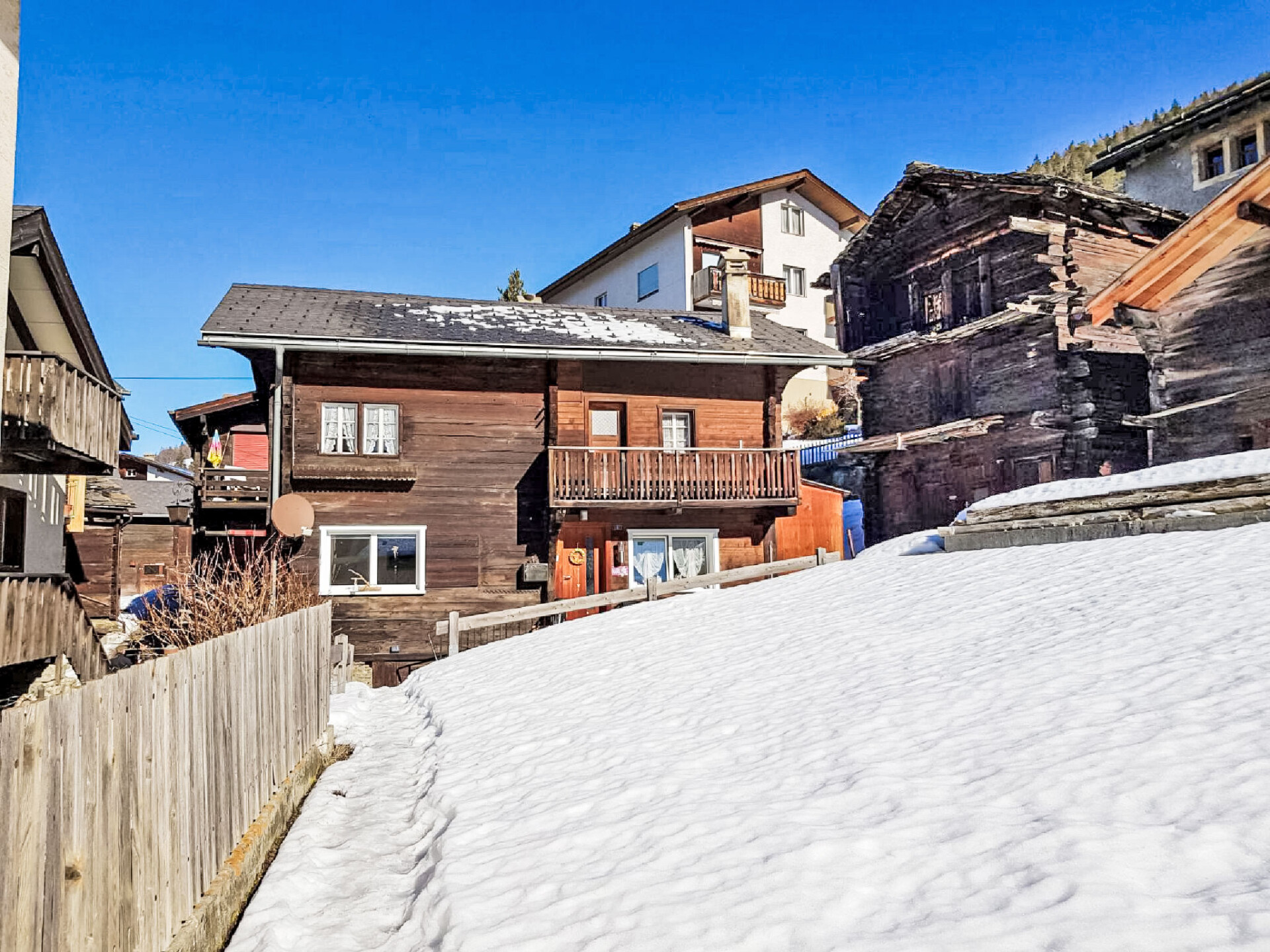 Visperterminen 9 km van Visp: Gezellig, rustieke chalet "Marilyn", 1.330 m boven zeeniveau, van 2 verdiepingen. In de plaats, rustige, zonnige ligging, 200 m van het skigebied. In het huis: centrale verwarming. Toegangsweg tot 50 m voor aan het huis (bergweg). 50 m voetpad naar het huis. Openbare parkeergarage op 200 m, openbare parkeerplaatsen 100 m extra. Levensmiddelenwinkel 300 m, winkelcentrum 10 km, restaurant 200 m, bushalte 200 m, treinstation "Visp" 10 km, openluchtzwembad 10 km, overdekt zwembad 10 km. Skilift, stoeltjeslift, ski faciliteiten, skipisten, skischool, rodelbaan, ijsbaan, kinderspeelplaats 200 m. Bekende skigebieden kunnen gemakkelijk worden bereikt: Zermatt 45 km, Saas Fee 40 km.