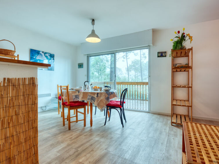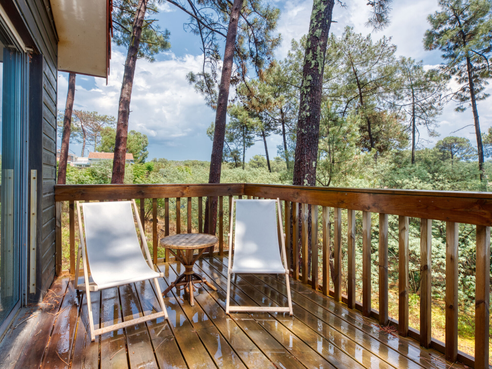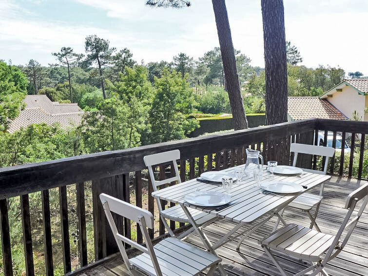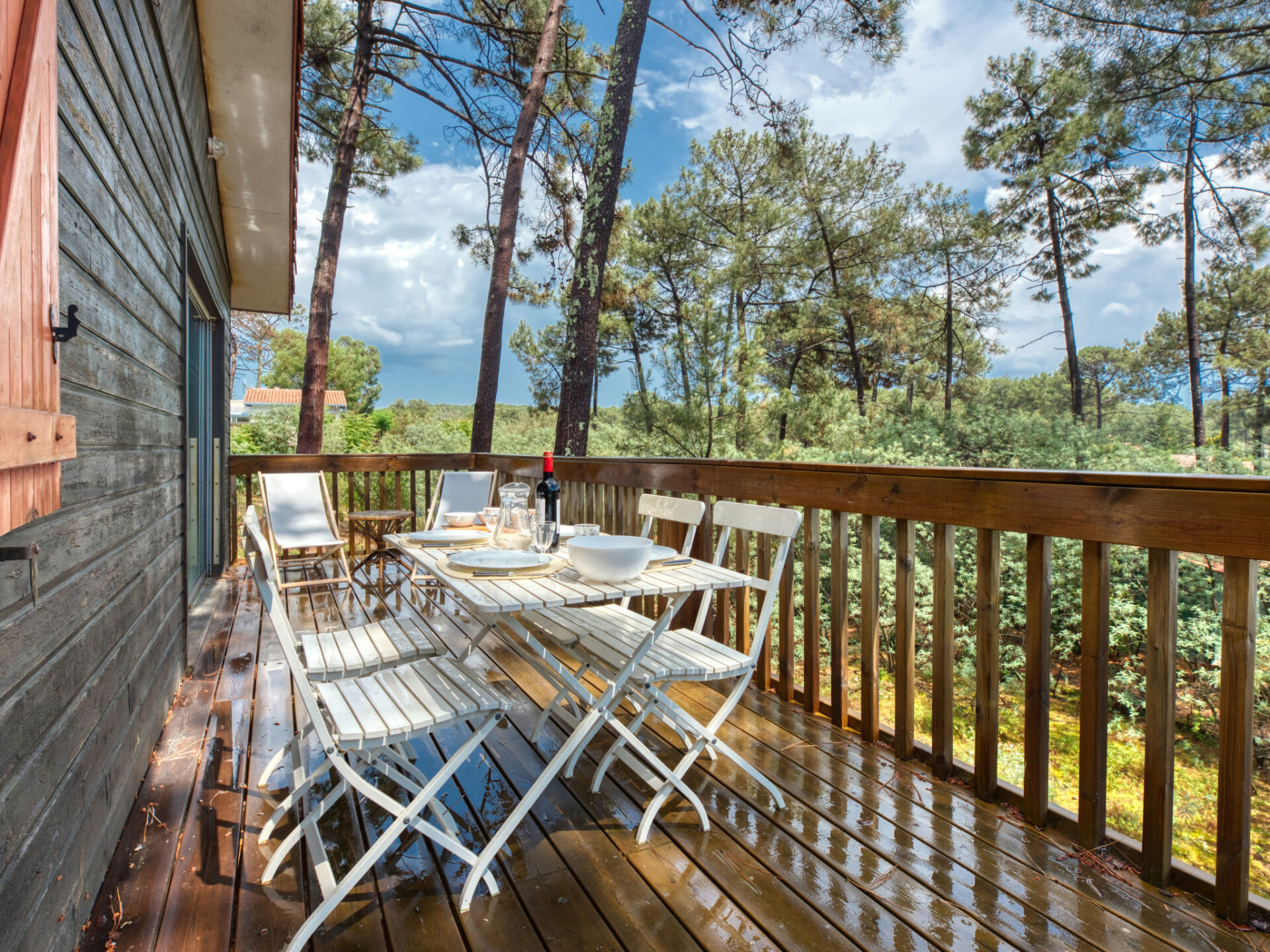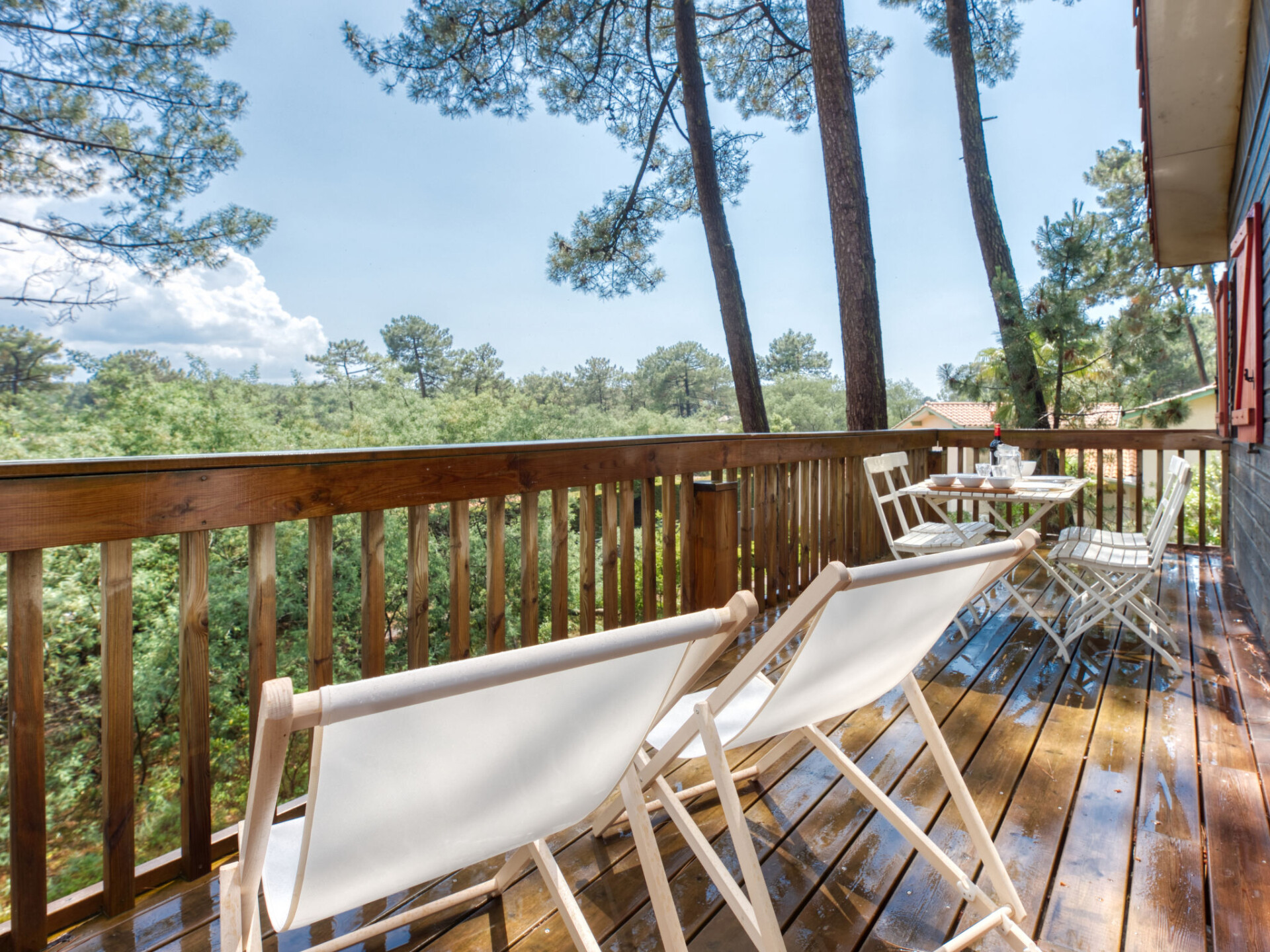 Chalet "Picasso". 2 km van het centrum, 1 km van zee, 1 km van het strand. Voor alleengebruik: terrein 400 m2. Winkel 1 km, supermarkt 850 m, restaurant 1 km, bushalte "Salle l'Escoure Océan" 1 km, zandstrand 600 m. Golfterrein (18 holes) 4 km, tennis 3 km, manege 15 km.