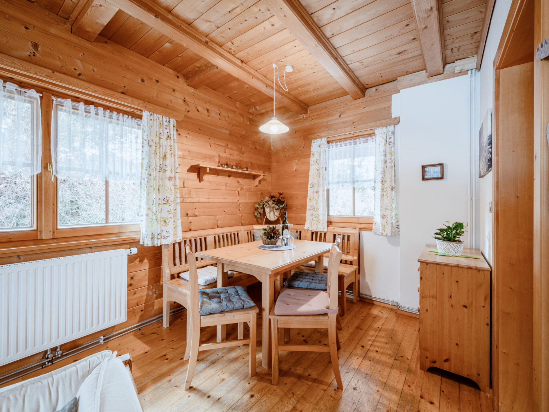 "Simons Blockhütte", chalet 4-kamers 120 m2 op 3 verdiepingen. Gedeeltelijk gerenoveerd in 2018, zeer gezellig en met veel hout ingericht: woonkamer met eettafel, eethoek, Sat-TV en stereo-installatie. 1 kamer met 1 2-pers bed. Keuken (oven, afwasmachine, 4 keramische glas kookplaten, broodrooster, waterkoker, magnetron, elektrische koffiemachine). Douche/WC. Souterrain: douche/WC. Bovenverdieping: 1 kamer met afgeschuinde daken, hoogte van het plafond 70 - 250 cm met 2 bedden. Uitgang naar het balkon. 1 kamer met afgeschuinde daken, hoogte van het plafond 70 - 250 cm met 1 2-pers bed. Uitgang naar het balkon. Houtverwarming. Houten vloeren. 2 balkons, terras overdekt. Terrasmeubelen, barbecue (verrijdbaar), bergruimte. Zeer mooi panoramazicht op de bergen en het dal. Ter beschikking: Internet (WiFi, gratis). Rookvrij huis. Maximaal 1 huisdier/hond toegestaan. Rookmelders.
