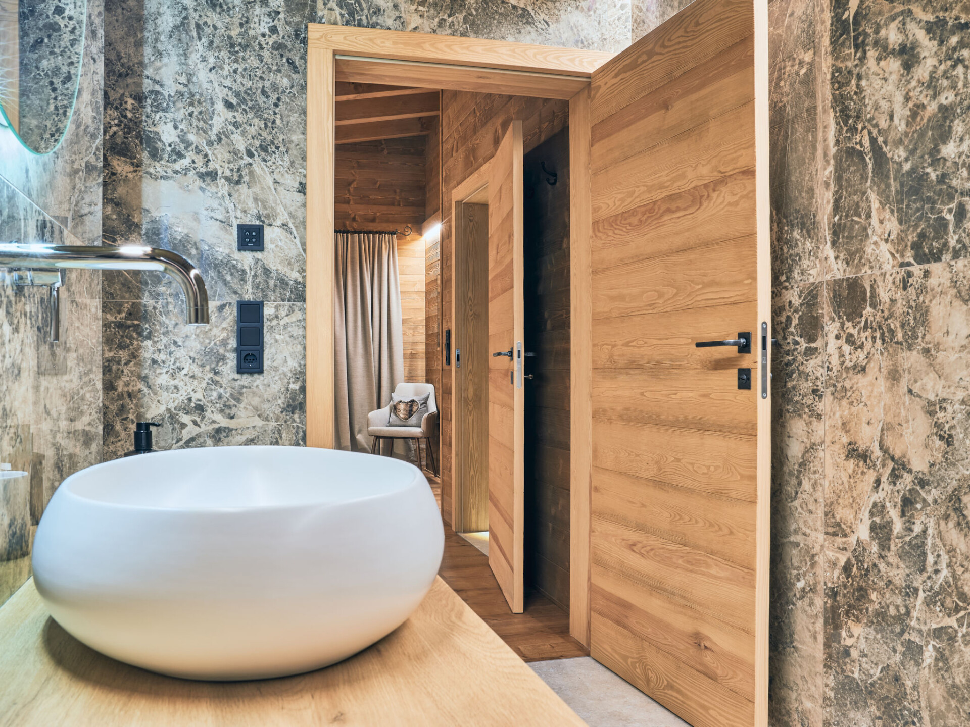 "Sissis Green Chalet Elisabeth", chalet 4-kamers 150 m2 op 2 verdiepingen. Luxueus en met veel hout ingericht: hal. 1 2-pers. kamer met douche/WC, TV en Digitale TV (Flatscreen TV). Groot woonkeuken (afwasmachine, 4 inductiekookplaten, broodrooster, waterkoker, magnetron, elektrische koffiemachine, kookeiland) met eettafel, open haard, TV en Digitale TV (Flatscreen TV), elektrische rolluiken. Uitgang naar het terras. Bovenverdieping: 2 2-pers. kamers, elke kamer heeft bad/douche/WC, TV en Digitale TV (Flatscreen TV). Uitgang naar het balkon. Houten vloeren. Groot terras 25 m2. Terrasmeubelen, barbecue, ligstoelen. Mooi uitzicht op de bergen. Ter beschikking: wasmachine, sauna, haardroger. Internet (WiFi). Parkeerplaats. Oplaadstation. Rookvrij huis. Maximaal 2 huisdieren/honden toegestaan. Privé ingang.