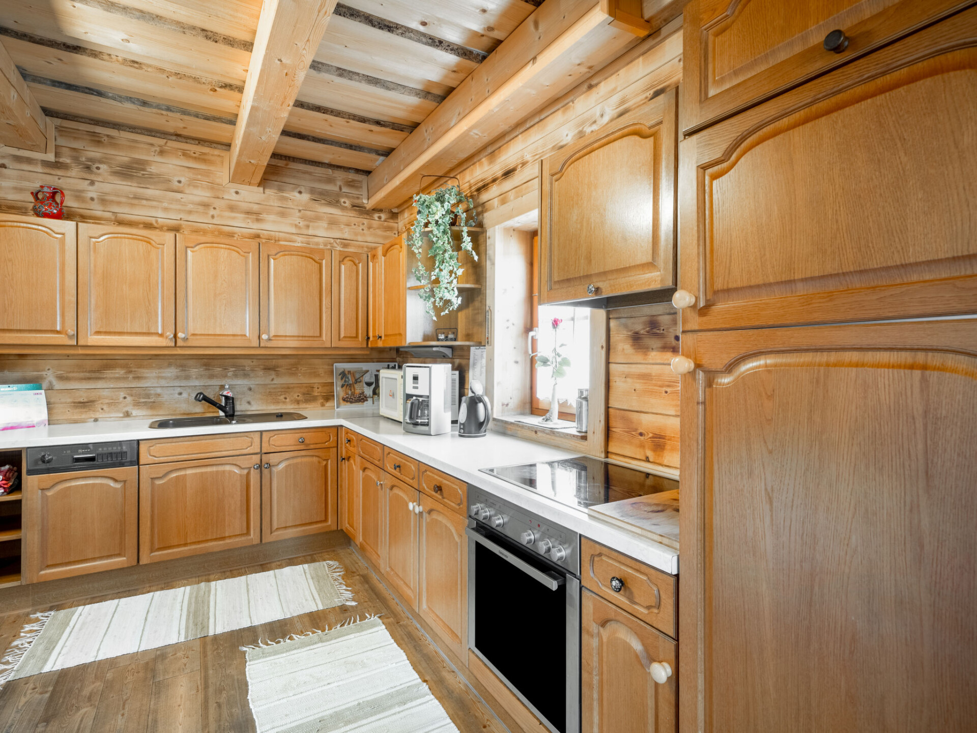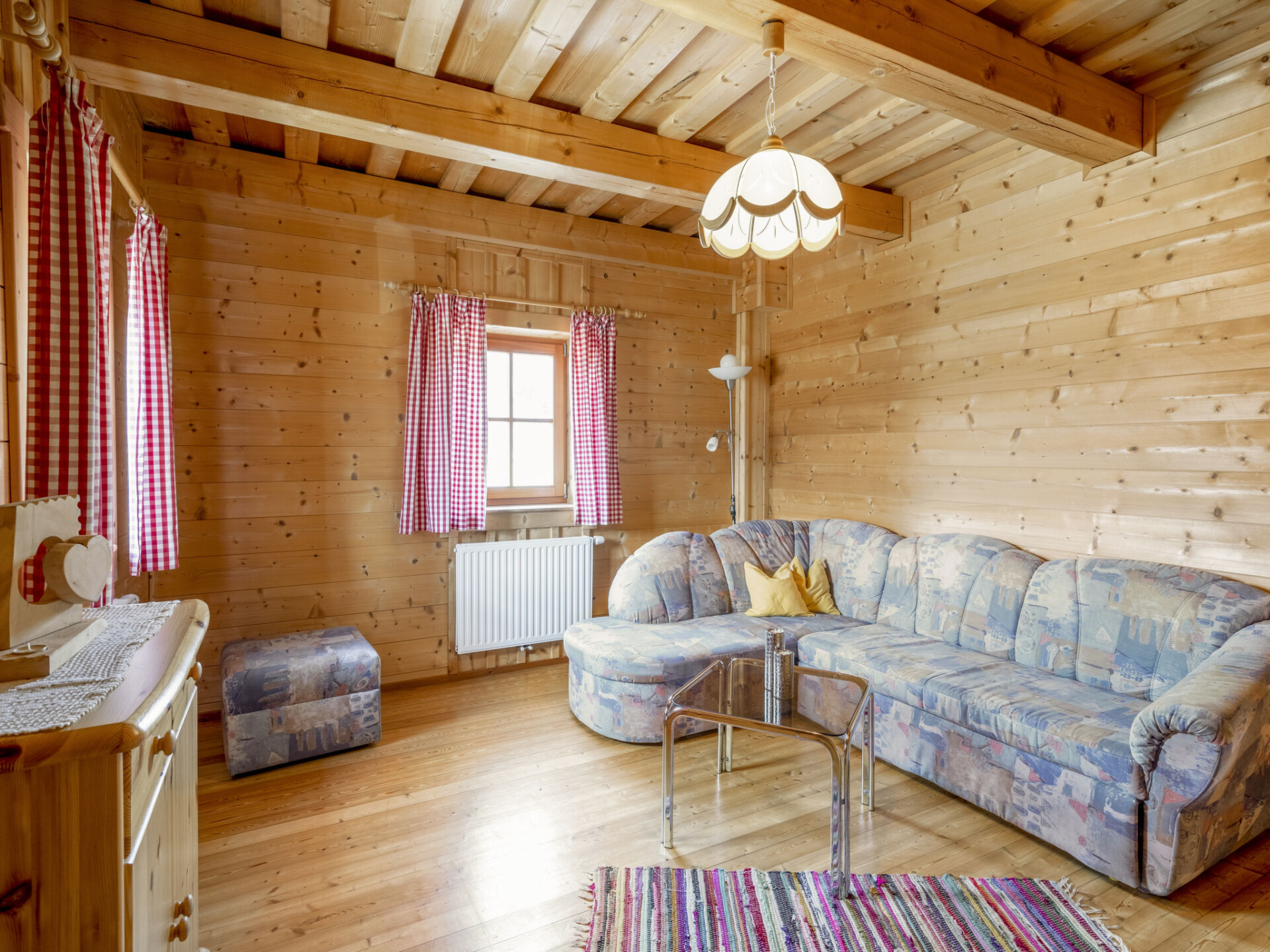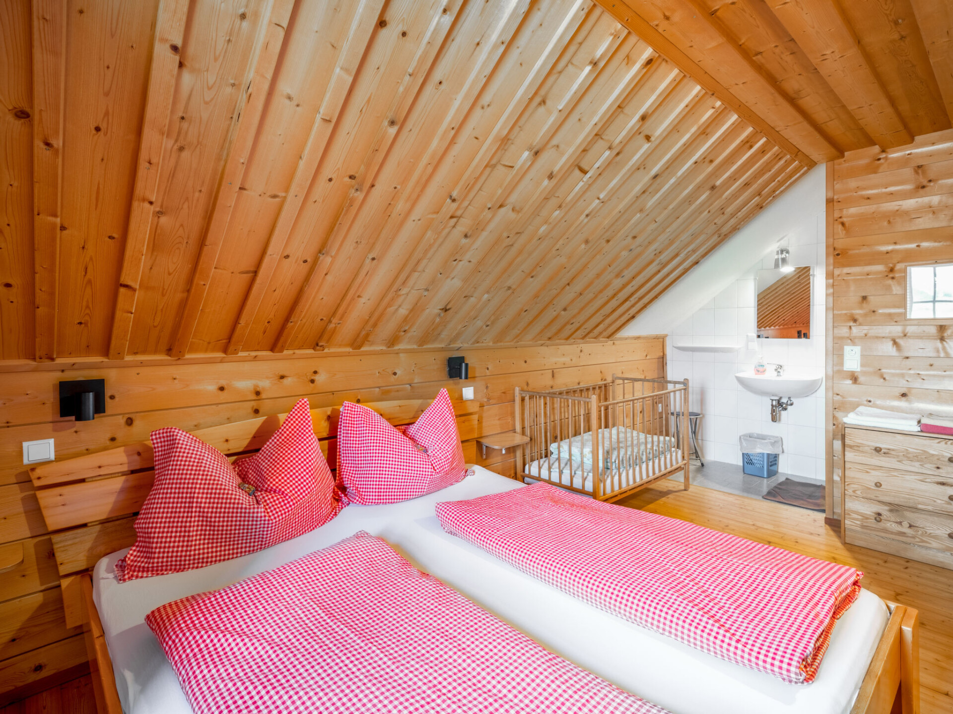 "Steiners Blockhütte", huis 6-kamers 160 m2 op 2 verdiepingen. Gezellig en met veel hout ingericht: groot woon-/eetkamer met zwedenkachel, eettafel en eethoek. Woon-/slaapkamer met 1 2-pers divanbed, Sat-TV en DVD. Uitgang naar het terras. Open keuken (oven, afwasmachine, 4 keramische glas kookplaten, waterkoker, elektrische koffiemachine). Douche/WC. Bovenverdieping: 3 kamers met afgeschuinde daken, elke kamer heeft 1 2-pers bed, wastafel en douche. 1 kamer met afgeschuinde daken met 1 2-pers bed en wastafel. Aparte WC. Verwarming, verwarming met zonne-energie. Houten vloeren. Terras overdekt. Terrasmeubelen, barbecue. Mooi uitzicht op de bergen en het landschap. Ter beschikking: kinderstoel, kinderbed. Internet (WiFi, gratis). Maximaal 1 huisdier/hond toegestaan.