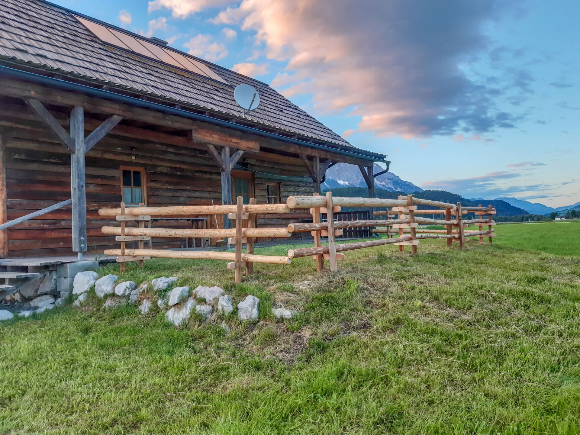 Gezellig, rustieke chalet "Steiners Blockhütte", omgeven door weiden. 500 m van het centrum van Stein an der Enns, aan de rand van de plaats, 4.5 km van het centrum van Öblarn, 23 km van het centrum van Schladming, geïsoleerde, zonnige ligging, 11 km van het meer, 11 km van het skigebied, te midden van groen. Voor alleengebruik: wild terrein 3 ha met weide. In het huis: berging voor ski's. Broodjesservice. Parkeerplaats op het terrein. Winkel 500 m, restaurant 1.3 km, bakkerij 1 km, café 1 km, bushalte 800 m, treinstation "Stein an der Enns" 1 km, openluchtzwembad 5 km, overdekt zwembad 5 km, meer (zwemmen) "Aich" 11 km. Bergtrein 11 km, skilift 11 km, skipisten 11 km. Bekende skigebieden kunnen gemakkelijk worden bereikt: Hauser Kaibling 15 km, Galsterberg/Kalteck 8 km. Lokale verkoop van streekproducten.