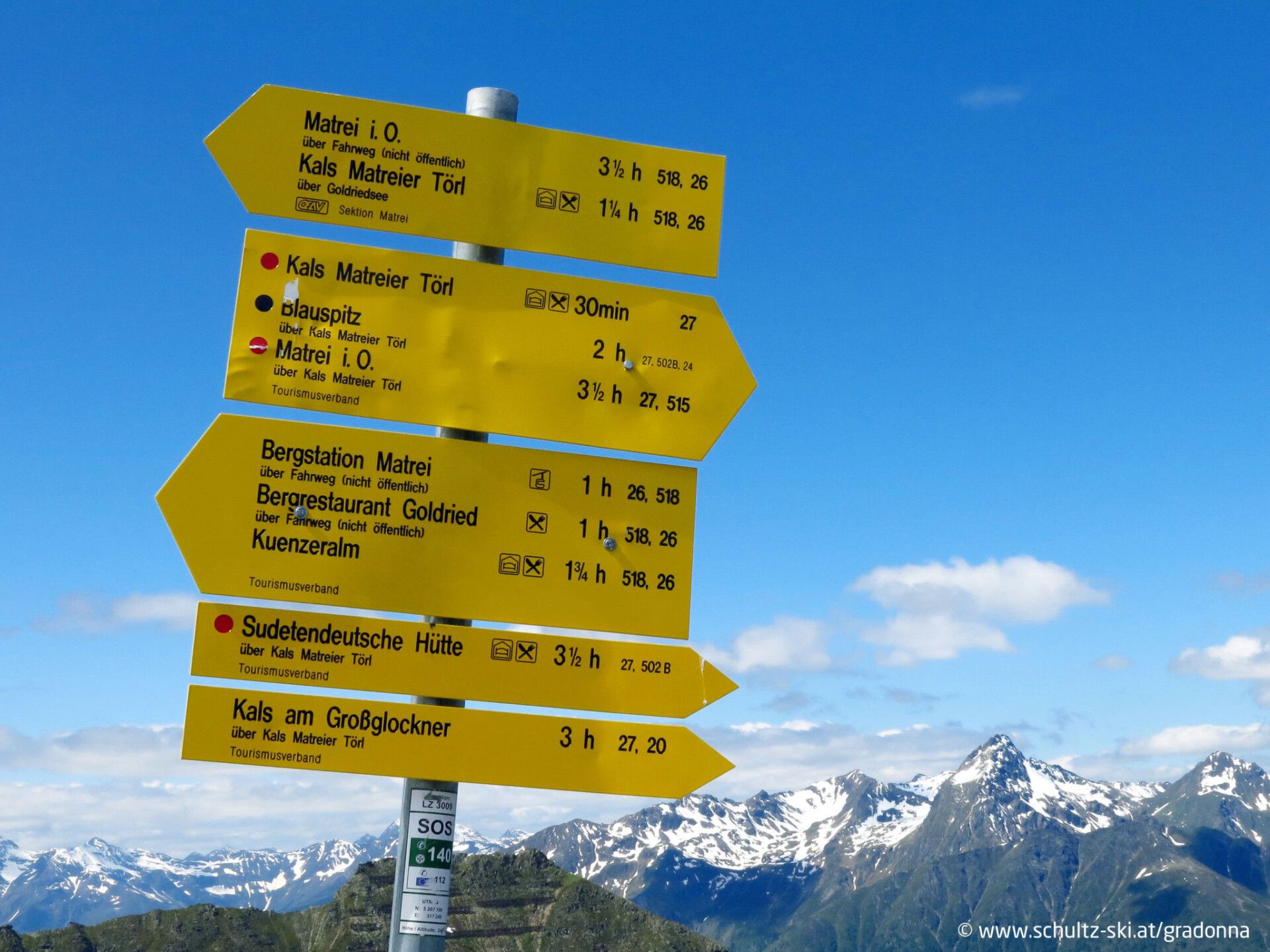 Kindvriendelijk chalet "Gradonna Mountain Resort", 1.450 m boven zeeniveau. 4 km van het centrum van Kals, 36 km van het centrum van Lienz, tegen een helling, direct bij het skigebied. Voor medegebruik: terrein met planten, overdekt zwembad verwarmd (seizoensgebonden beschikbaarheid: 15.Jun. - 31.Okt.). Natuurlijke zwemvijver. In het huis: receptie, restaurant, bar, fitnessruimte, massage (extra). Stoombad (extra). Ontbijt en half pension op verzoek (extra). Oplaadstation. Winkel 4 km, bushalte "Kals a. G. Abzw Burg" 2.5 km. Skipisten 10 m. Animatie. Kinderopvang mogelijk (incl.). Honden zijn in het restaurant en in de wellness bereik niet toegestaan.