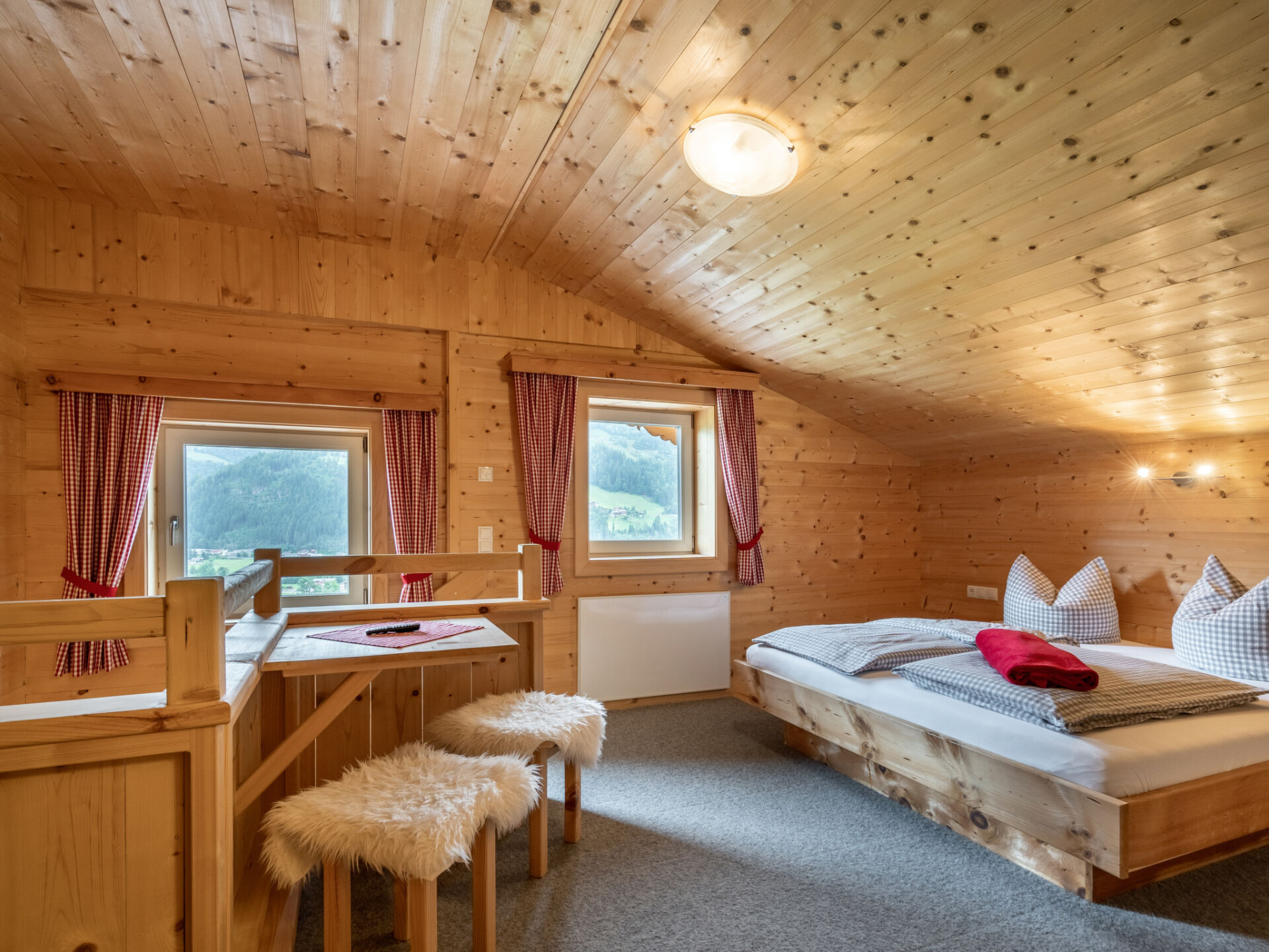 "Talbach", appartement 10-kamers 200 m2 op 2 verdiepingen, op het oosten gelegen. Gezellig en met veel hout ingericht: Bovenverdieping: woonkamer met Sat-TV. 4 2-pers. kamers, elke kamer heeft douche/WC en Sat-TV. Woonkeuken (oven, afwasmachine, 4 keramische glas kookplaten, broodrooster, waterkoker, elektrische koffiemachine) met eettafel. Douche/WC. Zolderverdieping: 4 2-pers. kamers, elke kamer heeft douche/WC en Sat-TV. Elektrische verwarming. Terras. Terrasmeubelen, elektrische barbecue, ligstoelen. Panoramazicht op Hainzenberg and Gerolsstein. Ter beschikking: kinderstoel, kinderbed. Internet (Internet (WiFi), gratis). Rookvrij huis. Rookmelders. Als er minder dan het maximale aantal gasten in de accommodatie verblijft, zijn niet alle wooneenheden beschikbaar voor gebruik.