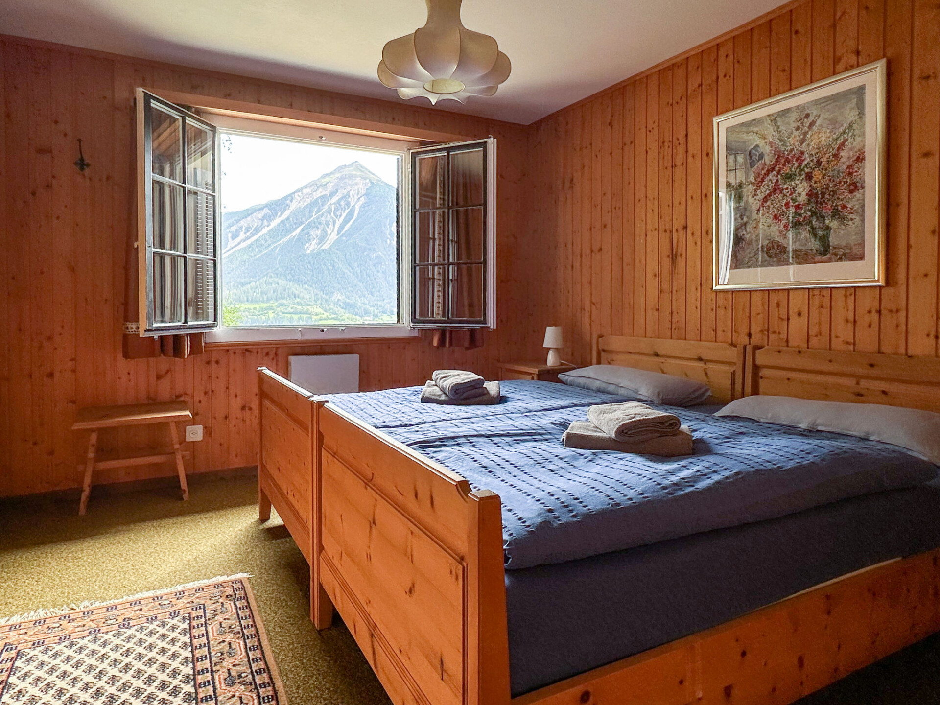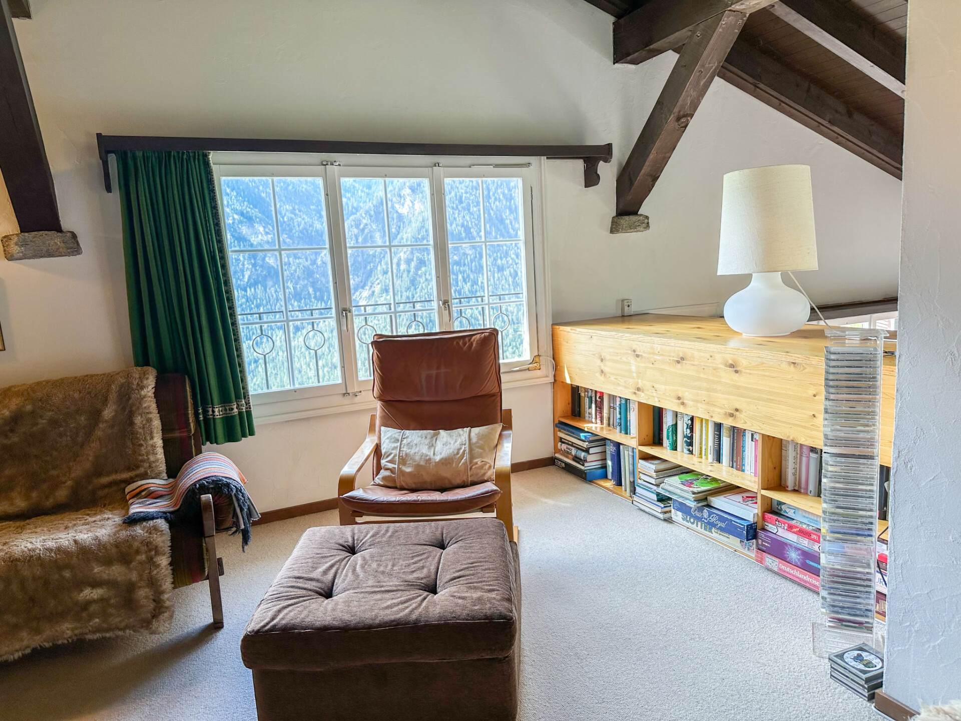 Gezellig, rustieke chalet "Tgaplotta", 1.160 m boven zeeniveau, van 3 verdiepingen, bouwjaar 1980, gerenoveerd in 2010. Aan de rand van de plaats, 500 m van het centrum, rustige, zonnige ligging, 14 km van het skigebied, aan een doodlopende weg, te midden van groen, op het zuiden. Voor alleengebruik: terrein, tuin 300 m2. Barbecue. In het huis: bergruimte voor fietsen, berging voor ski's, centrale verwarming, wasmachine, droger, droogruimte. Toegangsweg tot aan het huis (bergweg). 's winters 4x4 aanbevolen. Parkeerplaats bij het huis, eigen garage. Oplaadstation. Winkel 500 m, levensmiddelenwinkel 500 m, restaurant 700 m, bushalte 500 m, treinstation "Alvaneu" 2 km. Golfterrein (18 holes) 3 km, ski faciliteiten 14 km, skibushalte 500 m, langlaufloipe 3 km, kinderspeelplaats 700 m. Bekende skigebieden kunnen gemakkelijk worden bereikt: Lenzerheide 14 km, Davos 23 km. Auto noodzakelijk.