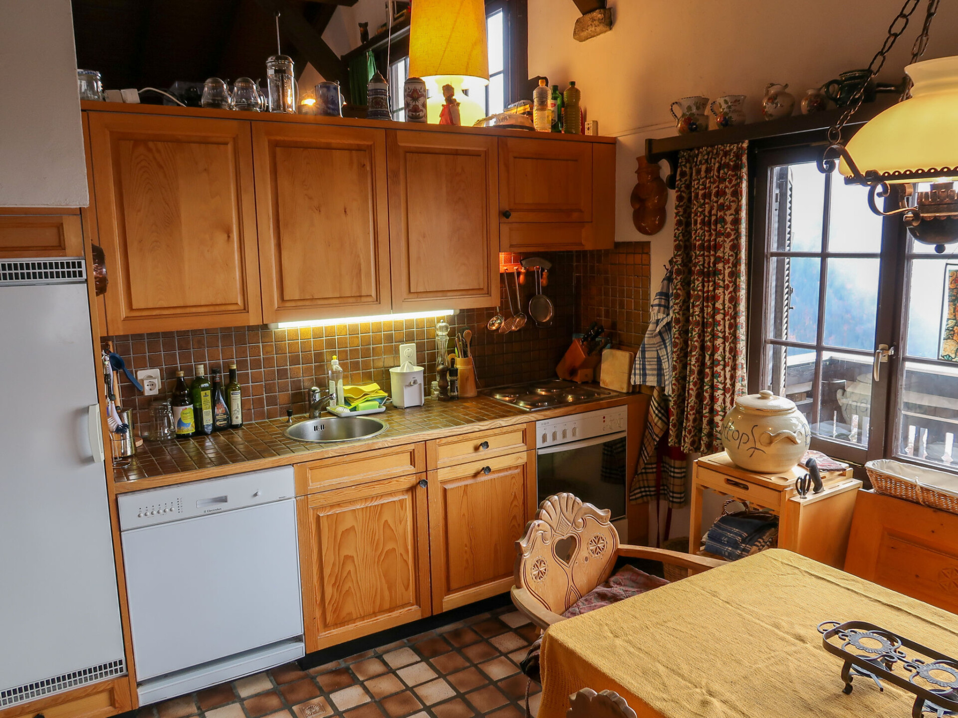 Huis 6-kamers 160 m2 op 3 verdiepingen. Rustiek en gezellig ingericht: woon-/eetkamer met open haard en Sat-TV (Flatscreen TV). Uitgang naar het balkon, naar de zitplaats in de tuin. 1 kamer met 2 bedden. Open keuken (4-pits kookplaat, oven, afwasmachine). Souterrain: 1 kamer met 2 bedden en bad/WC. 1 2-pers. kamer. 1 kamer met 1 2-pers divanbed. Bad/WC. Balkon, zithoek in de tuin. Terrasmeubelen, ligstoelen (2), bergruimte. Zeer mooi uitzicht op de bergen, het dal en het landschap. Ter beschikking: wasmachine, droger. Internet (WiFi, gratis). Parkeerplaats, garage bij het huis. Oplaadstation. Maximaal 1 huisdier/hond toegestaan.