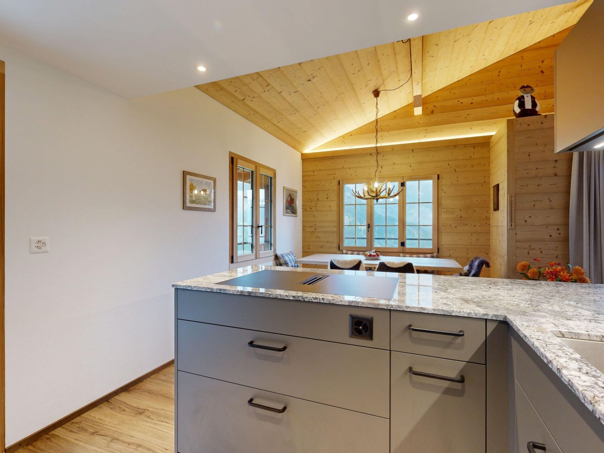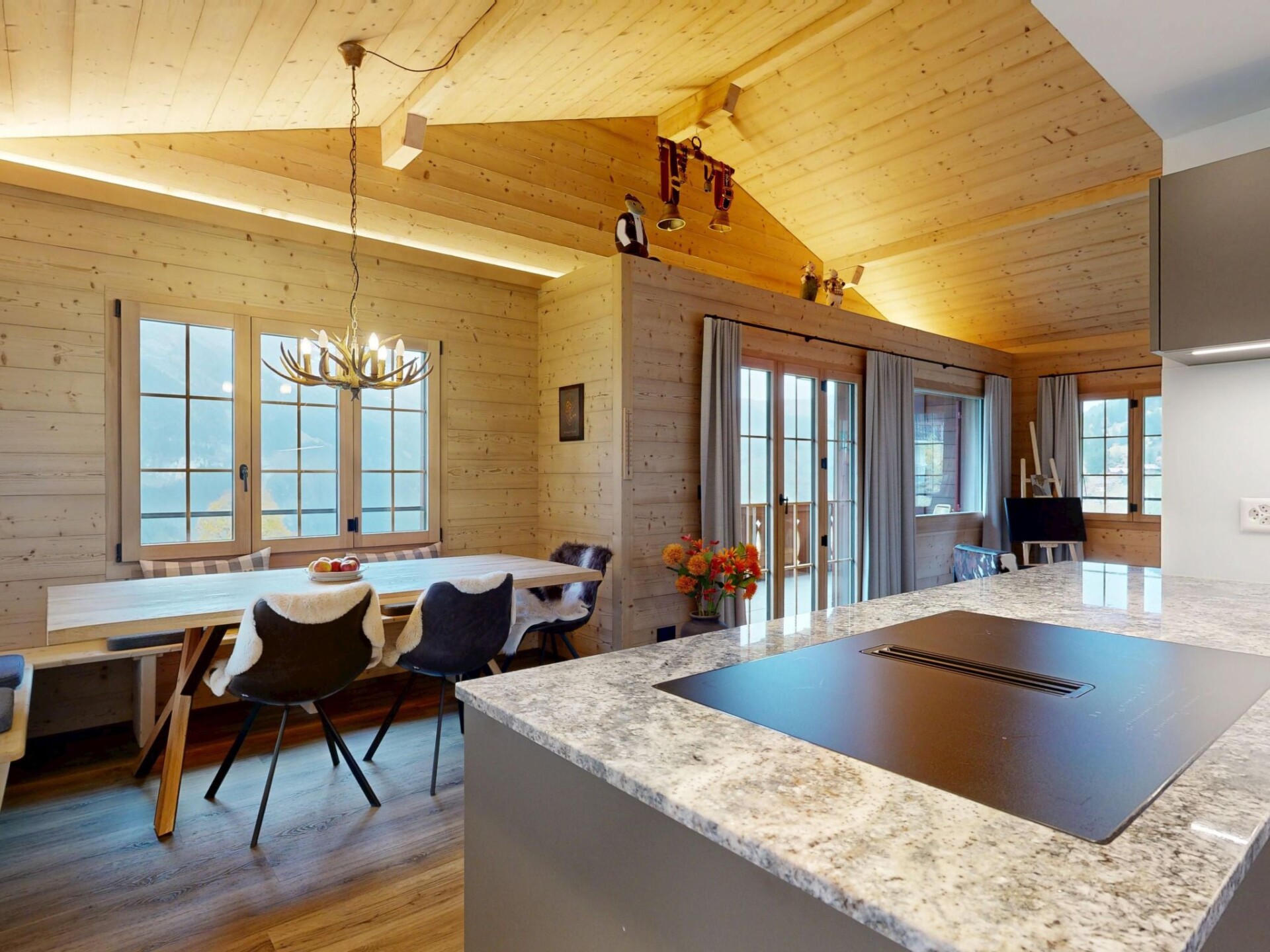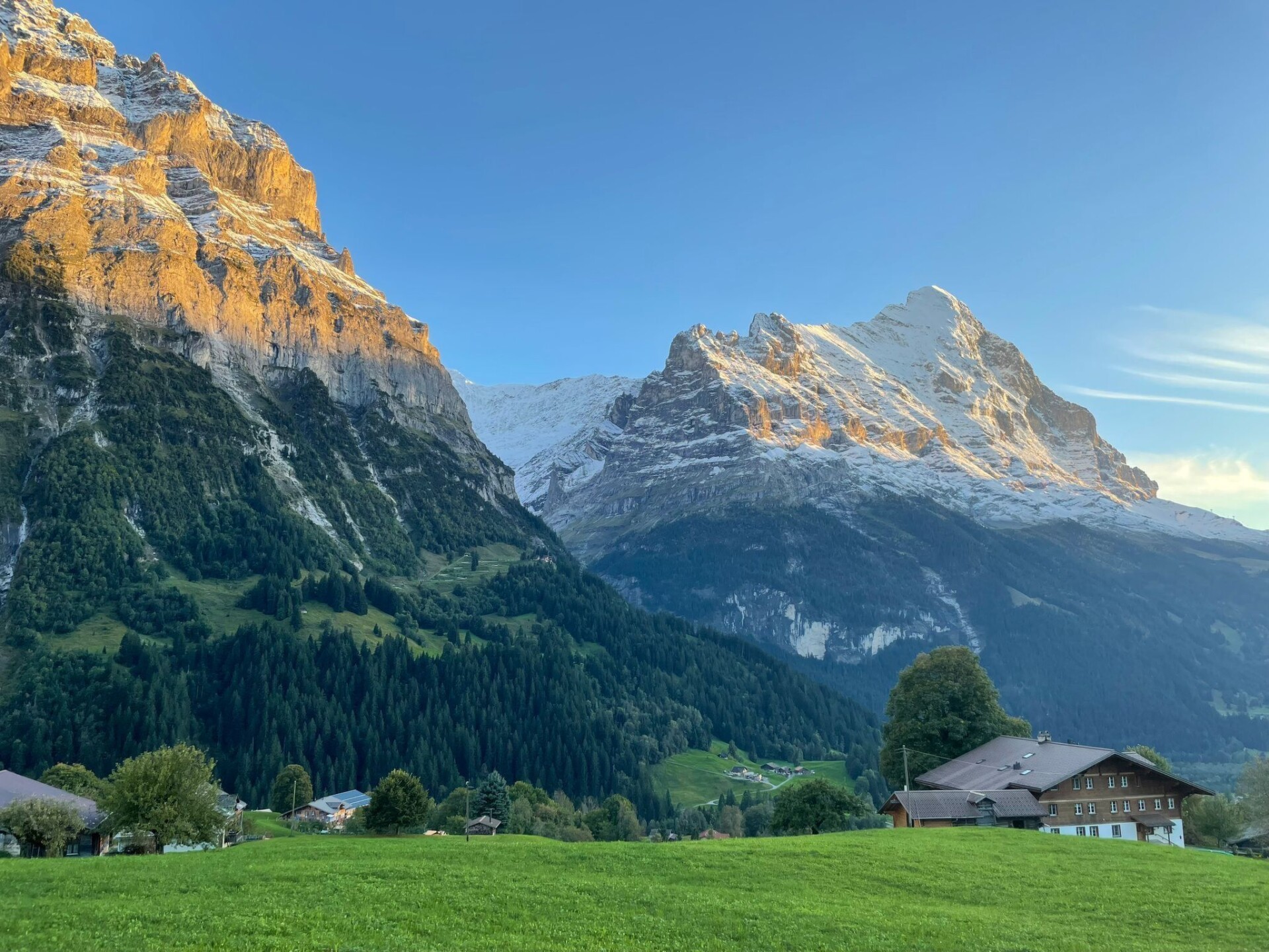 Discover the perfect base for your next family holiday or a relaxing time with friends in picturesque Grindelwald. Our charming holiday flat, located on the upper floor of an inviting chalet, can accommodate up to 5 people. It is the ideal home away from home for anyone who wants to enjoy the beauty of the canton of Bern to the full. An unrivalled combination of comfort and relaxation awaits you to make your stay unforgettable.The interior of our holiday flat leaves nothing to be desired. From the underfloor heating, which ensures a cosy atmosphere in the cooler months, to the smart TV for entertaining evenings - you'll find everything your heart desires here. The modern kitchen is perfectly equipped for self-catering with an induction hob, a capsule coffee machine and a dishwasher. Although there is no air conditioning, the natural coolness of the mountains ensures a pleasant indoor climate. A washing machine and tumble dryer are available for communal use, which is particularly practical for longer stays.Outside the holiday flat, the two balconies invite you to relax and enjoy the peaceful atmosphere. Whether you want to enjoy breakfast in the fresh air or relax with a book in the afternoon sun, this private terrace offers the perfect setting.The surrounding area of Grindelwald is characterised by its breathtaking nature and diverse opportunities for outdoor activities. The proximity to the mountains allows you to embark on extensive hikes, climbing tours or unforgettable skiing adventures in winter. Discover the idyllic paths and adventurous mountain tours in this region. Shopping facilities, cosy cafés and restaurants in the immediate vicinity round off your stay and offer convenience as well as local cultural delights.Our holiday flat in Crindelwald is the ideal solution for anyone looking for comfortable living in one of Switzerland's most impressive regions. Experience the peaceful surroundings and enrich your holiday time with an unforgettable stay in our well-equipped accommodation. Get ready for a holiday to remember.