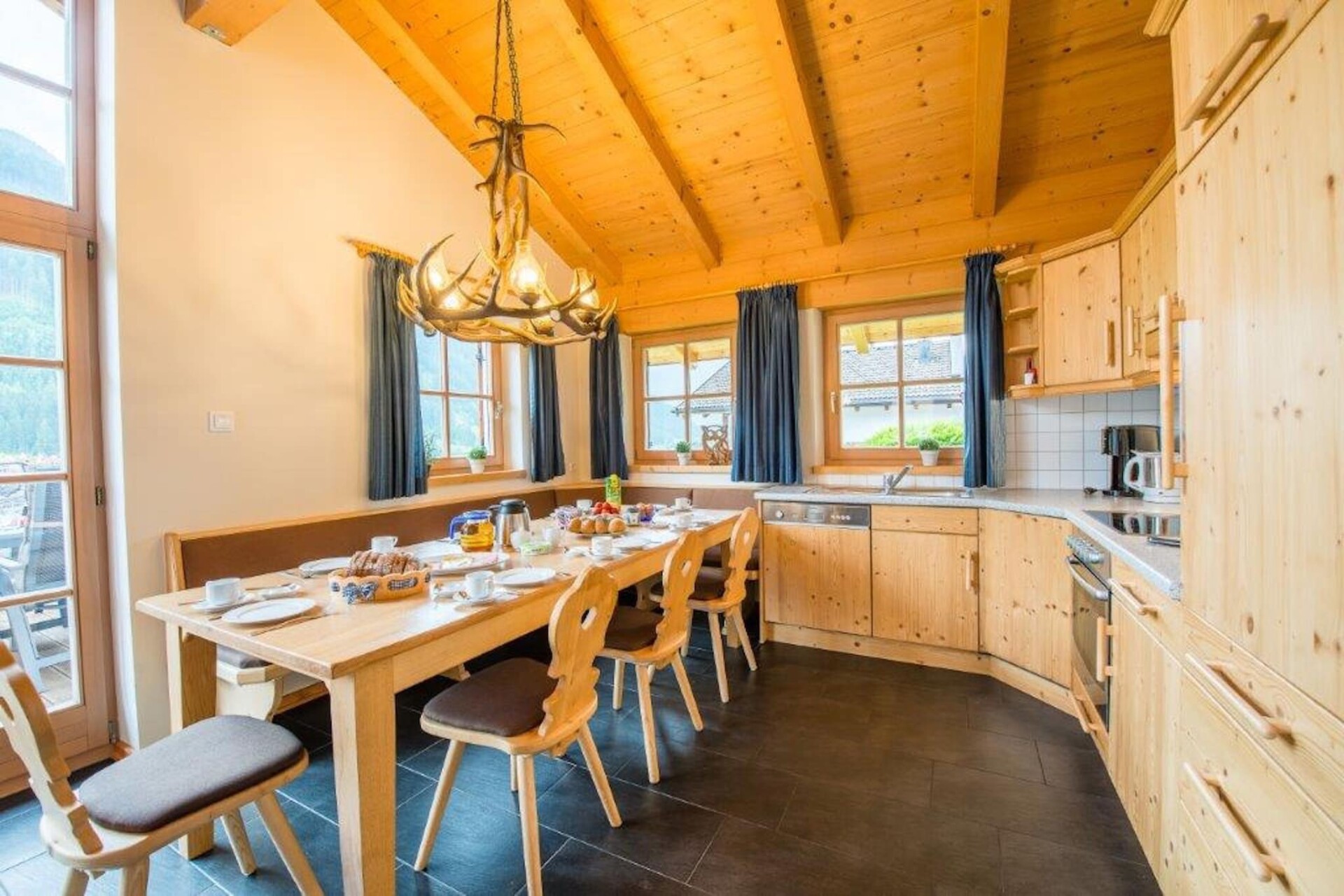 Het chalet is comfortabel en compleet ingericht en met veel hout afgewerkt. Hierdoor kunt u optimaal genieten van de Oostenrijkse sfeer. Op de begane grond vindt u er een woonkamer met gezellige open haard. Door de grote raampartijen vanaf de vloer tot in de nok, heeft u een fantastisch uitzicht over de omliggende bergen. De open keuken is van alle gemakken voorzien. Zo vindt u er onder andere een afwasmachine, magnetron en oven. In de hal vindt u er een apart toilet. Een verdieping lager beschikt u over vier slaapkamers, waarvan twee met een badkamer ensuite met douche en toilet. Er zijn drie slaapkamers met een 2-pers. bed en één slaapkamer met twee 1-pers. bedden. De derde badkamer beschikt over een ligbad, douche en toilet. Op de overloop bevindt zich een apart toilet. Een wellnessruimte met sauna, douche, wasmachine en -droger maakt het geheel compleet.