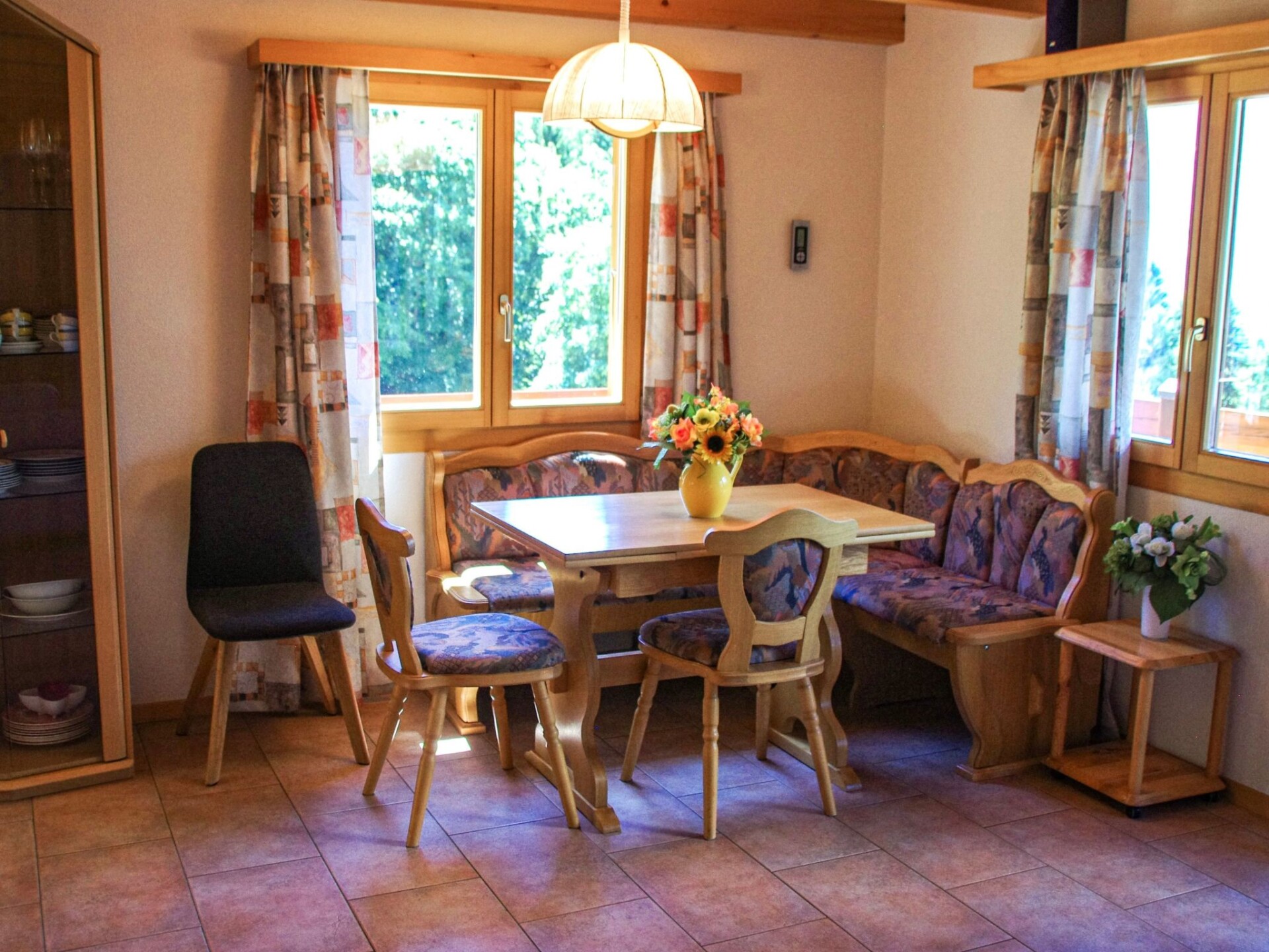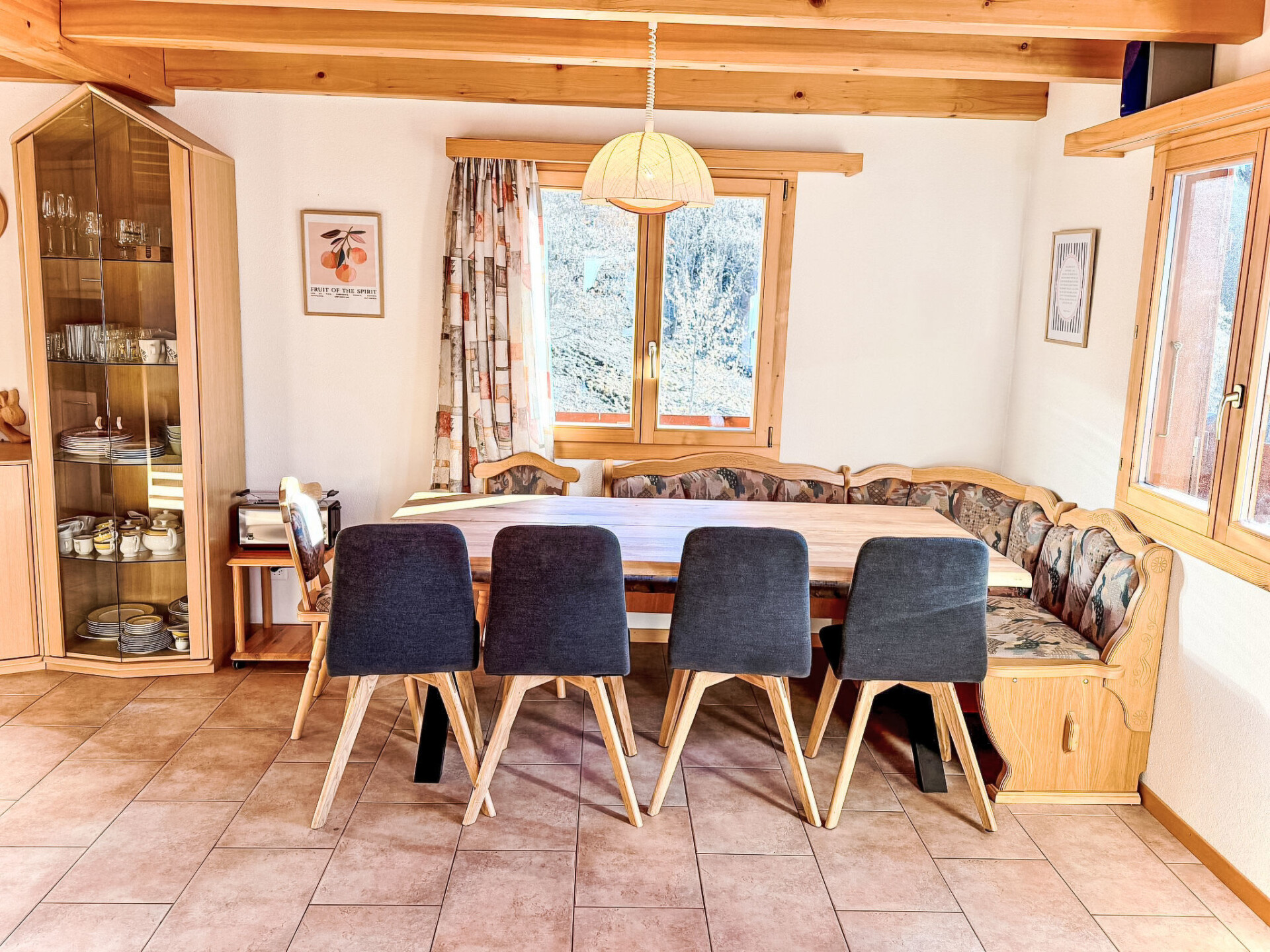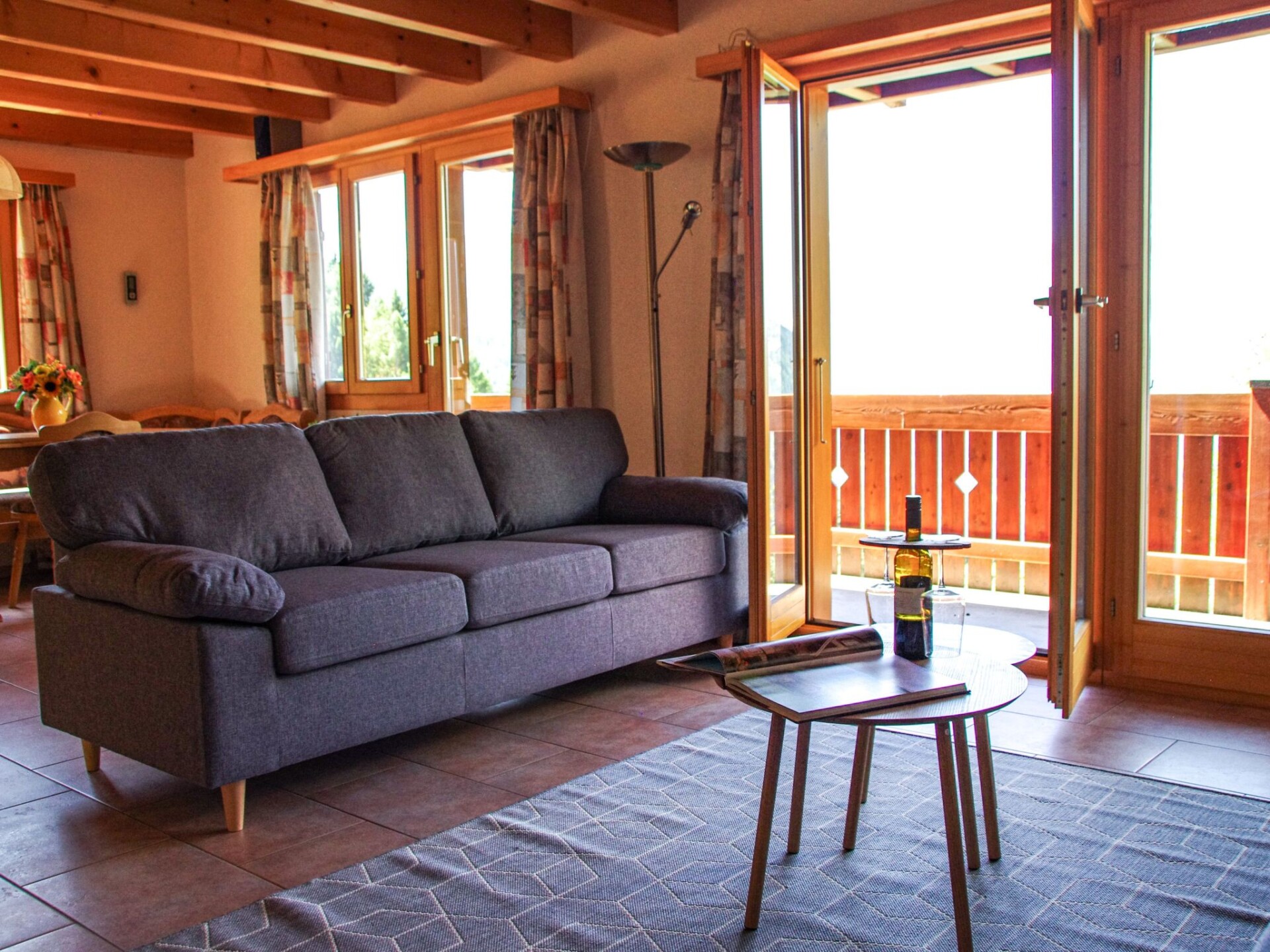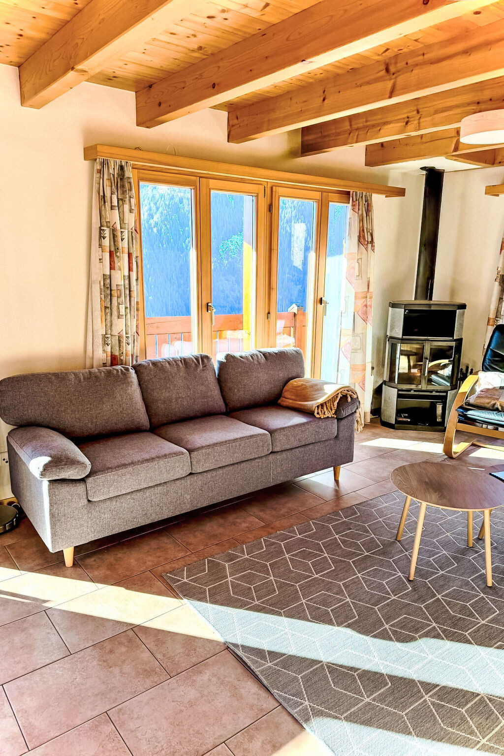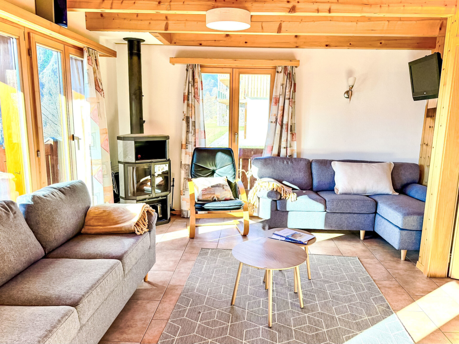 This beautiful chalet not only offers you a perfect, relaxed and comfortable atmosphere with a wonderful view of the valley, but it also offers everything else you need for a successful, simple and comfortable holiday!Charis can accommodate up to 8 people and is therefore perfect for families or a group of friends.Thanks to the wonderful view of the valley and the undisturbed, idyllic meadows behind the house, you can not only feel the peace and quiet of the mountains, but also experience it!Make yourself comfortable on the terrace or enjoy the view from the balcony.The open spaces around the house are ideal for socialising or simply enjoying the fresh air in a picturesque setting.The interior is also bright and cosy and provides an all-round good feeling!In addition, it is equipped with all the useful everyday items for life, whether washing machine, coffee machine or dishwasher, here you can easily be for a longer period of time, because thanks to this complete equipment you feel like at home.The surroundings of the holiday home are ideal for those who long for relaxation, but also for those who like to be active. With the nearest village centre just 500m away and the beautiful footpaths not too far away, the chalet is an ideal starting point. Look forward to a time-out that leaves nothing to be desired - and we look forward to welcoming you as our guests soon.