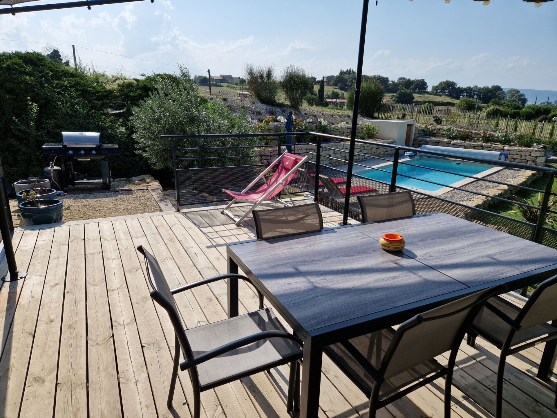 In the heart of the Drome Provençale, in a magnificent setting, we welcome you to our brand new gite, La Martinelle, located in a farmhouse not overlooked by the owners. The gite has its own private heated swimming pool. Shaded parking space and garden in the middle of 6 hectares of meadows surrounded by mountains.At the entrance to the gite is a large terrace a few metres from the swimming pool for outdoor meals and barbecues or plancha.a fully equipped kitchen: washing machine, dishwasher, oven, microwave, open plan living room, sofa bed, followed by a WC, 2 bedrooms with a bathroom in each. 1 bedroom with a 140 cm double bed and a 90 cm single bed, shower and single washbasin - 1 bedroom with a 160 cm double bed, shower and double washbasin - Household linen provided: bath towel, hand towel, sheet, fitted sheet, dish towel.For lovers of walking, hiking, cycling, mountain biking, horse riding, superb trails and paths await you near the gite.you will find all shops 2 minutes by car or 10-15 minutes walk through the small medieval village of chateau neuf de Mazenc.If you are looking for an escape with your horse, the gite can accommodate riders and their horses.a saddlery, grooming area, paddocks with quality hay are at your disposal for the reception and accommodation of your horse.numerous walks and hikes are close to the gite and will help you discover the beauty of the Drome countryside.If you want to get away from it all with your horse, the gite can accommodate riders and their horses.a saddlery, grooming area and paddocks with quality hay are available to welcome and accommodate your horse.numerous walks and hikes are close to the gite, enabling you to discover the beauty of the Drome countryside.20 minutes' drive from Montélimar railway station and motorway.Valence TGV station: 1 hourLyon: 1 hour 30 minutes. 881 662 175