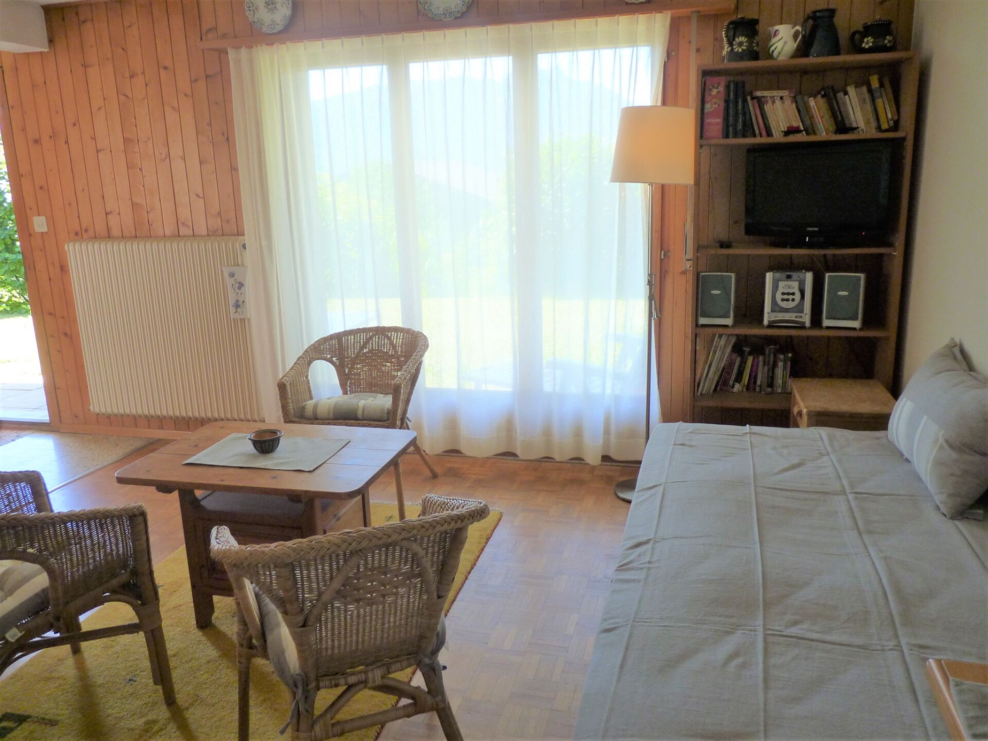 "Châtillon C 16", appartement 2-kamers 30 m2, op de begane grond, op het zuidoosten gelegen. Eenvoudig en doelmatig ingericht: woon-/eetkamer met 2 uitschuifbare bedden (2 pers. 2 x 90 cm), eettafel, Kabel-TV, Flatscreen TV en radio. Uitgang naar de tuin, naar het terras. 1 kamer met 2 bedden (90 cm). Kookhoek (3-pits kookplaat, oven). Bad/WC. Tuin 40 m2, op het zuidoosten gelegen. Terrasmeubelen, ligstoelen (2). Beperkt uitzicht op de bergen. Parkeerplaats (omheind). Niet rokers woning. Maximaal 1 huisdier/hond toegestaan.