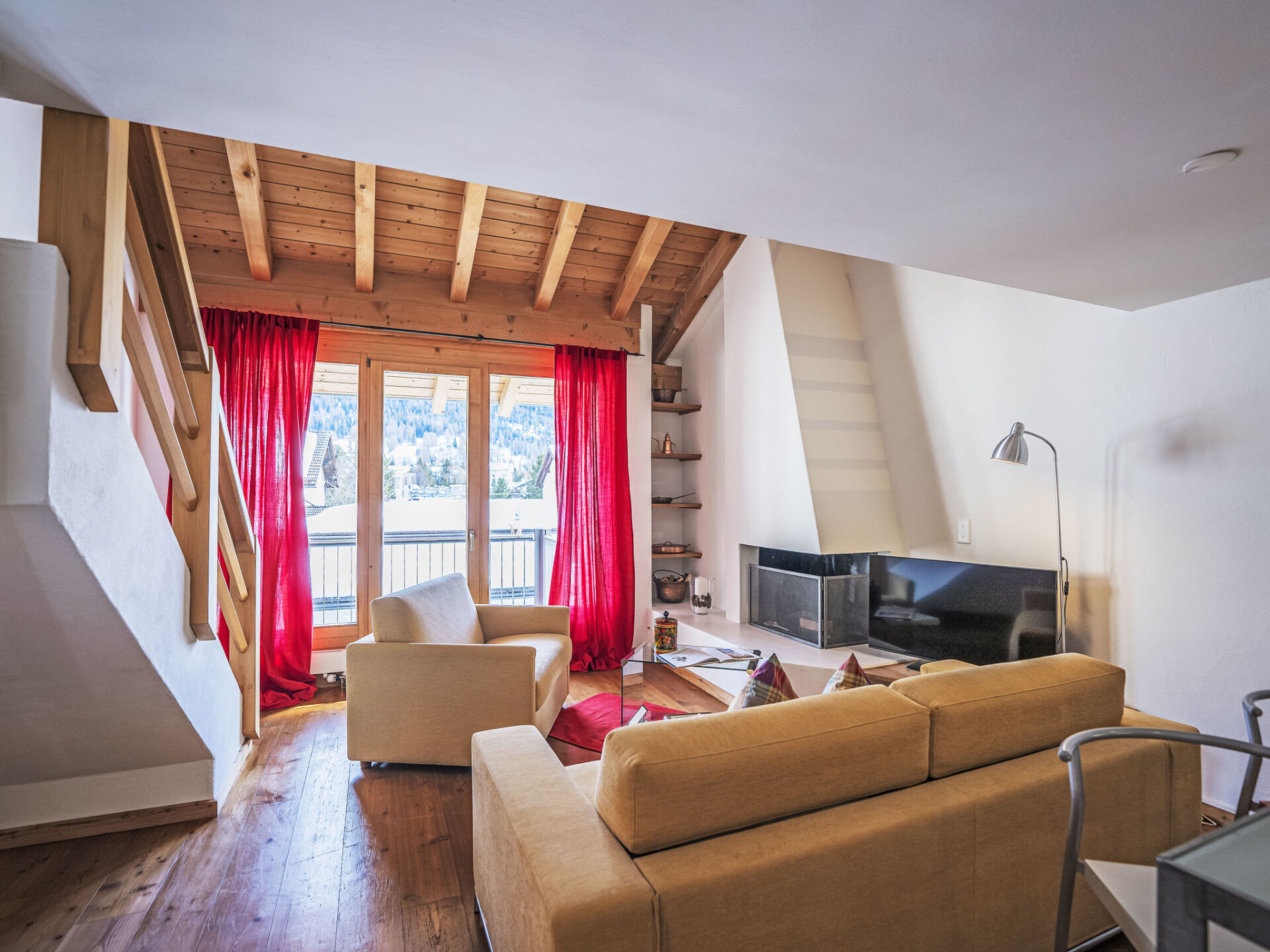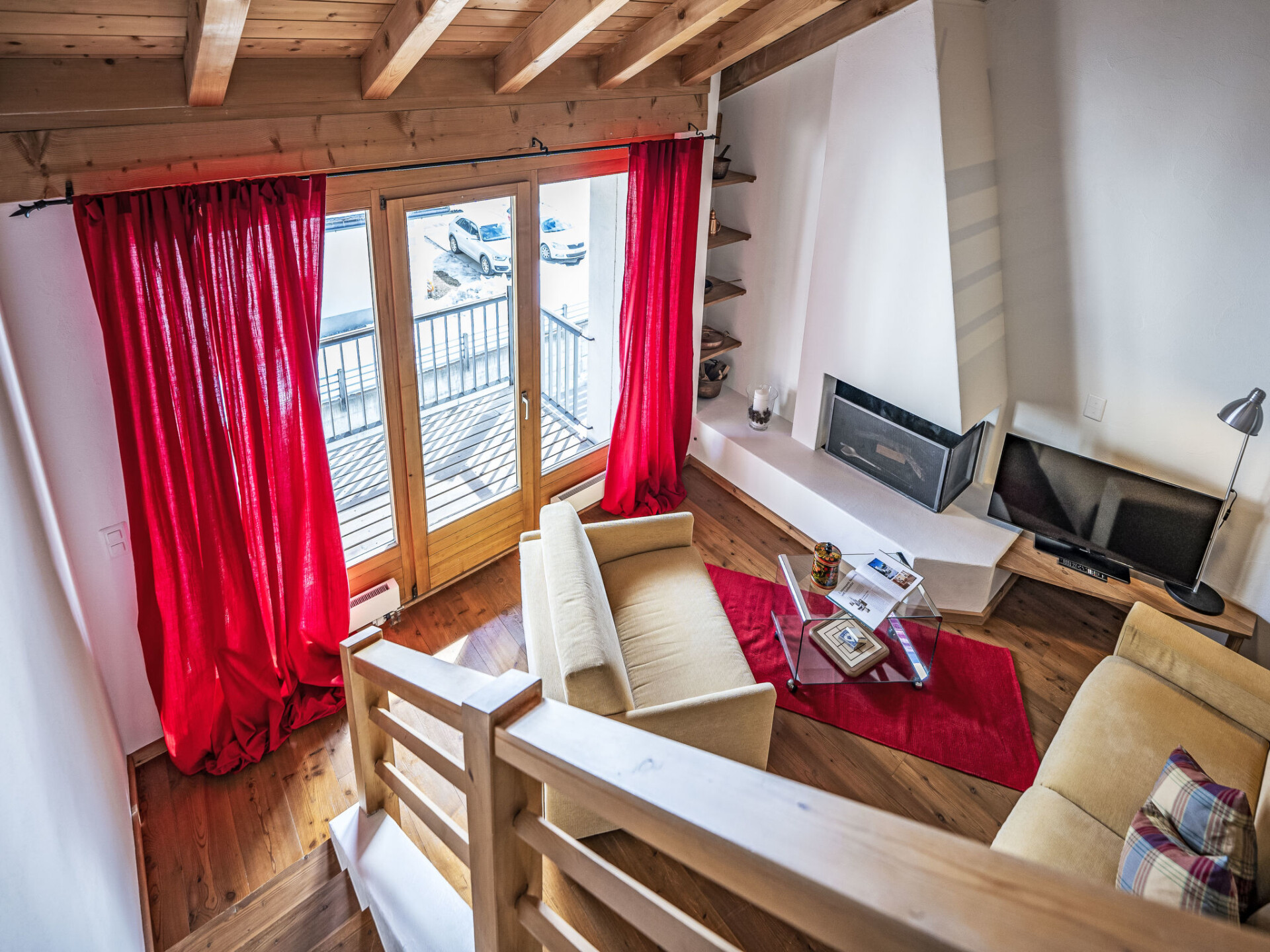 "Chesa Alossa", maisonette 3-kamers 75 m2 op de 1e verdieping. Eenvoudig en gezellig ingericht: open woon-/eetkamer met open haard, eettafel, kookhoek en TV (Flatscreen TV). Uitgang naar het balkon. 1 kleine kamer met 1 2-pers bed (1 x 160 cm, lengte 200 cm). Groot, open galerij met 1 2-pers bed (1 x 160 cm, lengte 200 cm), douche/WC. Open keuken (oven, afwasmachine, 4 keramische glas kookplaten, broodrooster, waterkoker, diepvriezer, elektrische koffiemachine, pads voor de koffiemachine (Nespresso) extra). Bad/WC. Verwarming. Parketvloeren. Zeer mooi uitzicht op de bergen en het landschap. Ter beschikking: strijkijzer, haardroger. Internet (WiFi, gratis). Garage nr. Scavino (1 Auto) bij het huis, hoogte 195 cm, breedte 230 cm. Niet geschikt voor kinderen onder 6 jaar. Niet rokers woning, rookvrij huis. Maximaal 2 huisdieren/honden toegestaan. Geen lift. :InnHub construction project in front of the house approx. 30 m (March 2025 - approx. March 2028) - during the snow season no construction will be done.