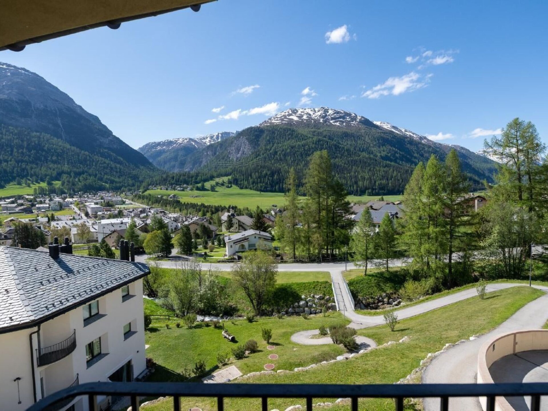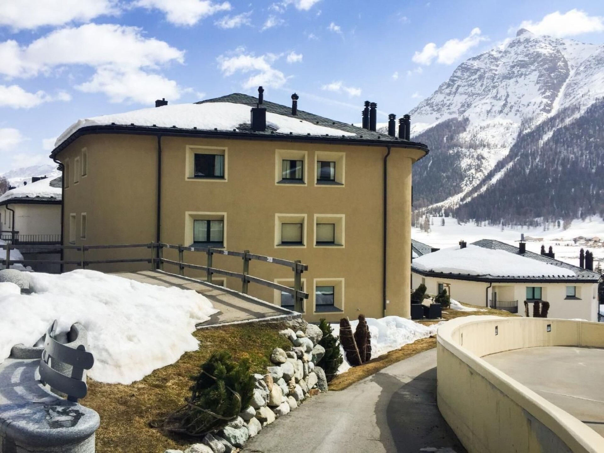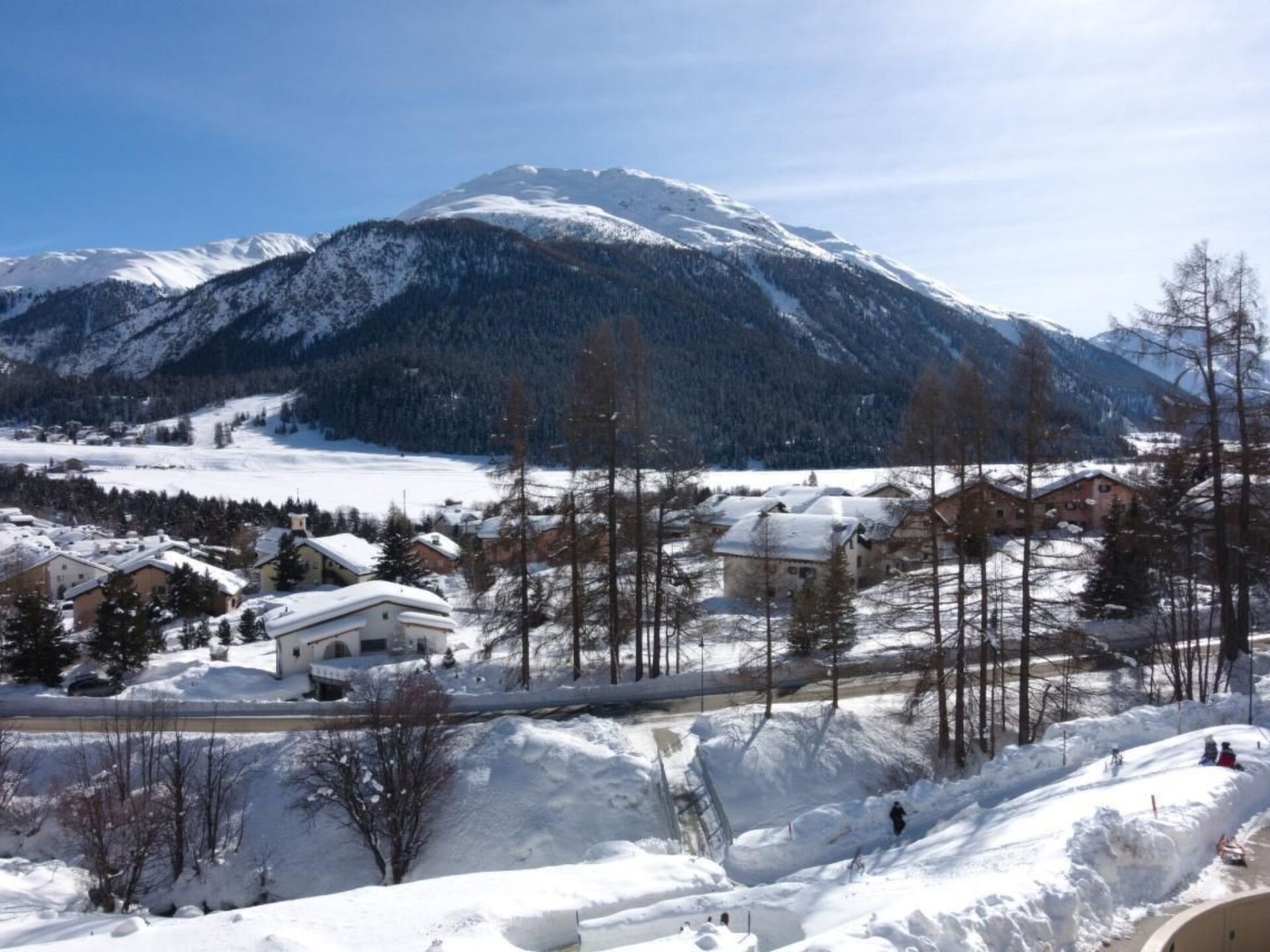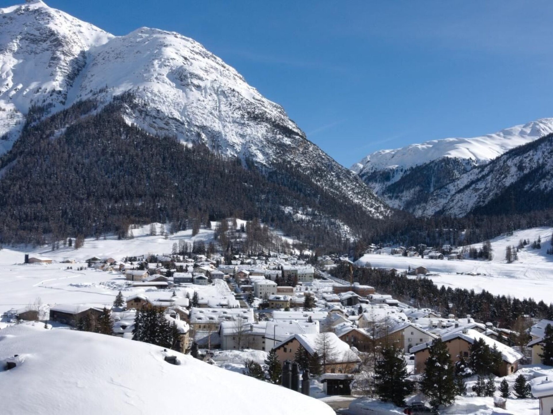 A sunny, modern 4 1/2 room apartment, 110 m² on the third floor of a house with a fantastic view over the valley and Chamues. The house is 330 m from the La-Punt Chamues train station, cross-country skiing trails, the Müsella ski lift can be reached in approx. 10 walking minutes, the next restaurant in approx. 2 minutes.The apartment can be reached by elevator from the underground car park and the house has also a laundry room (washing machine and dryer), a ski room, and a bike room. Two parking places are in the rental price included. The living room is modern and comfortably furnished with a flat screen TV. The adjoining dining room has an oval table with 6 chairs. In the entrance, there is a cloakroom and a large mirror. The master room has a double bed (180x200), its own bathroom with a bathtub and shower, toilet, and a dressing room. The second room also has a double bed (180x200) and a built-in wardrobe. It shares a bathroom with a shower and toilet with the third room, which is furnished with a bunk bed and two smaller built-in wardrobes. The kitchen has a dishwasher, stove, oven and all the utensils you need for cooking.Not suitable for children.Excursion possibilities: What mountains. What lakes. What light! Whether on the 580km (360 miles) of hiking paths strewn over all the mountains or by mountain bike along 400km (250 miles) of fabulous trails: the Upper Engadin offers a superb network of paths and trails amidst an unspoilt Alpine landscape and the inspiring lake plateau. Four flow trails on the Corviglia guarantee a perfect flow. Equally popular among sports enthusiasts are the Upper Engadin lakes; kiting, sailing, windsurfing, stand up paddling – the possibilities are virtually endless. The expanse of the inspiring high-lying valley can be experienced in a particularly striking way on the two 18-hole golf courses in Samedan and Zuoz. And besides the wide range of sporting options, visitors can take advantage of the first-class cultural activities on offer, such as a visit to a museum or to one of the numerous art galleries in the various villages.   In winter, the ski areas of Corviglia, Corvatsch, Diavolezza and family friendly Zuoz invite ski and snowboard enthusiasts to revel in 350 kilometres (218 miles) of the finest powder snow. Cross-country skiers will find over 220km (137 miles) of perfectly groomed trails in the Upper Engadin and the side valleys. The winter hiking paths and cross-country ski trails on the frozen Upper Engadin lakes are characterised by their light, sunshine and space amidst inspiring Alpine scenery. Those who would like to enjoy the tranquillity and beauty of the snow-covered forests can explore the side valleys of Val Roseg, Val Fex or Val Bever on 150 kilometres (90 miles) of winter hiking paths. Visitors who prefer to have everything in view, meanwhile, will delight in the breathtaking vistas on the panorama hiking trails high above the lakes on Muottas Muragl.   Families can bask in the Engadin sun during a ride in a horse-drawn carriage into the Val Roseg or Val Fex, or race down the mountainside into the valley on the winding, 4.2km (2.6 mile) long toboggan run on Muottas Muragl.  Welcome to the EngadinOther living room features (Living room1): Dining area with dining table and 6 chairs / 3 bar stoolsOther bedroom furniture (Bedroom1): Closet 4m², Bathroom  4m²Other kitchen equipment (Kitchen1): Nespresso coffee machine, cheese fondue, raclette...Nearby sports facilities: Ice skating, Golf course, Climbing, Mountainbiking, Paragliding, Bike tours, Horse stalls (guests), Indoor riding arena, Riding possibilities, Skiing (alpin), Cross-country skiing, Tennis, Sailing