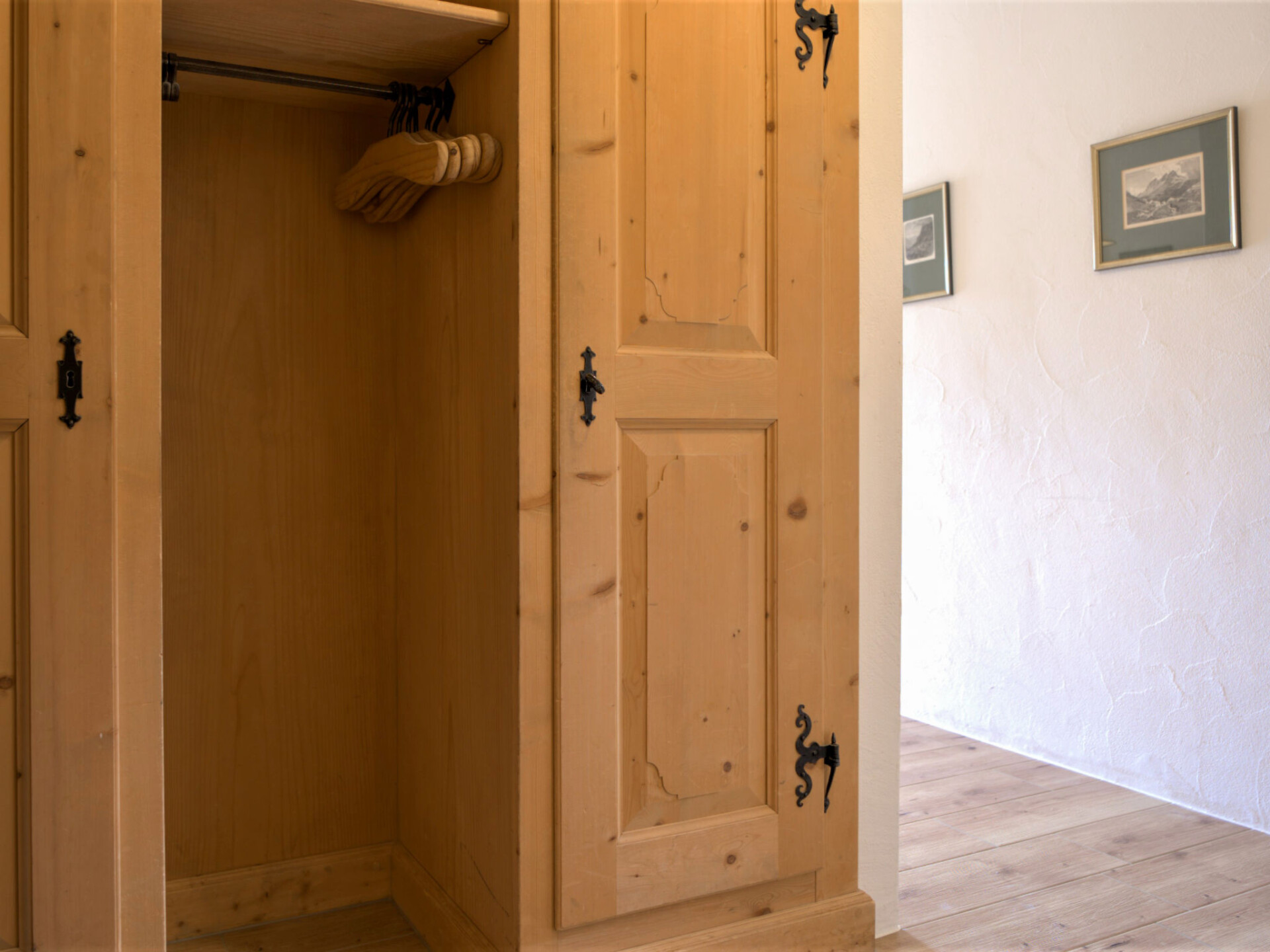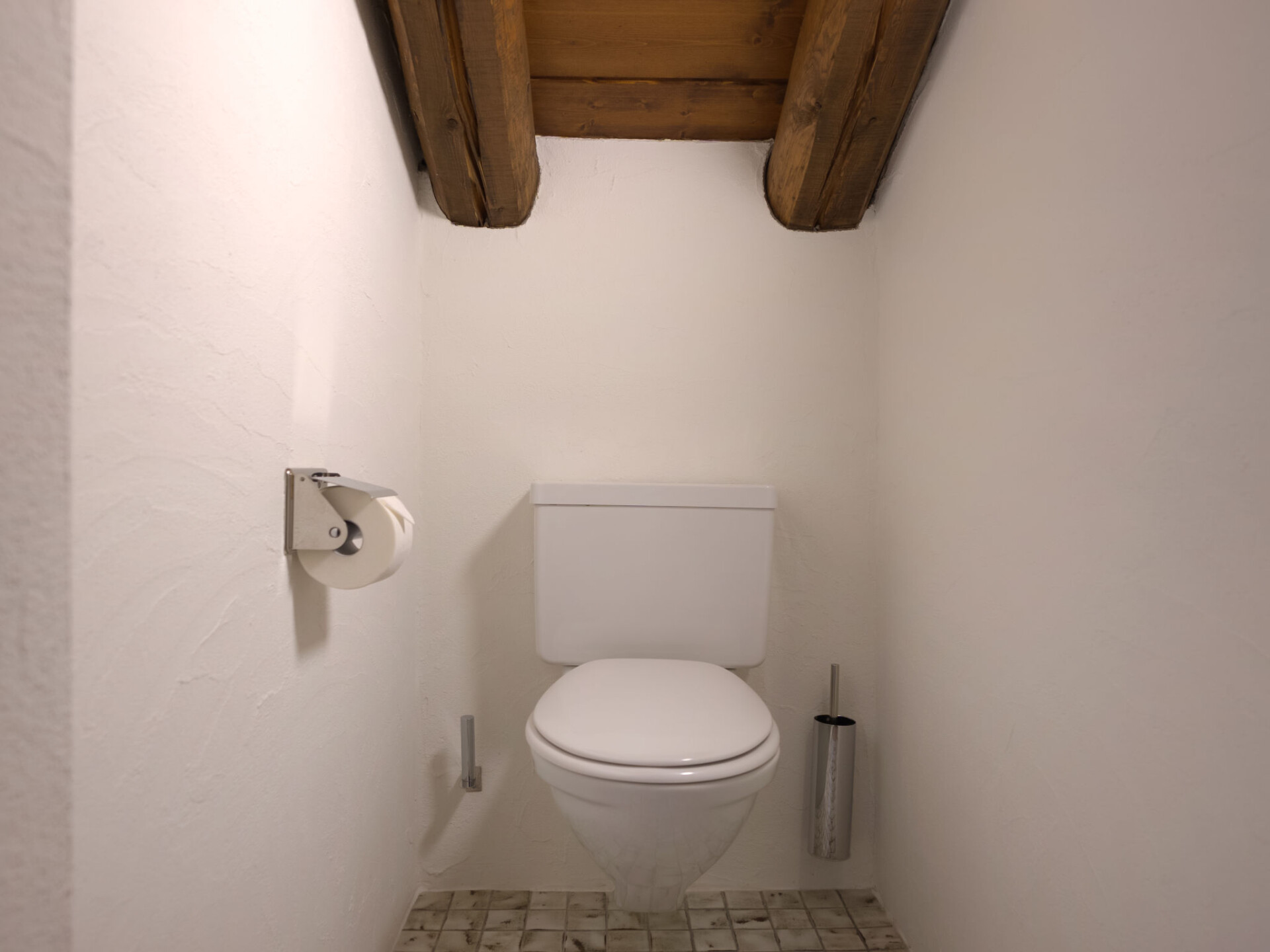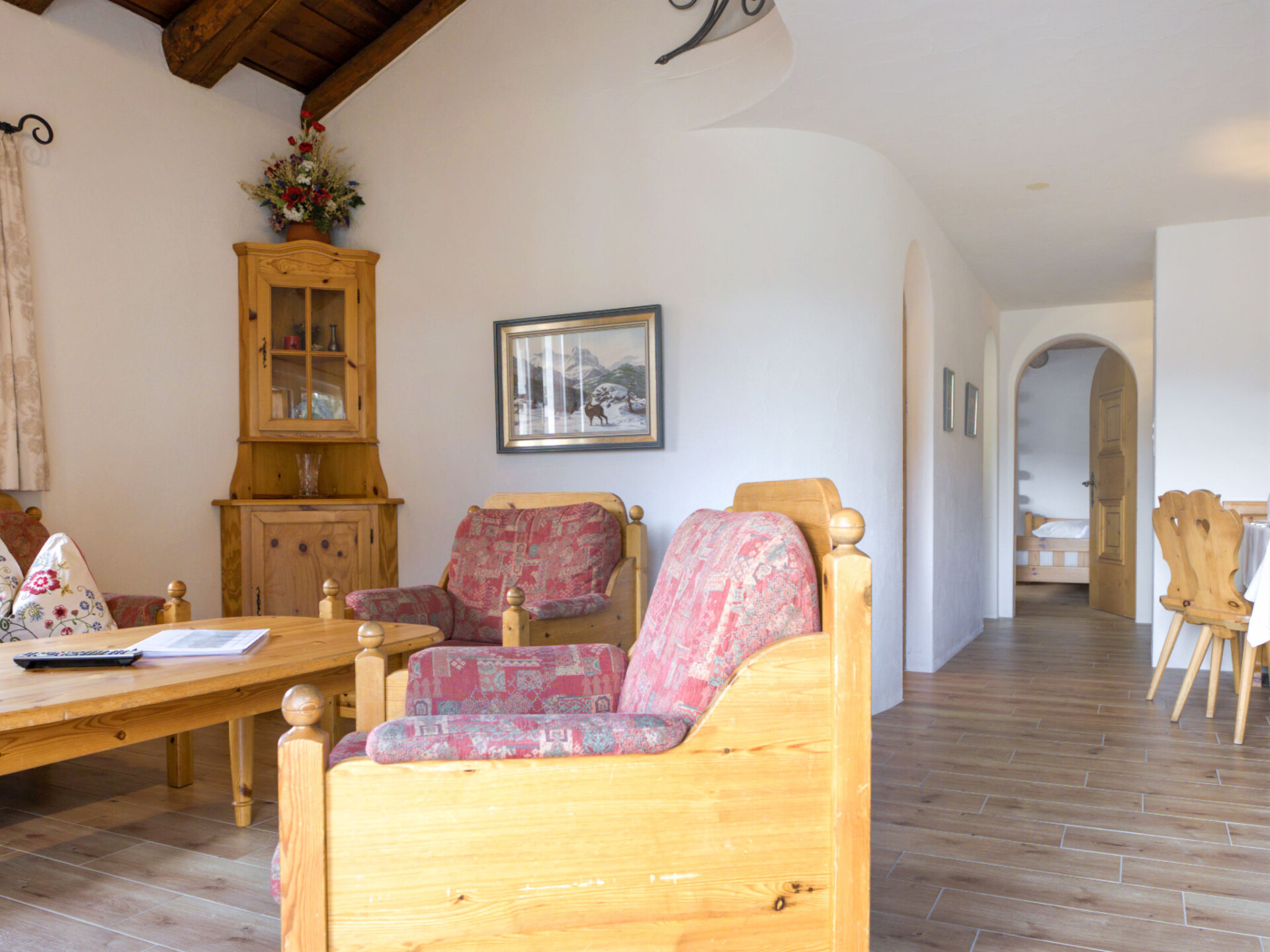 "Chesa Chanella 5", appartement 3-kamers 85 m2 op 2 verdiepingen, op de bovenste verdieping. Gezellig ingericht: woon-/eetkamer met open haard, TV en radio. Uitgang naar het balkon, op het zuidwesten. 1 kamer met 2 bedden (90 cm, lengte 190 cm). Keuken (oven, afwasmachine, 4 inductiekookplaten, broodrooster, waterkoker, diepvriezer, elektrische koffiemachine, pads voor de koffiemachine (Nespresso) extra, fondue Set (kaas)). Bad/WC. Bovenverdieping: (steile trap) open galerij met afgeschuinde daken met 2 bedden (90 cm, lengte 195 cm). 1 kamer met 1 2-pers bed (1 x 155 cm, lengte 200 cm), wastafel. Aparte WC. Uitzicht op de bergen. Ter beschikking: haardroger. Internet (WiFi, gratis). Garage nr. 5, hoogte 225 cm, breedte 210 cm. In plaats van een afgesloten slaapkamer bevinden sommige slaapgedeeltes zich in een open ruimte (galerij, nis, etc.).
