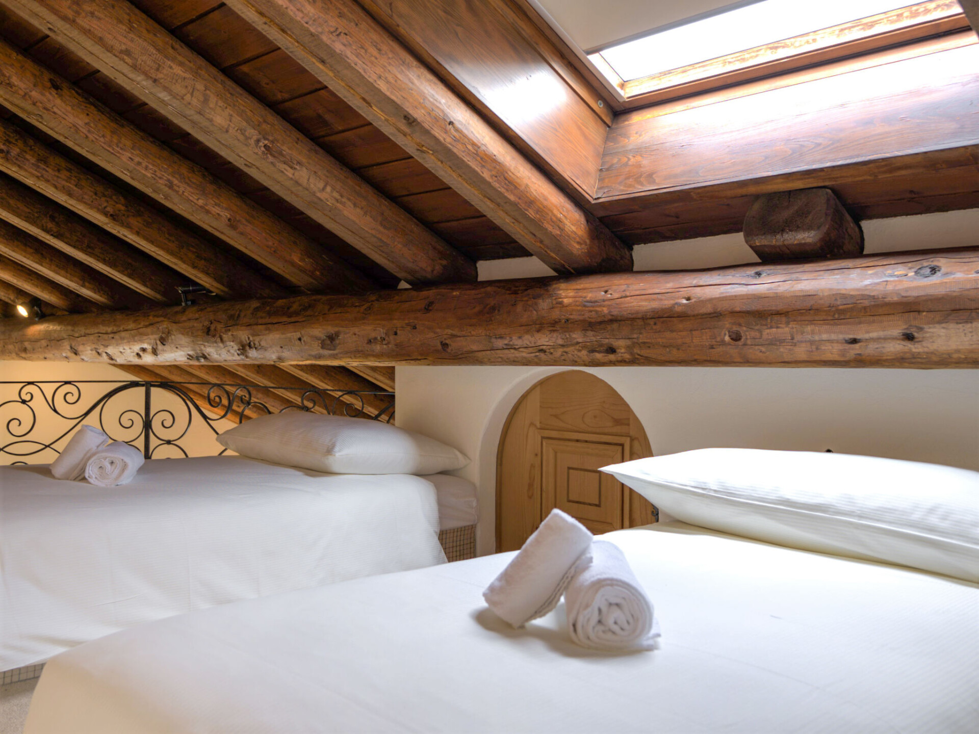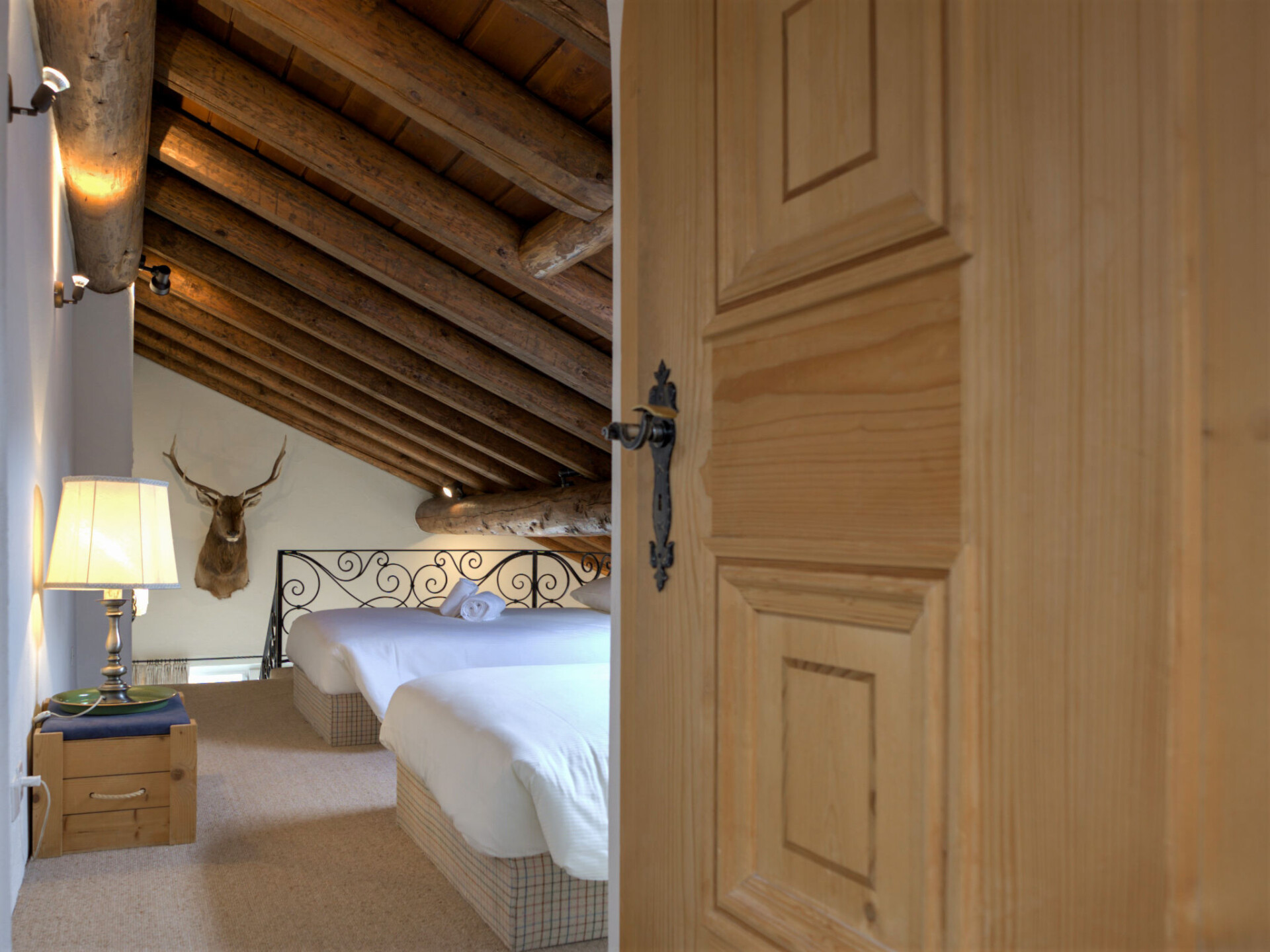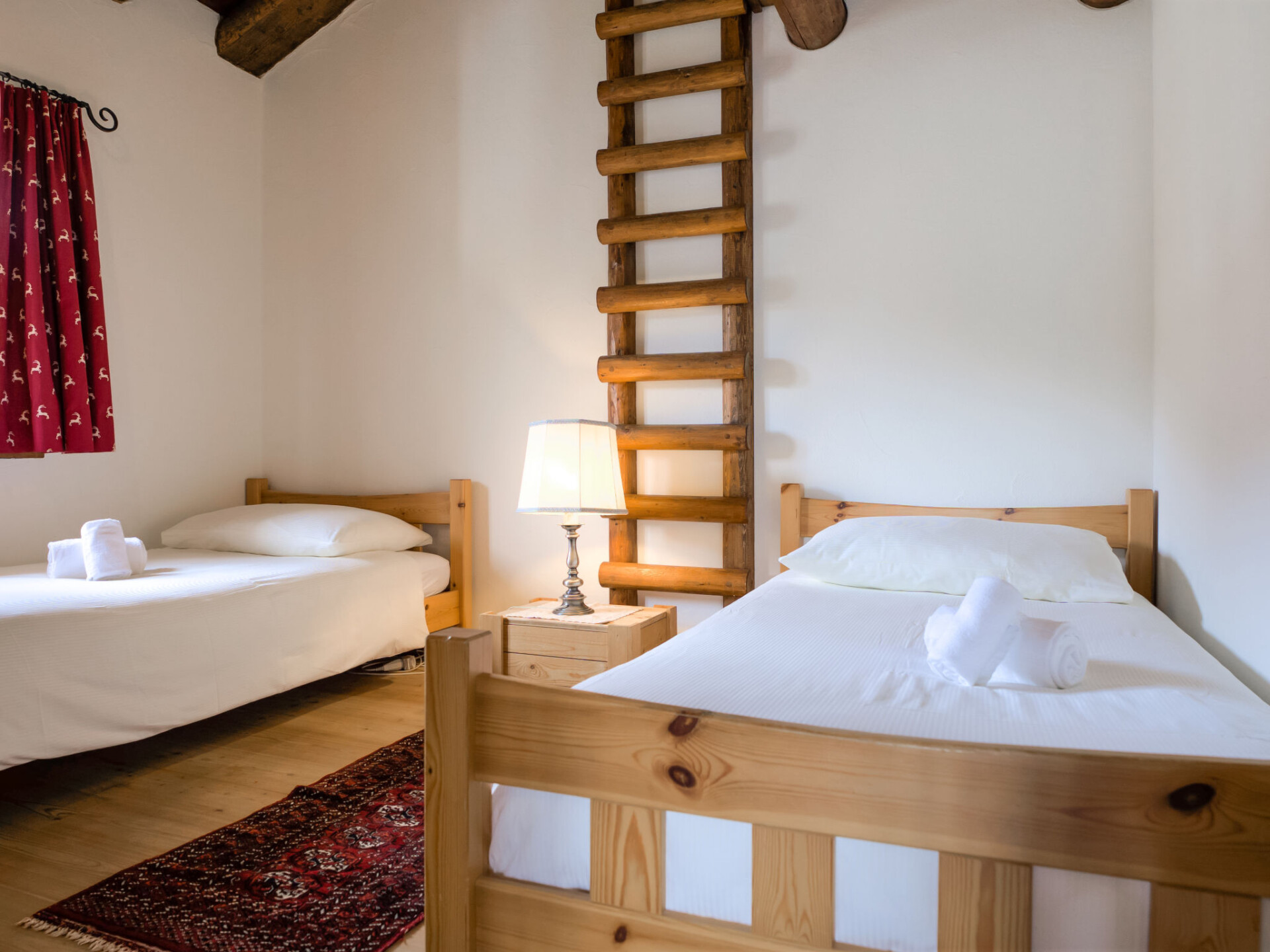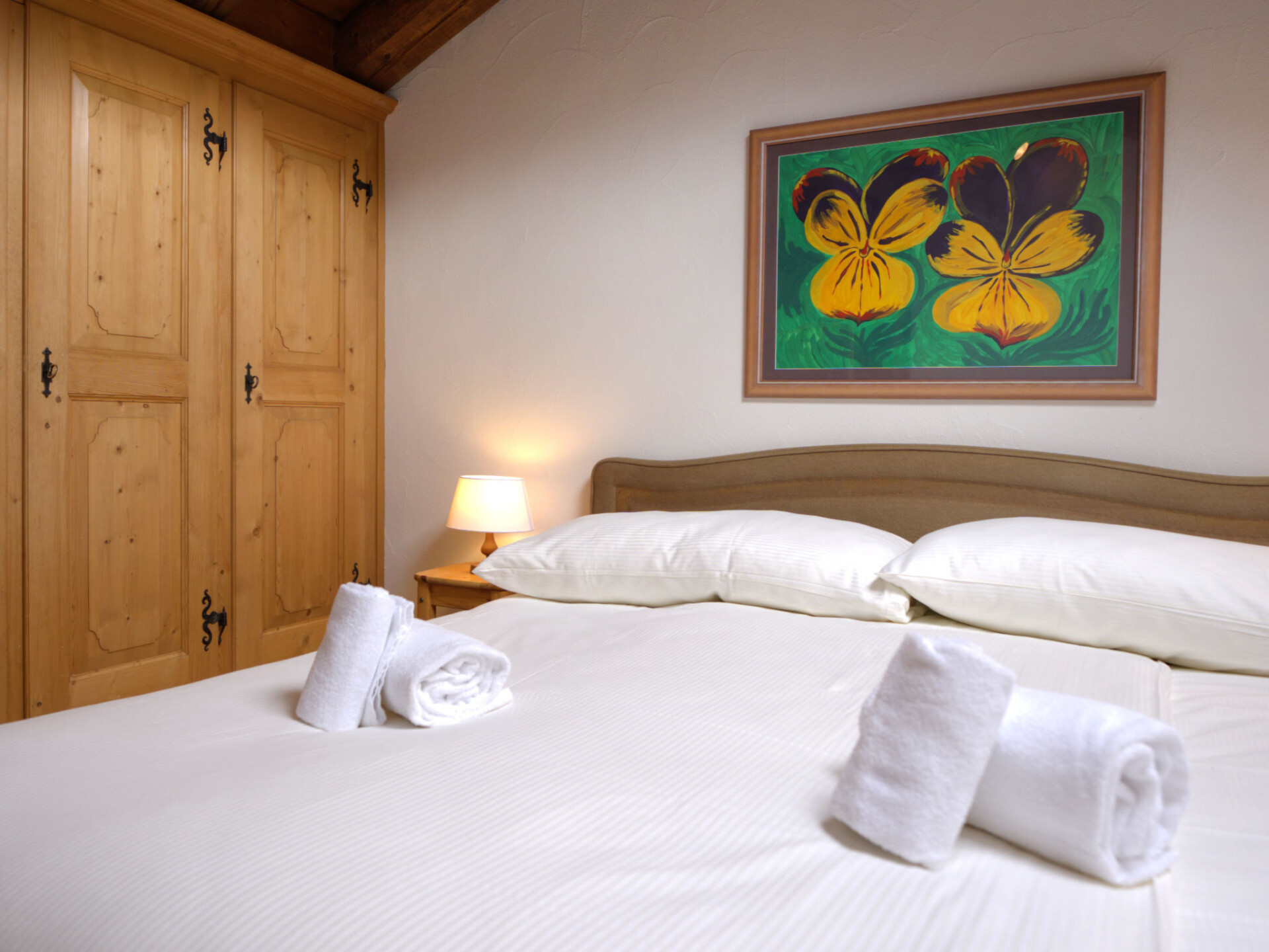 "Chesa Chanella 5", appartement 3-kamers 85 m2 op 2 verdiepingen, op de bovenste verdieping. Gezellig ingericht: woon-/eetkamer met open haard, TV en radio. Uitgang naar het balkon, op het zuidwesten. 1 kamer met 2 bedden (90 cm, lengte 190 cm). Keuken (oven, afwasmachine, 4 inductiekookplaten, broodrooster, waterkoker, diepvriezer, elektrische koffiemachine, pads voor de koffiemachine (Nespresso) extra, fondue Set (kaas)). Bad/WC. Bovenverdieping: (steile trap) open galerij met afgeschuinde daken met 2 bedden (90 cm, lengte 195 cm). 1 kamer met 1 2-pers bed (1 x 155 cm, lengte 200 cm), wastafel. Aparte WC. Uitzicht op de bergen. Ter beschikking: haardroger. Internet (WiFi, gratis). Garage nr. 5, hoogte 225 cm, breedte 210 cm. In plaats van een afgesloten slaapkamer bevinden sommige slaapgedeeltes zich in een open ruimte (galerij, nis, etc.).