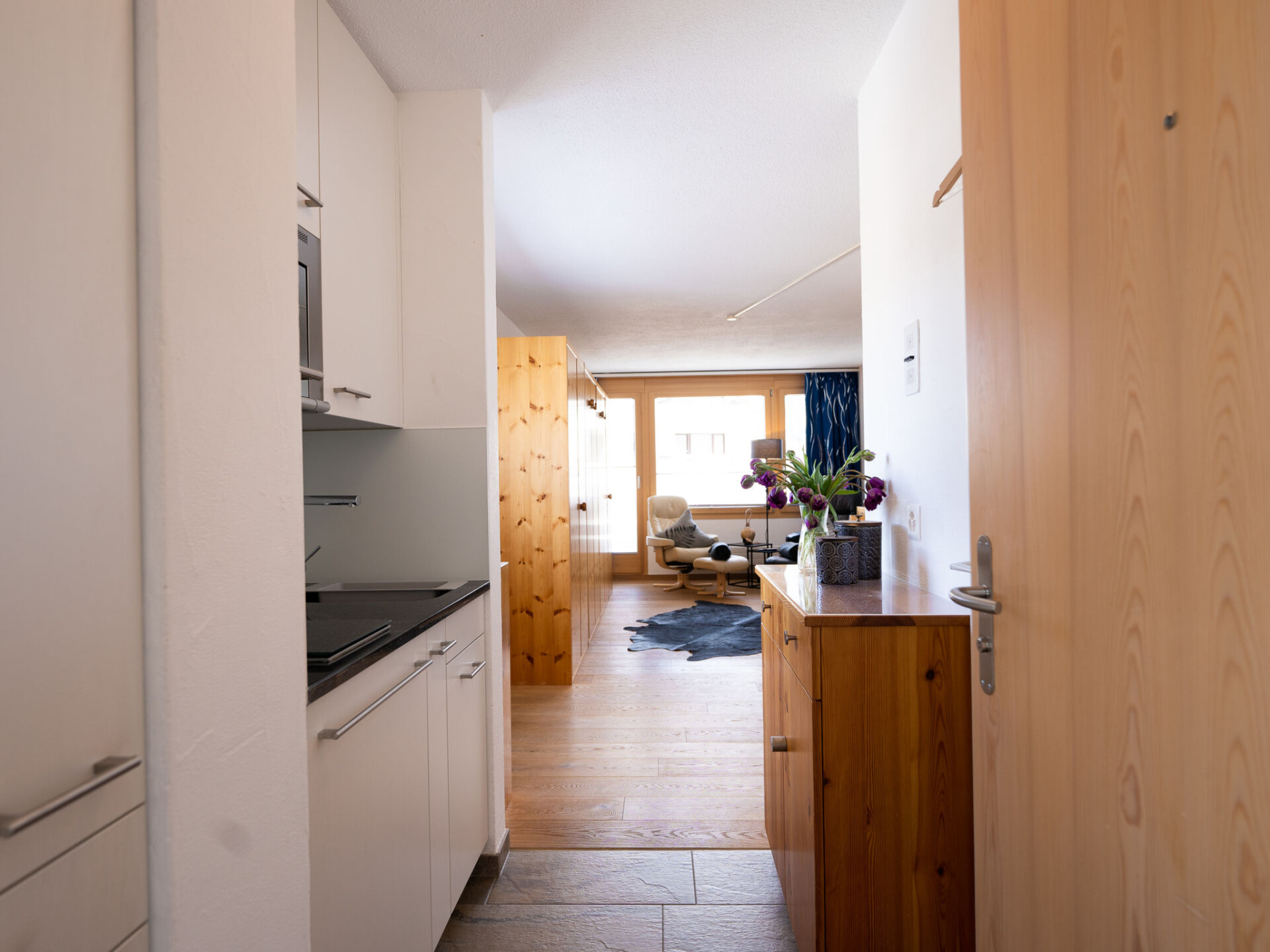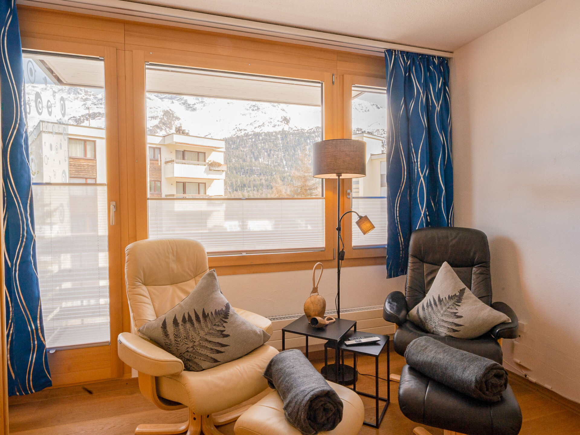 "Chesa Corvatsch 211 - Champfer", appartement 1-kamer 30 m2 op de 2e verdieping. Licht, gezellig en met veel hout ingericht: woon-/slaapkamer met eettafel en TV (Flatscreen TV). Uitgang naar het balkon. Kleine, open keuken in de hal (2 keramische glas kookplaten, broodrooster, waterkoker, magnetron, elektrische koffiemachine, pads voor de koffiemachine (Nespresso) extra) met 2 kastbedden (90 cm, lengte 200 cm). Bad/WC. Verwarming. Houten vloeren. Balkonmeubilair. Mooi uitzicht op de bergen en het landschap. Ter beschikking: strijkijzer, haardroger. Internet (Internet (WiFi), gratis). Parkeerplaats nr. 211 (overdekt), hoogte 200 cm, breedte 220 cm. Appartement aan de binnenplaats. Niet rokers woning, rookvrij huis.