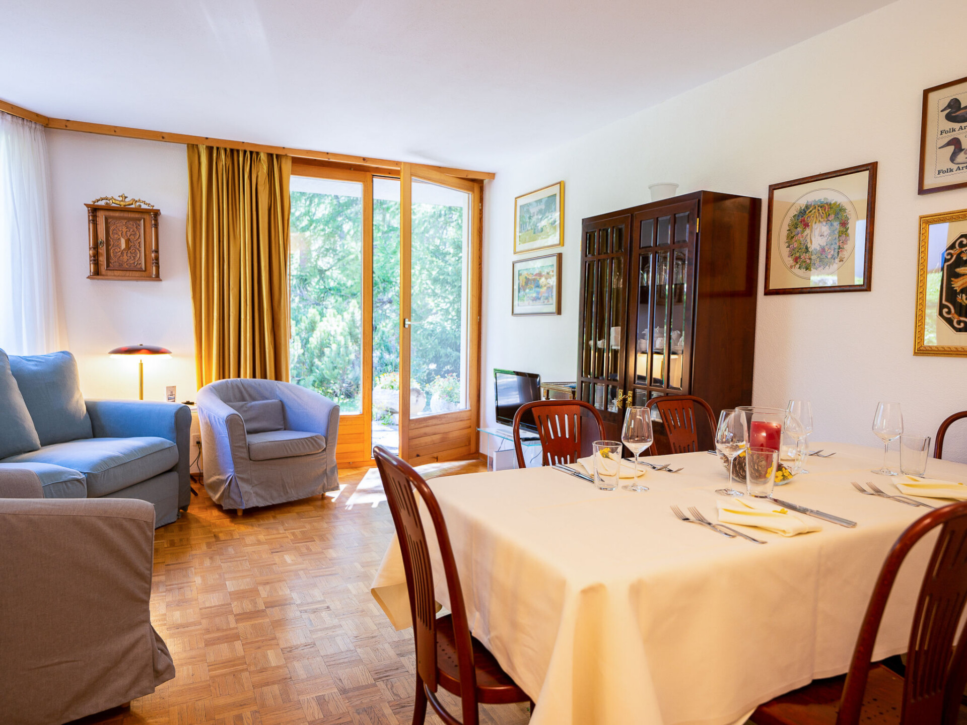 Klein appartementencomplex "Chesa Cresta", van 3 verdiepingen, omgeven door bomen en weiden. Beneden Corvatsch, zonnige ligging tegen een helling, in een woonwijk, 200 m van de bosrand, 100 m van het skigebied, aan een doodlopende weg, te midden van groen. Voor medegebruik: mooie tuin op verschillende niveaus (niet omheind). In het huis: zonneterras, berging voor ski's, centrale verwarming, wasmachine, droger (voor medegebruik, extra), droogruimte. In de winter sneeuwkettingen aanbevolen. Gemeenschappelijke garage. Winkel 1.6 km, levensmiddelenwinkel 1.6 km, restaurant 400 m, bakkerij 500 m, café 500 m, fietsverhuur 800 m, bushalte "Surlej Parkplatz" 600 m, meer Silvaplaner See 1 km. Golfterrein (18 holes) 13.6 km, surfschool 2.3 km, tennis 2.3 km, tennishal 6.1 km, midgetgolf 6.6 km, manege 3.9 km, sportcentrum 2.3 km, wandelroutes 200 m vanaf het huis, fietspad 500 m, kabelbaan 1.4 km, skilift, skiverhuur 800 m, skibushalte 600 m, skischool 100 m, kinderskischool 100 m, rodelbaan 11 km, langlaufloipe 400 m, ijsbaan 2.3 km, kinderspeelplaats 1.6 km. Attracties in de buurt: Nietzsche-Haus in Sils-Maria 6.6 km, Segantini-Museum in St. Moritz 6.6 km. Bekende skigebieden kunnen gemakkelijk worden bereikt: Corvatsch - Furtschellas 100 m, Corviglia 6.6 km, Diavolezza - Lagalb 26 km. Bekende meren kunnen gemakkelijk worden bereikt: Silvaplana See 1 km, Silser See 5.6 km, St. Moritzer See 6.6 km. Wandelgebied Corvatsch - Furtschllas 1.4 km, Via Engiadina 1.8 km, Seengebiet St. Moritz - Maloja. Geen lift. Bij goede skicondities is het huis bereikbaar per ski.