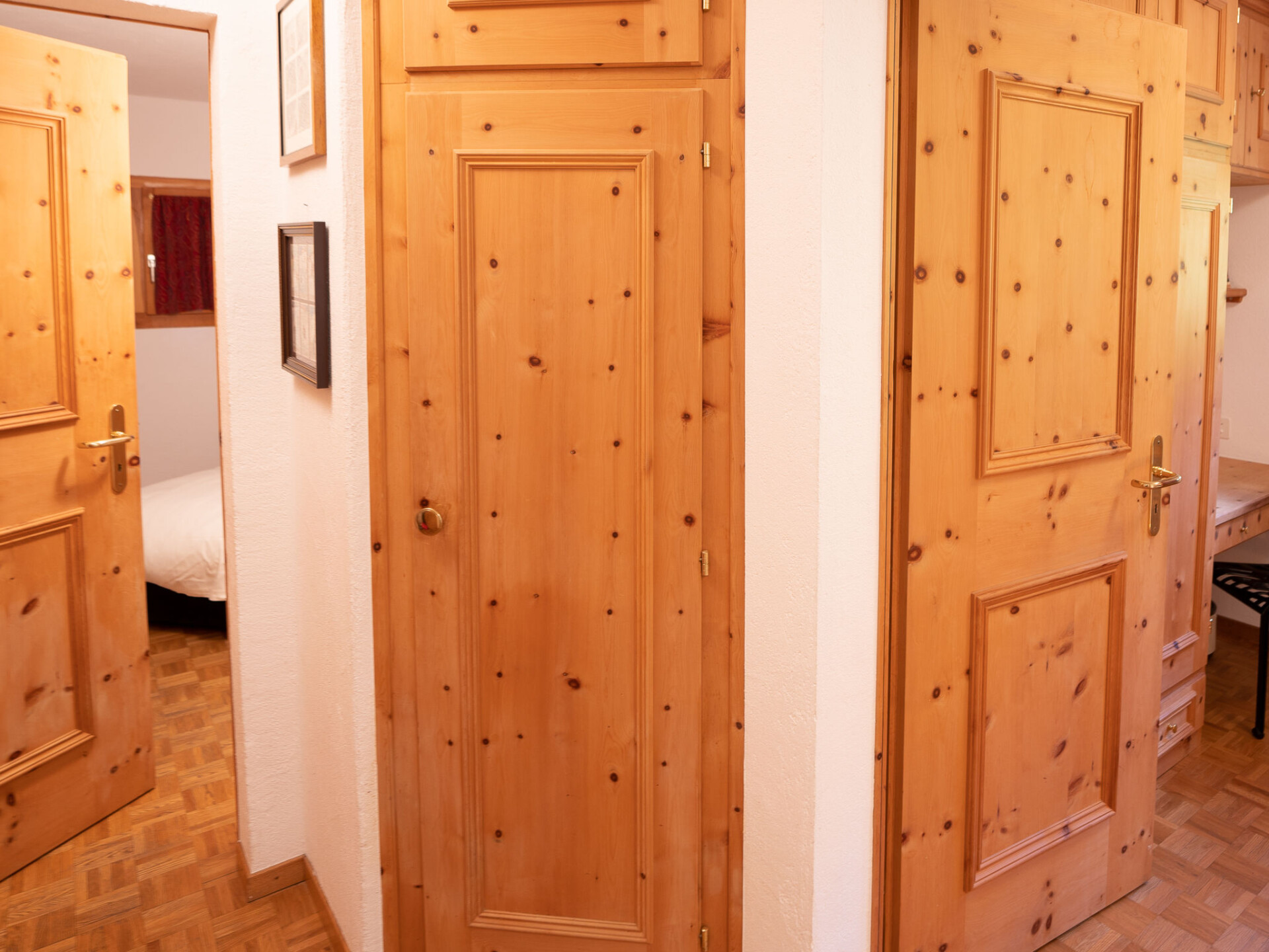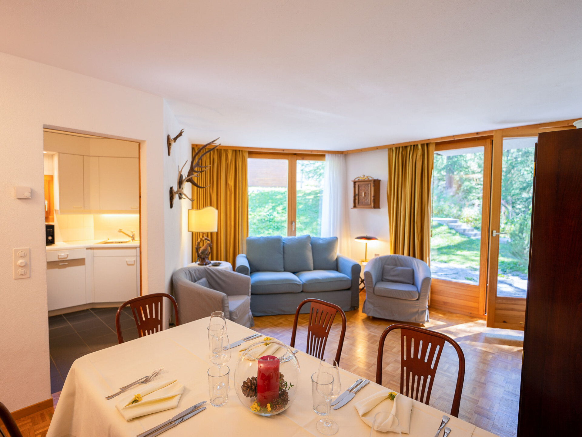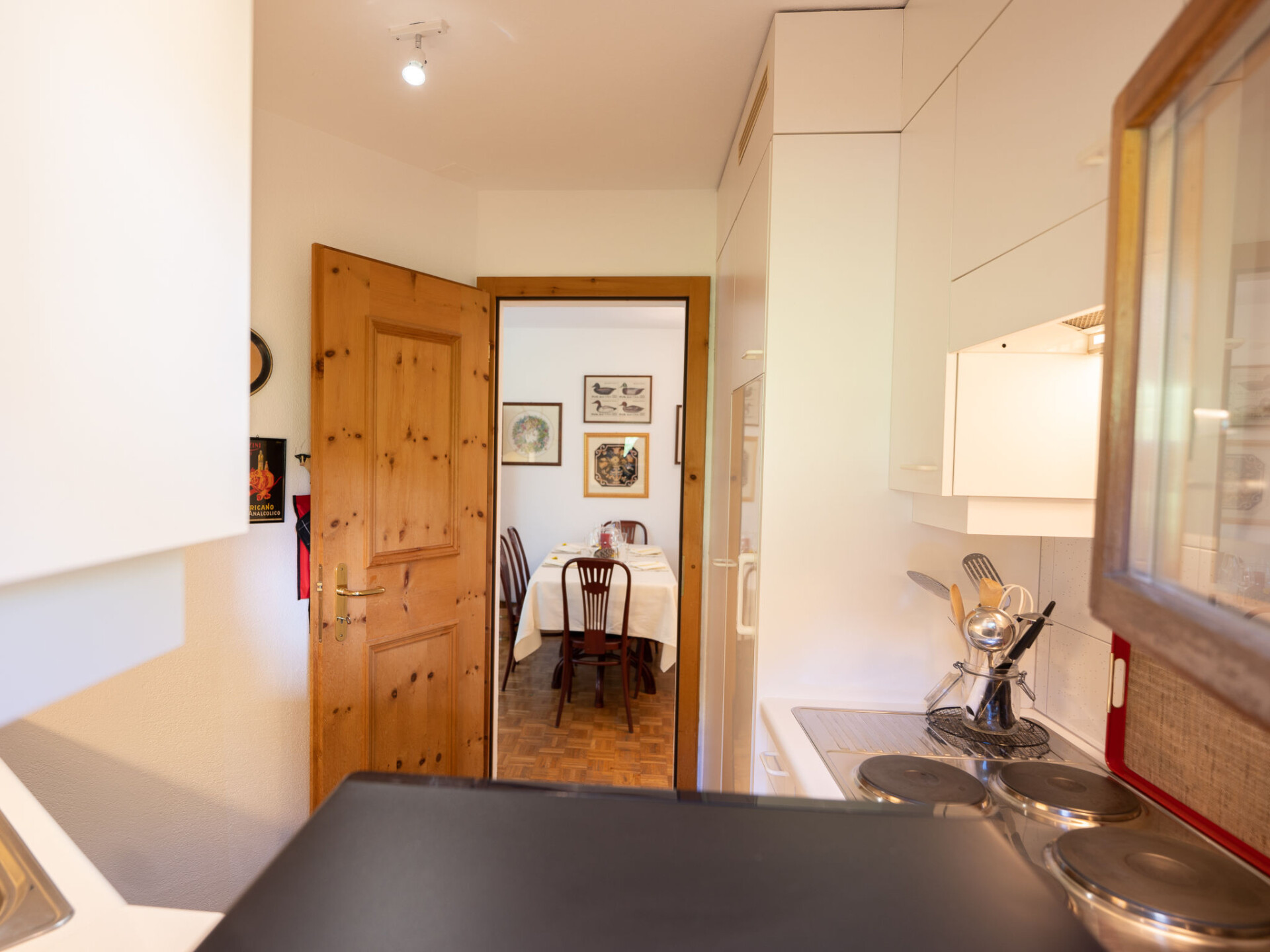 "Chesa Cresta", appartement 3-kamers 65 m2, op verhoogde begane grond. Het objekt is geschikt voor 2 volwassenen + 2 kinderen. Licht, smaakvol en gezellig ingericht: woon-/eetkamer met TV (Flatscreen TV). Uitgang naar het terras, op het zuidwesten. 1 kamer met 1 2-pers bed (1 x 170 cm, lengte 200 cm). 1 kleine kinderkamer met 1 x 2 stapelbedden (90 cm, lengte 190 cm). Kleine keuken (4-pits kookplaat, oven, afwasmachine, broodrooster, waterkoker, magnetron, elektrische koffiemachine, pads voor de koffiemachine (Nespresso) extra, raclette oven). Bad/WC, bidet, aparte WC. Verwarming. Houten vloeren. Terras. Terrasmeubelen, ligstoelen (2). Zeer mooi uitzicht op de bergen en de skipiste. Ter beschikking: haardroger. Internet (Internet (WiFi), gratis). Garage nr. 6 + 10 op het terrein (2 Auto's), hoogte 230 cm, breedte 295 cm. Niet rokers woning. Maximaal 1 huisdier/hond toegestaan. Geen lift.