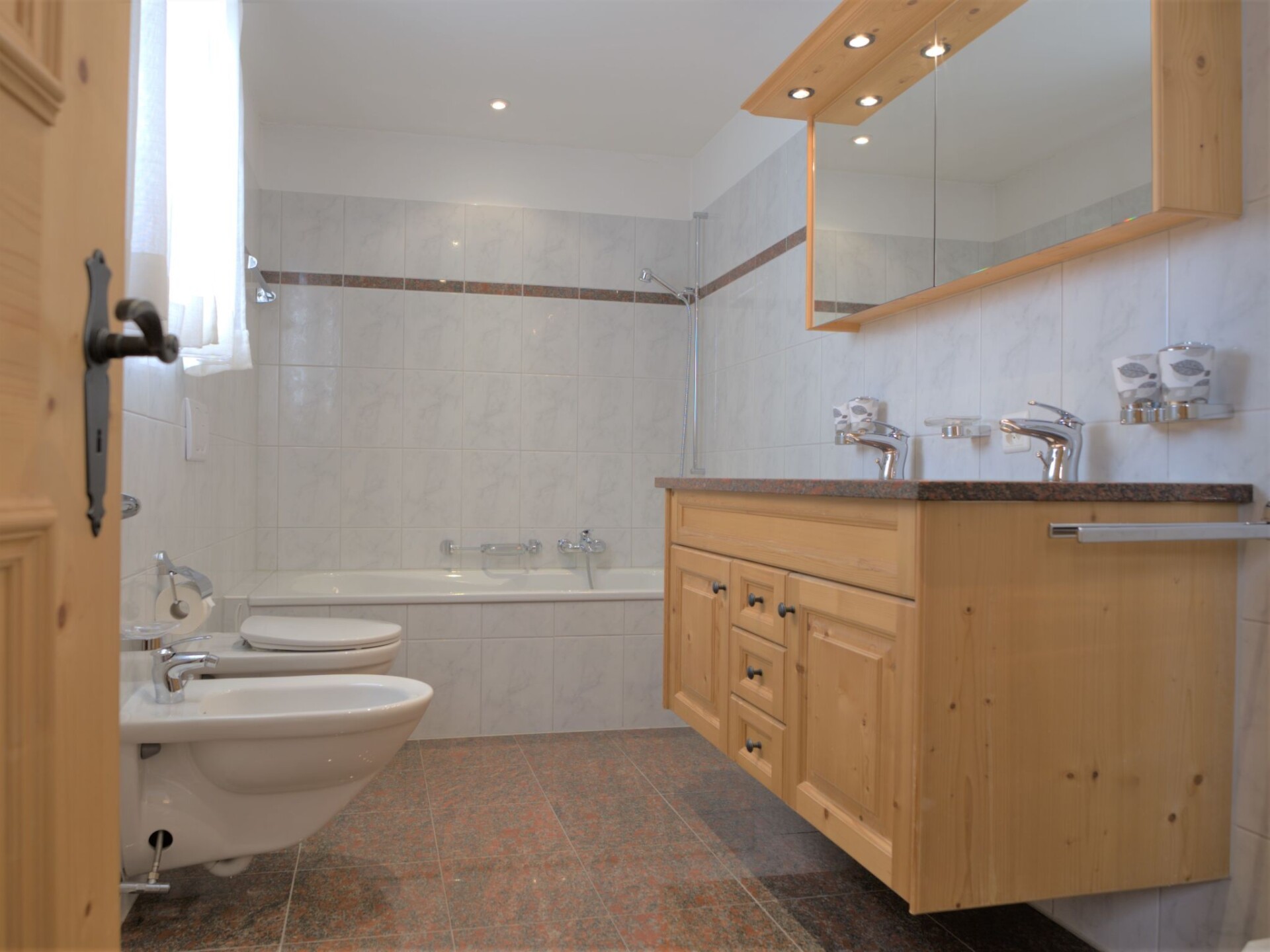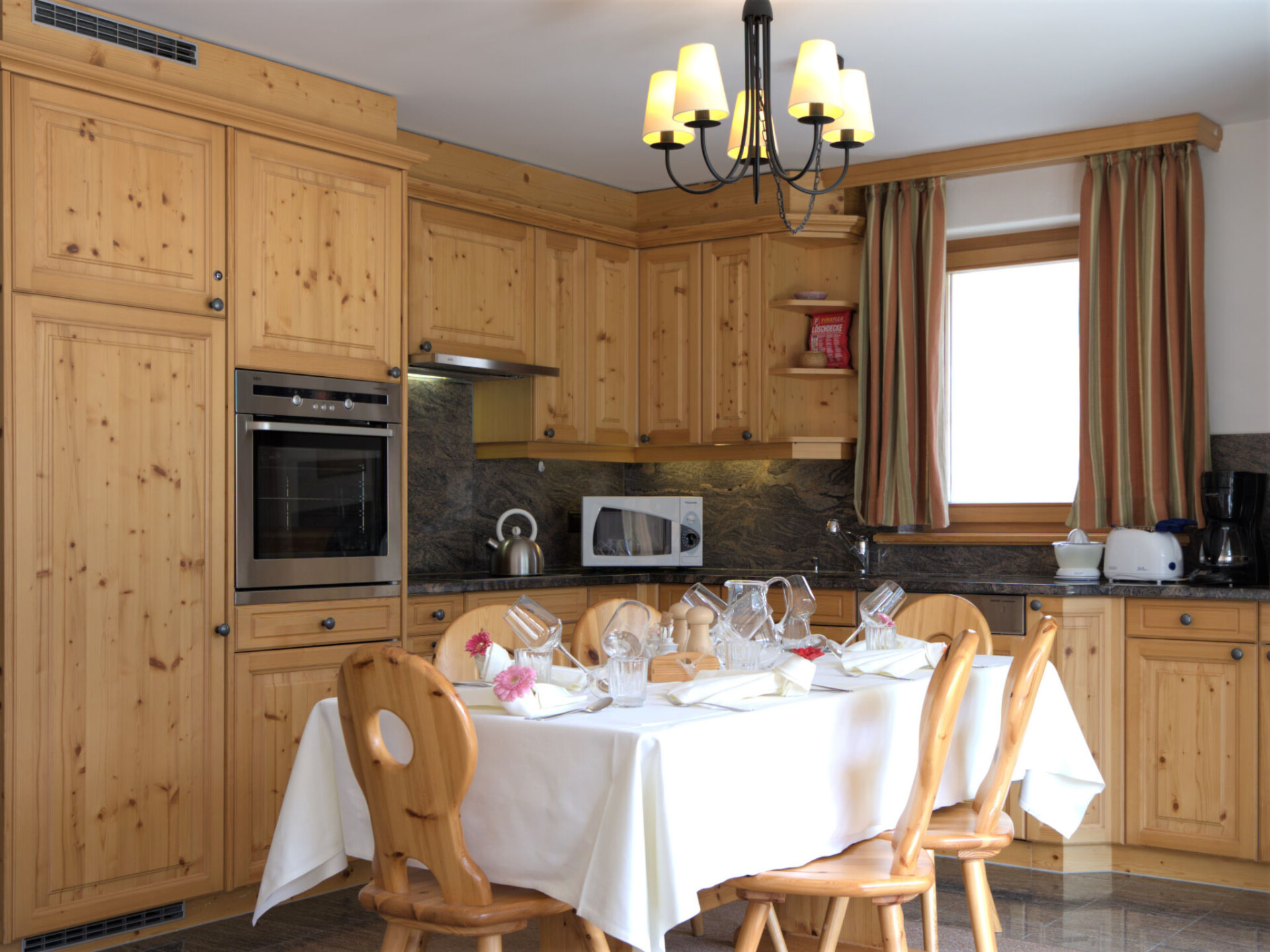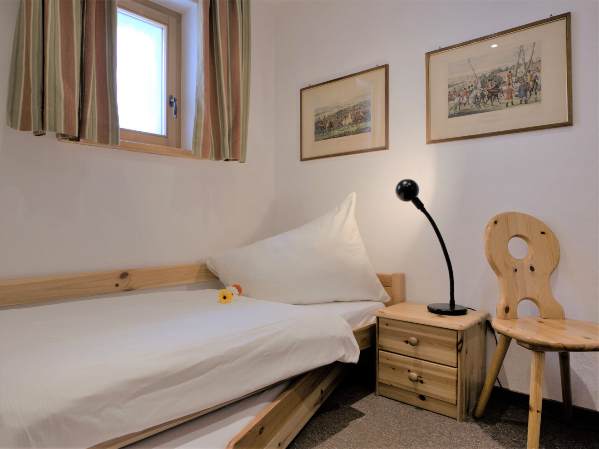 "Chesa Dal Luf B5", appartement 4-kamers 90 m2 op de 1e verdieping. Smaakvol en gezellig ingericht: woon-/eetkamer met TV en DVD. Uitgang naar het balkon, op het zuidoosten. 1 kleine kamer met 1 bed (80 cm, lengte 190 cm), 1 uitschuifbaar bed (lengte 180 cm). 1 kamer met 1 x 2 stapelbedden (80 cm, lengte 200 cm). 1 2-pers. kamer met 1 2-pers bed (2 x 80 cm, lengte 200 cm), bad/bidet/WC. Open keuken (afwasmachine, 3 keramische glas kookplaten, 1 inductiekookplaten, broodrooster, waterkoker, magnetron, elektrische koffiemachine, pads voor de koffiemachine (Nespresso) extra, raclette oven, fondue Set (kaas)) met eettafel. Douche/bidet/WC. Vloerverwarming. Groot balkon. Mooi uitzicht op de bergen. Ter beschikking: strijkijzer, haardroger. Internet (Internet (WiFi), gratis). Garage nr. 9, hoogte 250 cm, breedte 230 cm.
