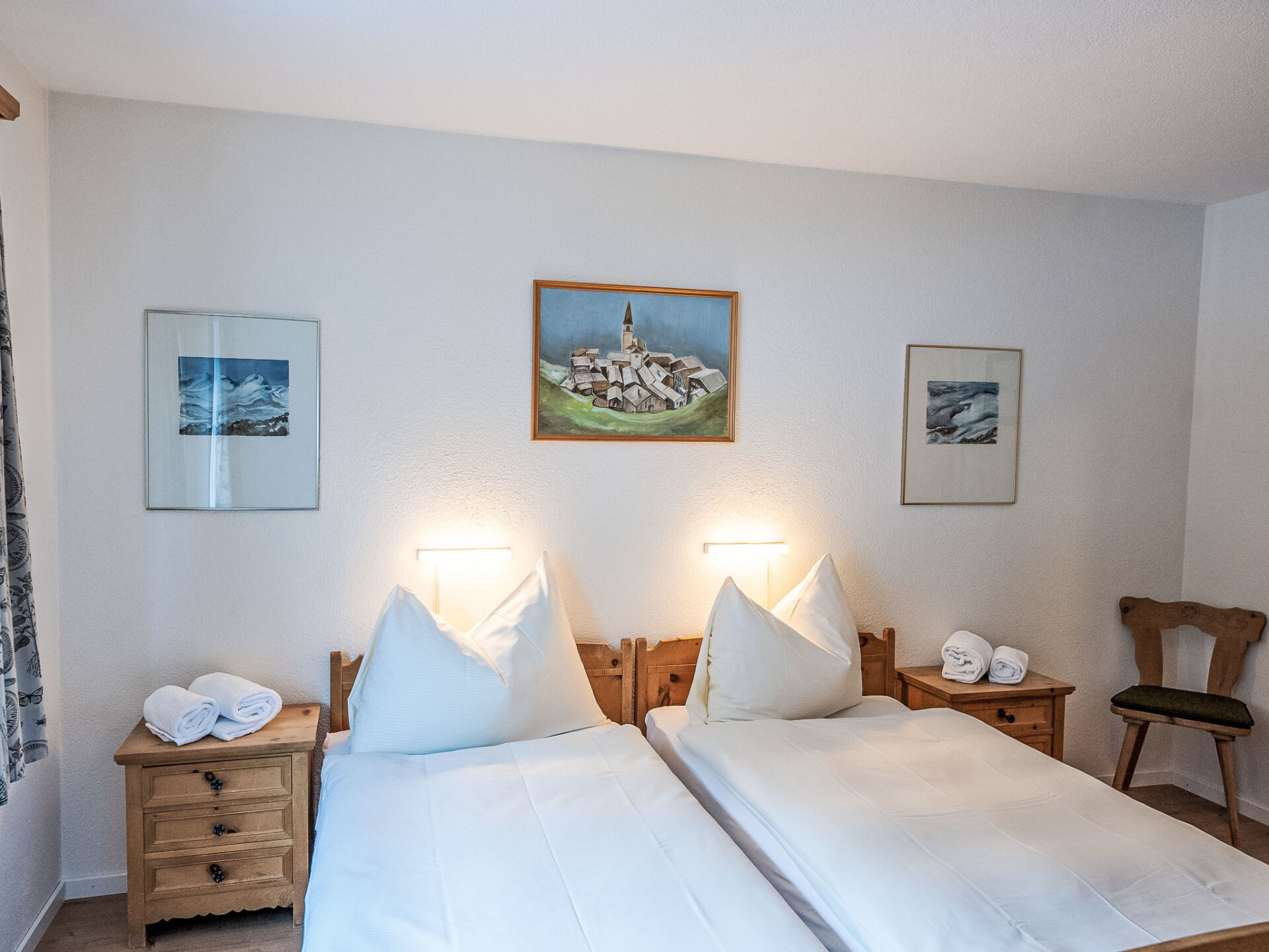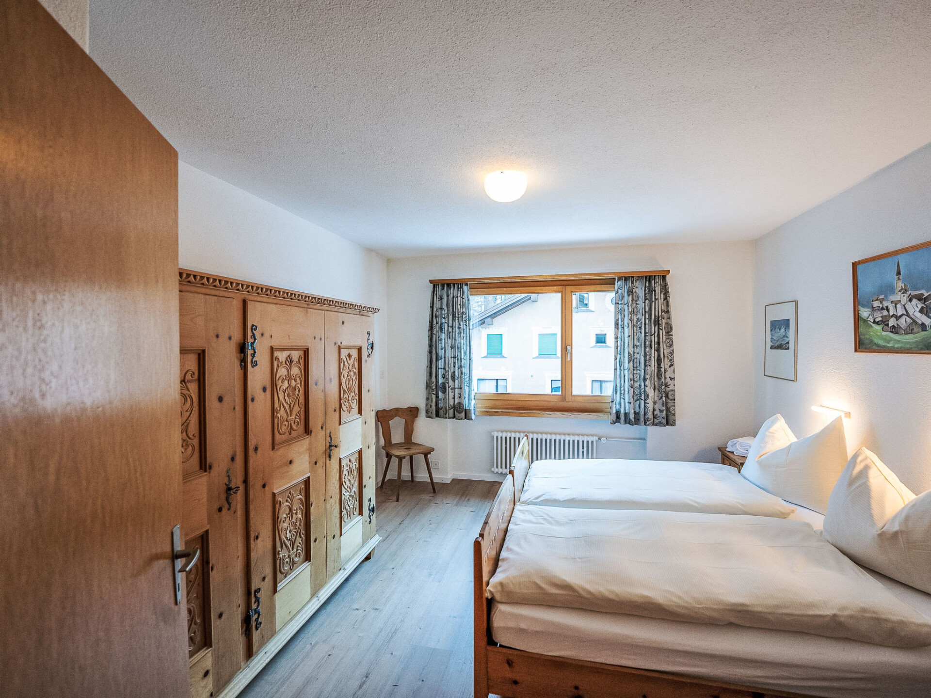 "Chesa Islas", appartement 3-kamers 80 m2 op de 3e verdieping. Mooi en gezellig ingericht: woonkamer met TV. Uitgang naar het balkon. 1 kamer met 2 bedden (90 cm, lengte 190 cm). 1 2-pers. kamer met 1 2-pers bed (2 x 90 cm, lengte 190 cm). Keuken (oven, afwasmachine, 4 keramische glas kookplaten, broodrooster, waterkoker, elektrische koffiemachine) met eettafel. Bad/douche/WC. Verwarming. Klein balkon 7 m2. Balkonmeubilair. Mooi uitzicht op de bergen en het landschap. Ter beschikking: strijkijzer, haardroger. Internet (WiFi, gratis). Parkeerplaats nr. 14. Geschikt voor families. Niet rokers woning, rookvrij huis.