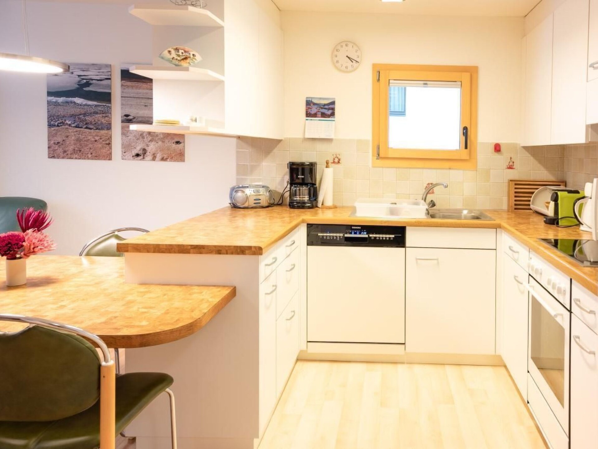 Spacious 2.5-room apartment on the first floor. Very quiet area. The cozy living room consists of a group of pad with enough seats. The apartment offers free WiFi, TV with over 300 channels. The bedroom has 2 single beds with a large built-in wardrobe with plenty of storage space. The separate kitchen with dining table for 4 people is equipped with a refrigerator with integrated freezer compartment, oven, stove, dishwasher, Nesspresso coffee machine. Shower / toilet are completely redesigned. In the entrance area there is a cloakroom with an adjacent cleaning cupboard. The floor in the entrance area is covered with ceramic tiles. Living room and bedroom with wooden parquet. Use of the outdoor parking spaces, ski and bike storage facilities are included in the rental price. Animals are not allowed. The apartment is designed for 4 people and has an area of 64 m2. The Furtschellas valley station can be reached on foot in 7 minutes, 5-10 minutes to the nearest shop. Cross-country ski run leads past the house. Child-friendly furnishings. Familyfriendly. Bikefriendly.Other leisure facilities: Nordic Walking Park with three signposted Nordic walking trails; HikingExcursion possibilities: