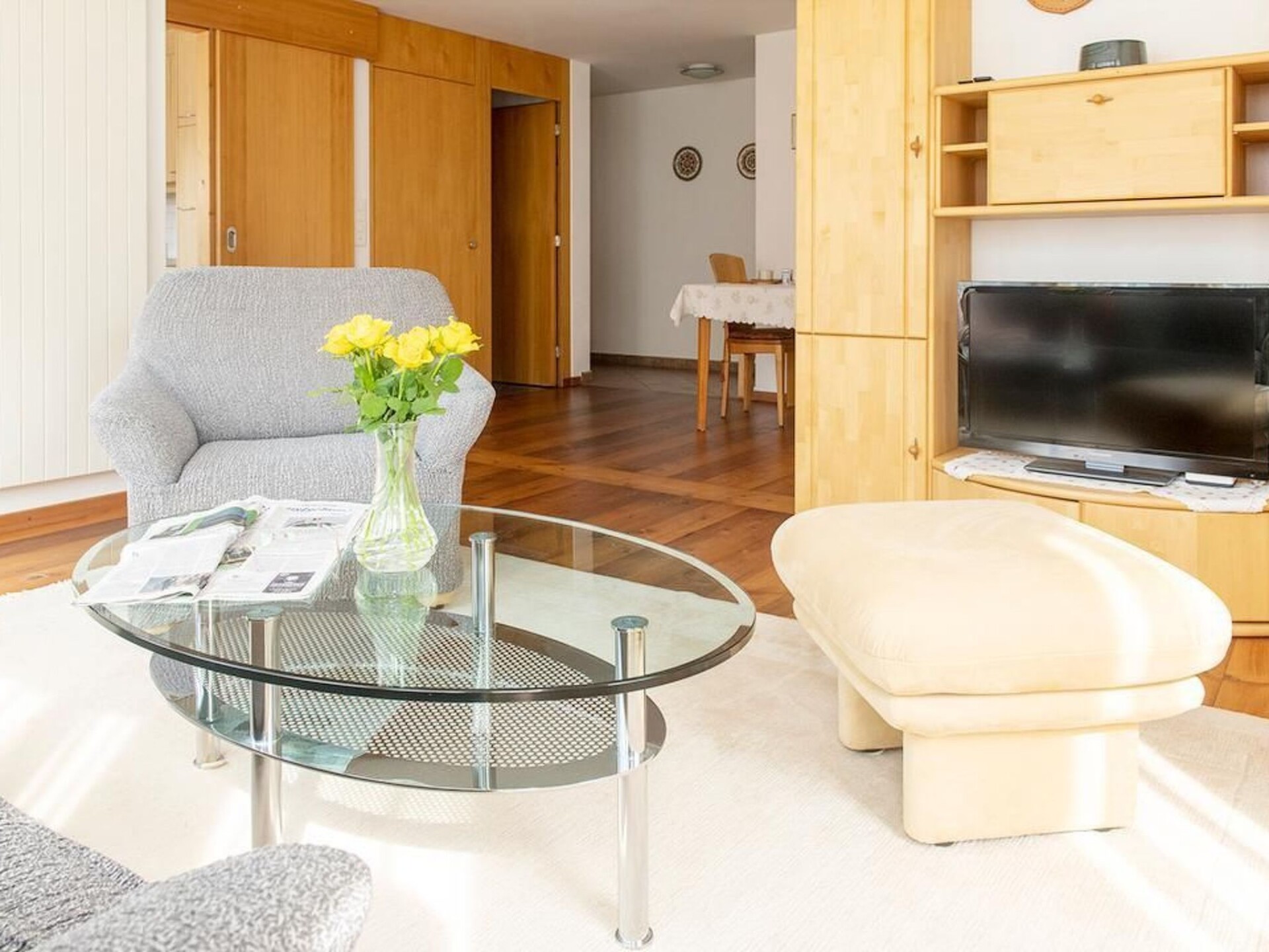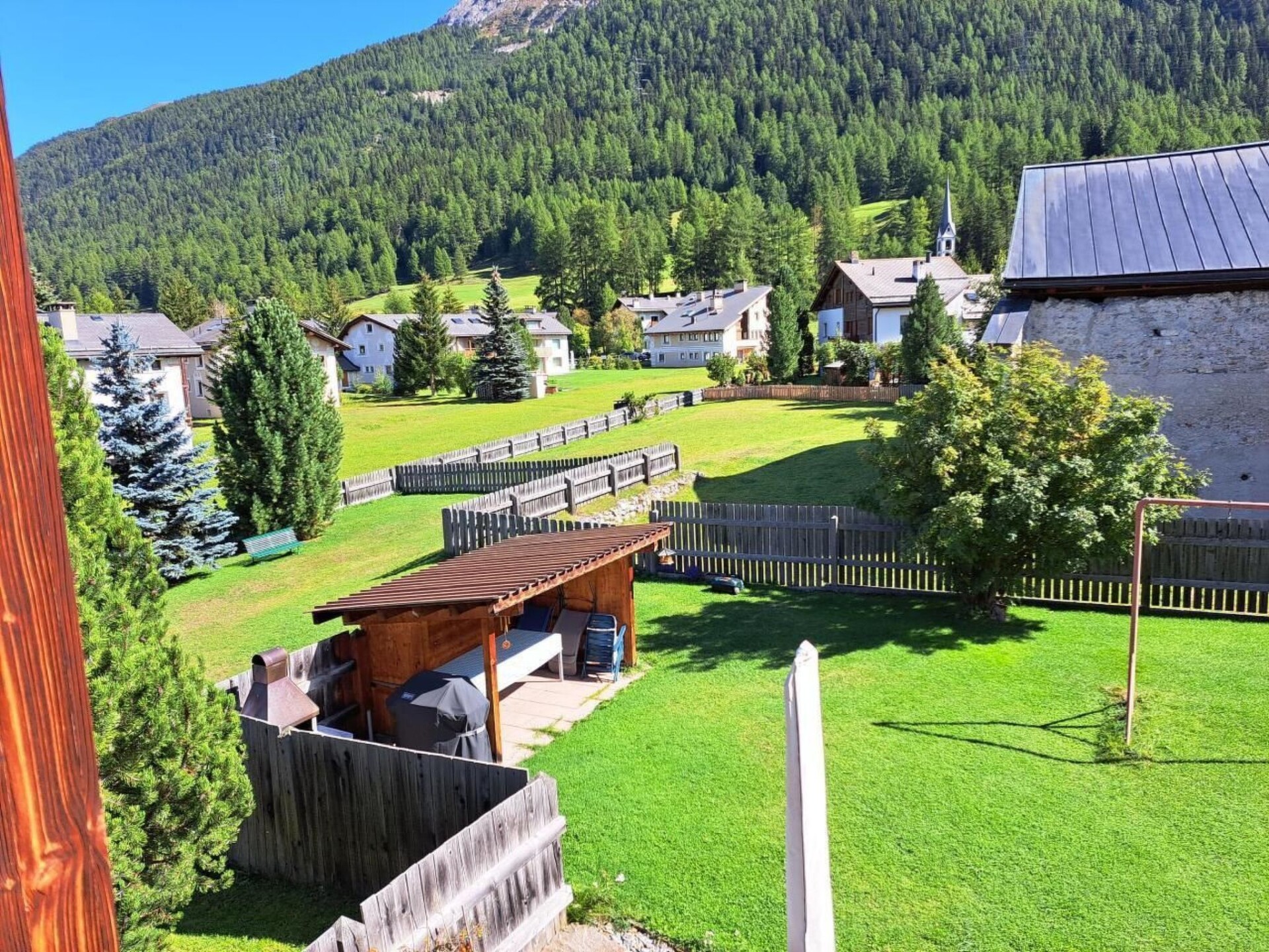 Discover your perfect holiday destination in the idyllic surroundings of La Punt Chamues-ch: a tastefully furnished 2.5-room flat (56 m²), located in the former hay barn of a traditional Engadine house. This charming retreat, which was completely renovated in 2000 and has been continuously maintained, promises a unique combination of tradition and modern comfort, nestled in the enchanting Engadine landscape.The interior of the flat leaves nothing to be desired. With free internet access, TV, radio and a dishwasher, it offers you all the amenities you need for a relaxing stay. A walk-in wardrobe in the bedroom, bedside tables and practical chairs for clothes storage provide additional comfort and organisation. A raclette oven and a cheese fondue set are available for culinary discoveries at home. The use of an in-house laundry and drying room as well as an additional storage room and bicycle room in the basement also bring convenience to your everyday life.The outdoor area perfectly complements the feel-good atmosphere. Enjoy the peace and sunshine in the large, beautifully landscaped seating area in the garden. A parking space in the adjoining underground car park and an outdoor parking space directly in front of the house provide easy parking for your vehicle. The flat is located on the garden side (south side) of the house and thus promises many sunny hours in a private atmosphere.The location of the house could not be more ideal: Centrally located, you can reach the cross-country ski trail and the bus stop on foot in just 3 minutes. The surrounding Engadine landscape offers unlimited possibilities for sports and leisure activities, be it hiking, mountain biking, skiing or golfing. Unique excursion options such as exploring the Upper Engadine lake district or having fun on the ski and snowboard slopes of the renowned ski resorts offer unforgettable experiences for every season. La Punt Chamues-ch itself radiates a special charm as a picturesque village rich in history and culture.Treat yourself to a holiday in this holiday flat, which offers you the ideal starting point for discovering the impressive Engadin at its best in both summer and winter. Let yourself be spoilt by tradition and breathtaking nature. Cordielmaing bainvgnidas e bainvgnieus in Engiadina - your dream holiday awaits you!