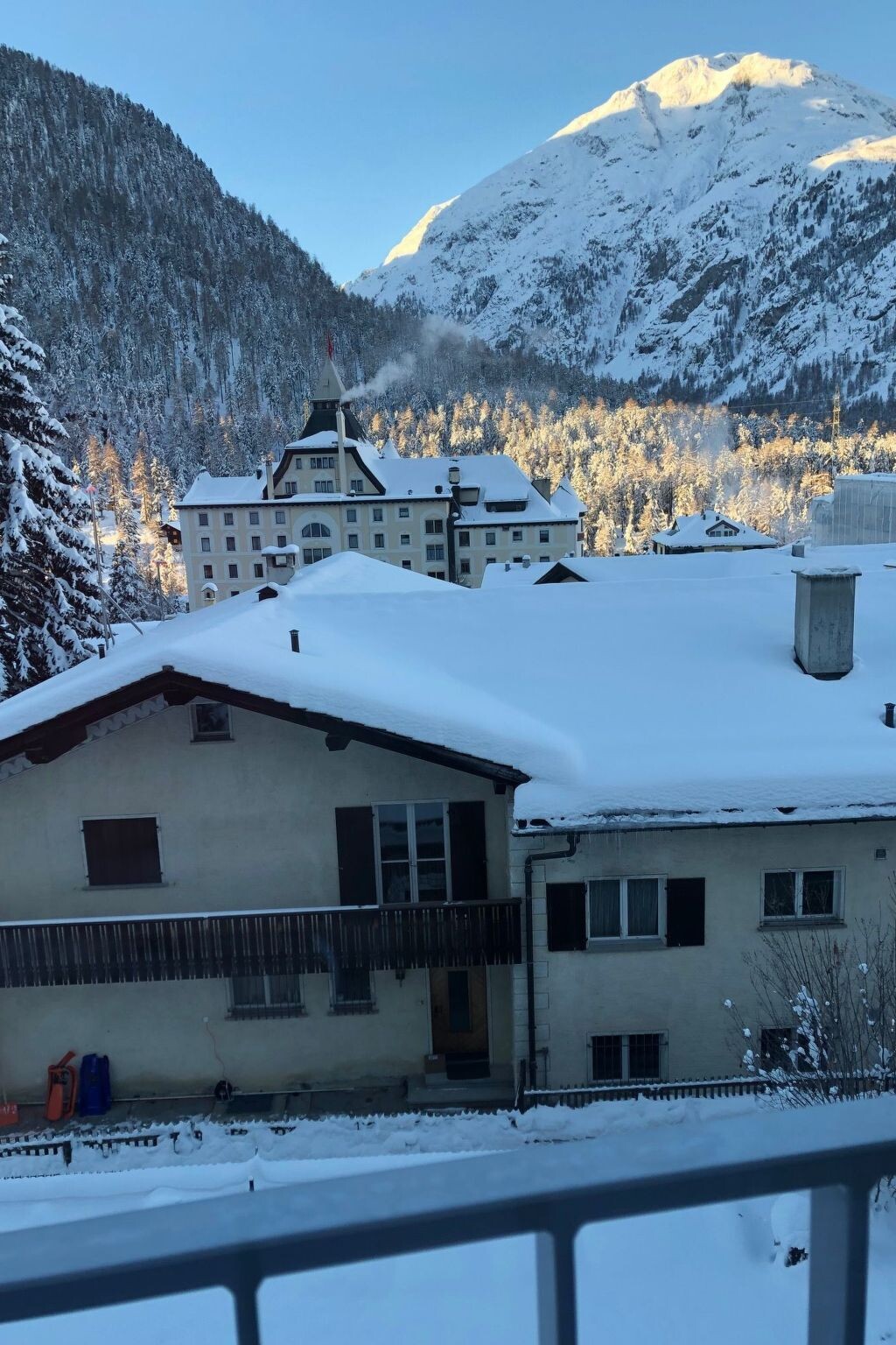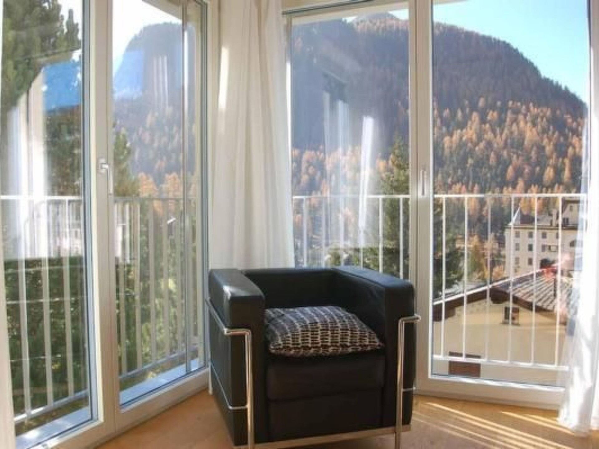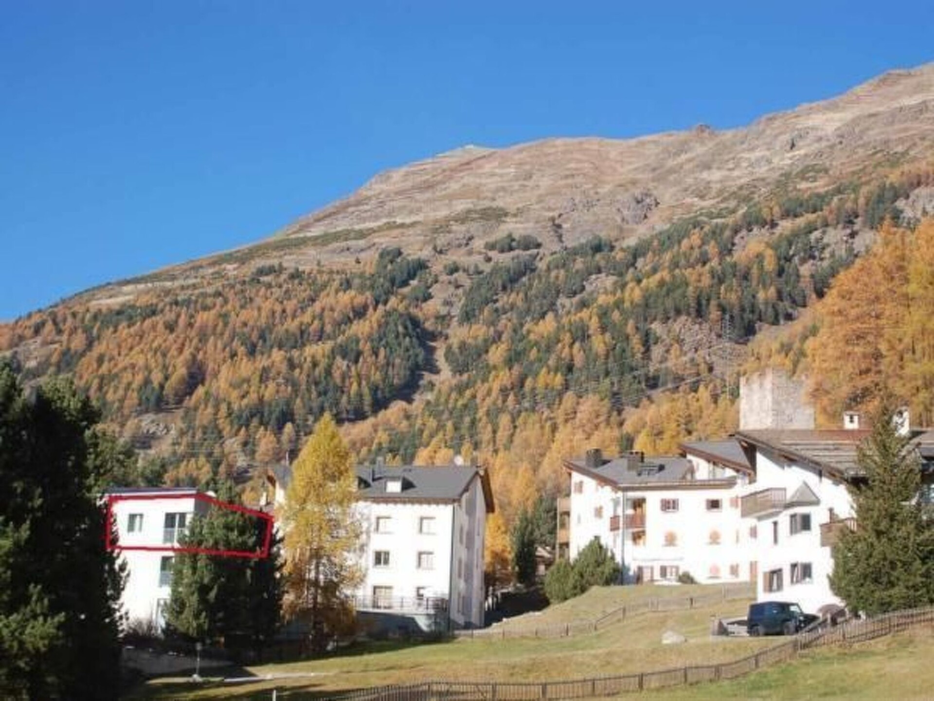 This beautiful 2.5-room flat (56 m²) is located on the second floor of a house whose top floor was newly built in 2011. Large windows, oiled oak parquet flooring and modern, harmonious furnishings create a warm, inviting atmosphere. The quiet location above the rooftops of Pontresina offers a wonderful view of Piz Rosatsch, Rosegtal, Morteratsch and Corviglia. Thanks to its south-facing orientation, the flat is flooded with light throughout the day....The location in the old village centre is ideal: the Sta. Maria church with its frescoes, the medieval Spaniola tower and the path to Alp Languard are in the immediate vicinity. The village centre with bus stop, post office, shopping facilities, hiking trails and lift is only about 300 metres away and can be reached on foot in a few minutes....In the living area, a leather sofa and an armchair invite you to relax. A bookshelf with a small "Fetch & Bring" library, a Smart TV (43"), a JVC TV, a Marshall Bluetooth speaker, DAB radio and WiFi provide entertainment and comfort....The open-plan kitchen is fully and very well equipped - including a Nespresso machine, Italian espresso machine (Bialetti), filter coffee machine, toaster, hand blender and fondue rechaud - and offers space to eat and linger at an oak table with four comfortable chairs. Nespresso capsules can be purchased from the nearby Coop....The bedroom has a double bed (1.60 m, two medium/firm mattresses), two duvets and a large wardrobe with plenty of storage space. The bathroom impresses with a spacious, walk-in and barrier-free shower....The flat has its own parking space directly in front of the house, a covered bicycle shelter in the garden, a ski and bicycle room in the cellar and shared use of the washing machine and tumble dryer by arrangement. The garden is available for use and invites you to relax outdoors. The house has been sustainably heated with geothermal energy since August 2025. The flat is a non-smoking apartment, pets are not allowed....Highlights summarised:- Very quiet, sunny location with view of Piz Rosatsch, Rosegtal, Morteratsch and Corviglia- Light-flooded rooms with oiled oak parquet flooring- Open, very well-equipped kitchen kitchen and cosy living area area- Spacious, walk-in shower (barrier-free)- Private car park directly in front of the house and covered bicycle shelter- Washing machine, tumble dryer and ski and bicycle room in the cellar for shared use- Shared use of the garden for linger- Sustainable heating with geothermal energy (since August 2025)- Location Pontresina, in the middle of an impressive mountain scenery and offers a wide range of activities diverse range of activities, further following:...Pontresina is surrounded by an impressive mountain backdrop and offers a wide range of activities at any time of year: In summer, 580 km of hiking trails, 400 km of mountain bike trails and the glittering lake landscape of the Upper Engadine await. In winter, 350 kilometres of pistes, 220 km of cross-country ski trails and snowshoe and winter hiking trails through the Val Roseg, Val Fex and Val Bever are a delight. Carriage rides and the Muottas Muragl toboggan run are also unforgettable experiences.Traditional Engadine houses and Belle Époque hotels characterise the townscape of Pontresina. The village combines alpine activity with tranquillity, style and enjoyment - ideal for anyone looking for nature, exercise and relaxation in an atmospheric setting.