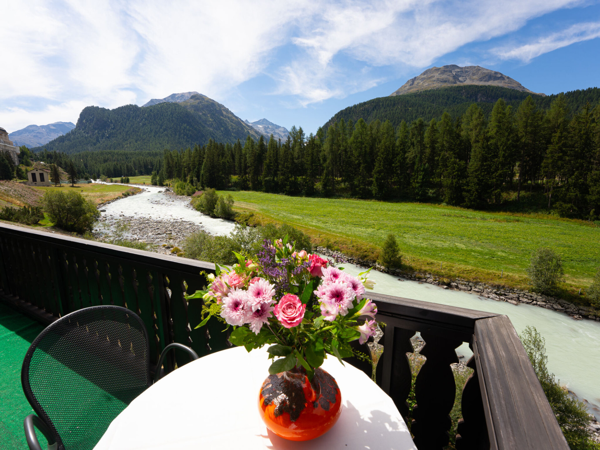 Pontresina 7 km van St. Moritz: Appartementencomplex "Chesa Misaun". Aan de rand van de plaats, rustige, zonnige ligging tegen een helling, 6 km van het meer, 20 m van de rivier, aan een doodlopende weg. In het huis: centrale verwarming, wasmachine, droger (voor medegebruik, extra). 30 m lange steile toegangsweg tot aan het huis. In de winter sneeuwkettingen aanbevolen, 's winters 4x4 aanbevolen. Trappenweg naar het huis. Eigen garage nr. 6 bij het huis op 300 m. Winkel, supermarkt 1.3 km, restaurant 600 m, bakkerij, café 1.3 km, fietsverhuur 1 km, bushalte "Pontresina, Sportpavillon" 500 m, treinstation 1.5 km, overdekt zwembad 1 km, meer St. Moritzer See 6 km. Golfterrein (18 holes) 4.3 km, surfschool 12 km, tennis 500 m, tennishal 7.4 km, midgetgolf 7.2 km, manege 2.7 km, wandelroutes, vanaf het huis, fietspad 500 m, kabelbaan 4.4 km, skilift 1.1 km, skiverhuur 1 km, skischool 1.4 km, kinderskischool 1.4 km, rodelbaan 1.9 km, langlaufloipe 200 m, ijsbaan 500 m, kinderspeelplaats 500 m. Attracties in de buurt: Museum Alpin 1.2 km, Kirche St. Maria 1.9 km, Alp-Schaukäserei Morteratsch (Sommer) 8 km, Segantini Museum in St. Moritz 7.3 km, Bernina Express UNESCO Welterbe. Bekende skigebieden kunnen gemakkelijk worden bereikt: Corviglia Piz Nair 4.4 km, Corvatsch - Furtschellas 13 km, Diavolezza - Lagalb 14 km. Bekende meren kunnen gemakkelijk worden bereikt: St. Moritzer See 6 km, Silvaplaner See 12 km, Silser See 16 km. Wandelgebied Stazerwald & Stazersee, Muottas Muragl, Val Roseg & Val Morteratsch. Geen lift.