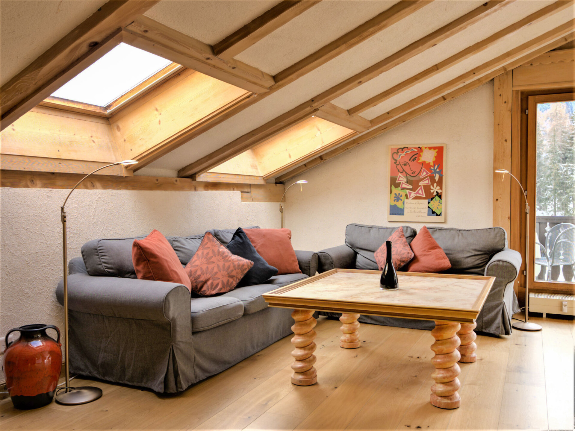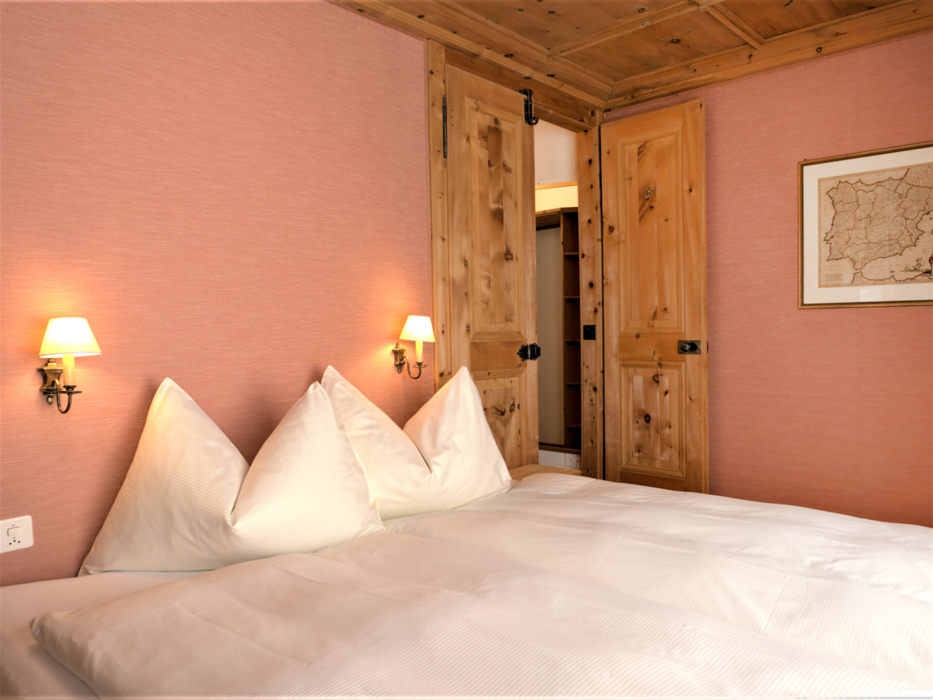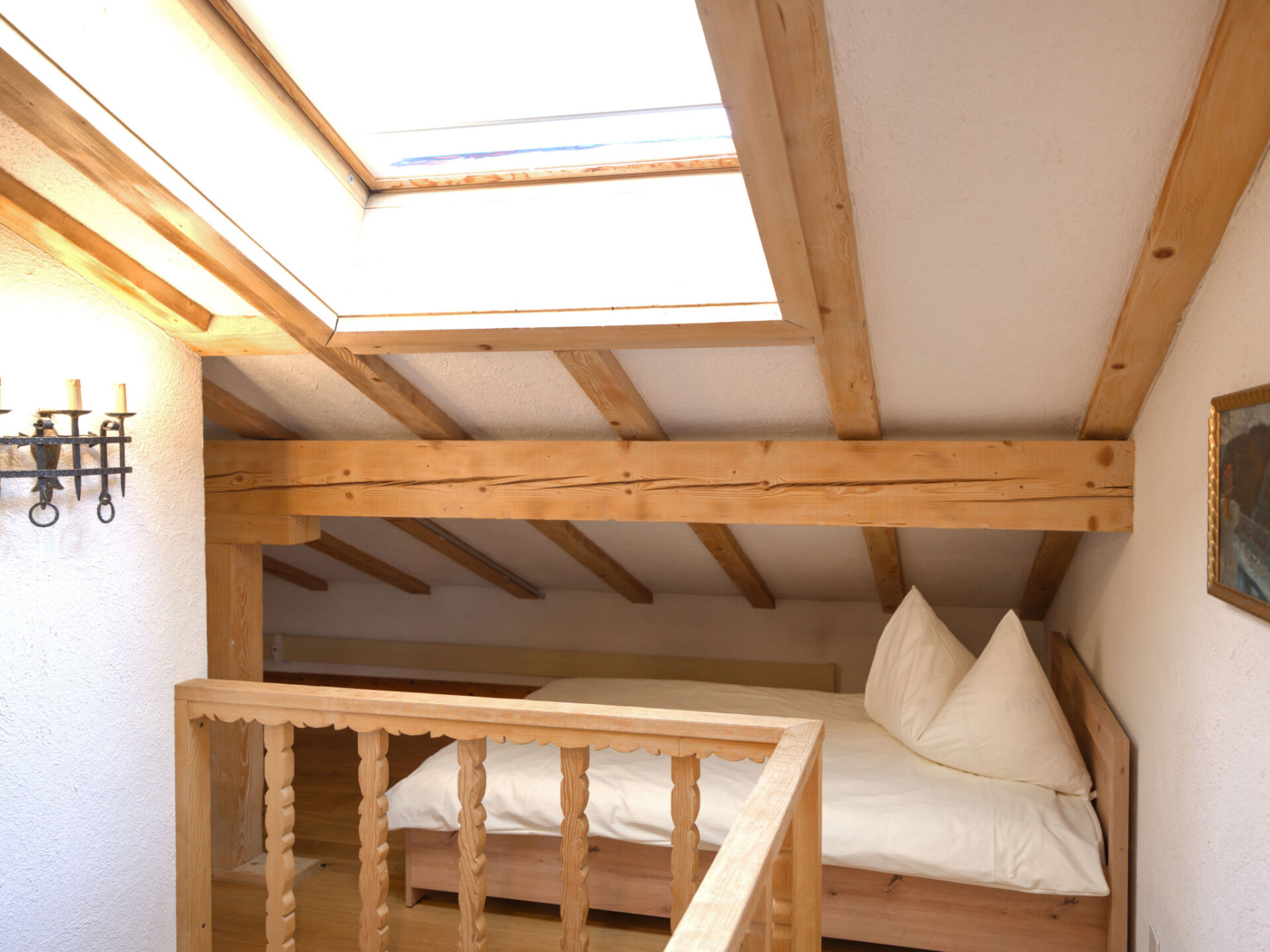 "Chesa Misaun", appartement 3-kamers 95 m2 op 2 verdiepingen, op de bovenste verdieping. Gezellig en met veel hout ingericht: groot woon-/eetkamer met open haard, eethoek en Sat-TV (Flatscreen TV), radio. Uitgang naar het balkon, op het zuiden. 1 kamer met 1 2-pers bed (2 x 90 cm, lengte 185 cm), bad/WC. Uitgang naar het balkon. Keuken (oven, afwasmachine, 4 keramische glas kookplaten, broodrooster, waterkoker, magnetron, diepvriezer, elektrische koffiemachine, pads voor de koffiemachine (Nespresso) extra, fondue Set (chinese, kaas)). Zolderverdieping: (steile trap) groot, open galerij met afgeschuinde daken met 1 bed (120 cm, lengte 200 cm), 1 2-pers bed (2 x 90 cm, lengte 200 cm), douche/WC. 2 kleine balkons. Terrasmeubelen (3). Zeer mooi uitzicht op de bergen, de rivier en het bos. Ter beschikking: strijkijzer, haardroger. Internet (Internet (WiFi), gratis). Garage nr. 6 op 300 m, hoogte 200 cm, breedte 225 cm. Maximaal 1 huisdier/hond toegestaan. In plaats van een afgesloten slaapkamer bevinden sommige slaapgedeeltes zich in een open ruimte (galerij, nis, etc.).