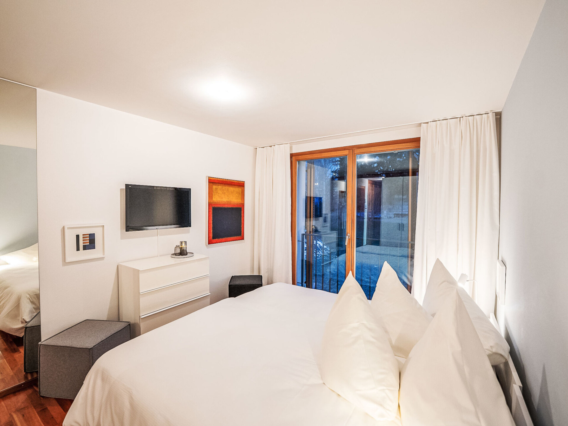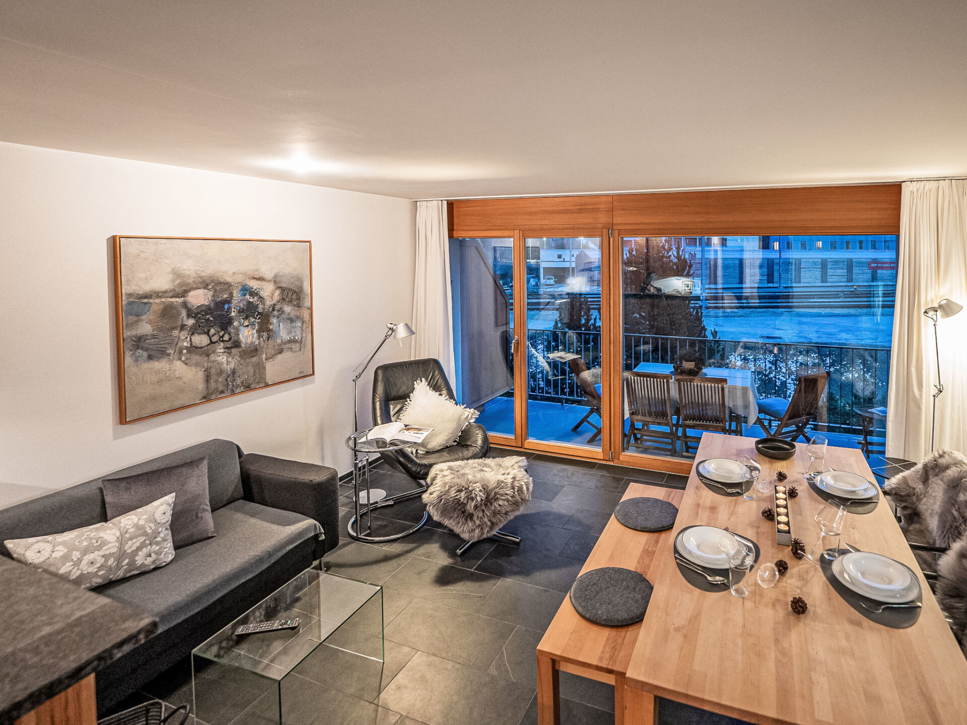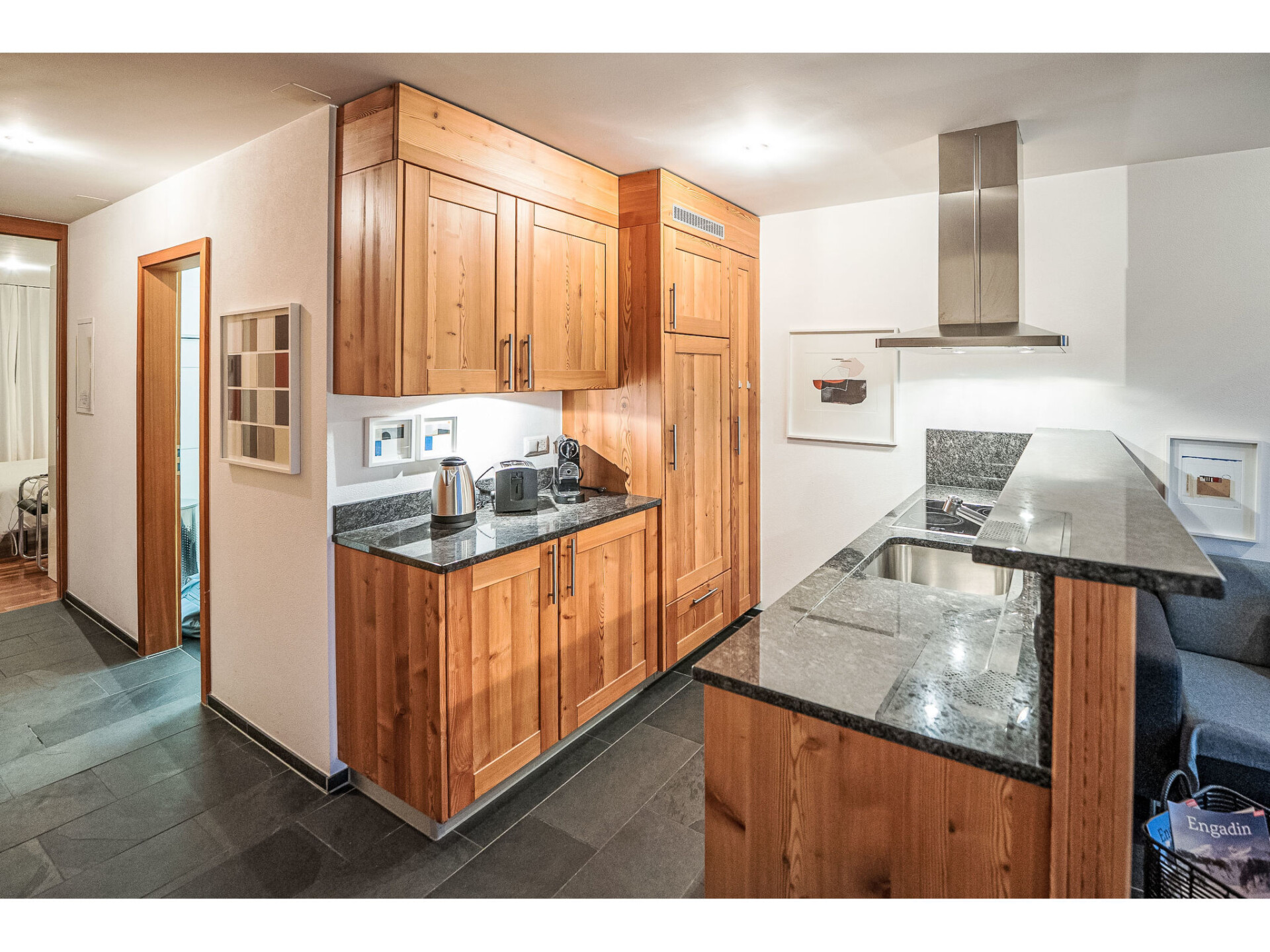 "Chesa Promulins", appartement 2-kamers 50 m2 op de 2e verdieping. Licht, comfortabel en mooi ingericht: woon-/eetkamer met panoramavenster met open haard en TV (Flatscreen TV). Uitgang naar het balkon. 1 2-pers. kamer met 1 2-pers bed (2 x 90 cm, lengte 200 cm), TV (Flatscreen TV). Open keuken (oven, afwasmachine, 4 keramische glas kookplaten, broodrooster, waterkoker, elektrische koffiemachine, pads voor de koffiemachine (Nespresso) extra, raclette oven, fondue Set (kaas)). Bad/WC. Verwarming. Balkon 6 m2. Balkonmeubilair. Uitzicht op de bergen en de plaats. Ter beschikking: haardroger. Internet (WiFi). Garage nr. 28 (1 Auto), hoogte 210 cm, breedte 230 cm. Niet rokers woning, rookvrij huis. Maximaal 2 huisdieren/honden toegestaan.