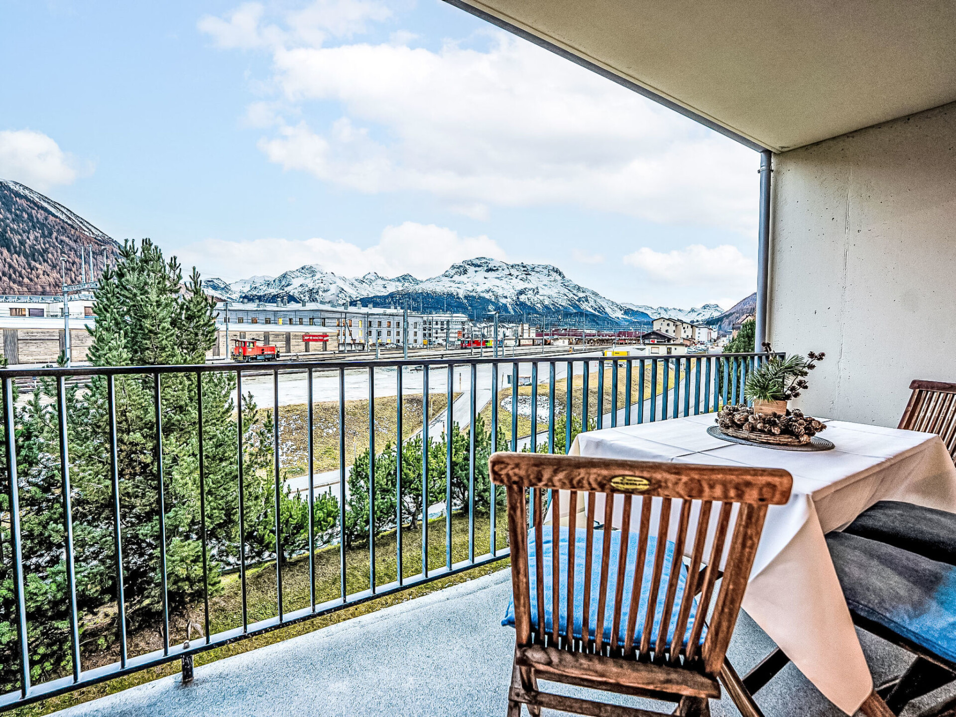 Samedan: Comfortabel appartementencomplex "Chesa Promulins", van 4 verdiepingen. Boven Bahnhof Samedan, in een woonwijk. In het huis: lift, berging voor ski's, wasmachine, droger (voor medegebruik, extra), droogruimte. Parkeerplaats, gemeenschappelijke garage. Levensmiddelenwinkel 500 m, bar, bushalte 400 m, treinstation "Samedan" 400 m. Tennishal 7 km, midgetgolf 6 km, manege 6 km, wandelroutes 500 m vanaf het huis, skilift 1 km, skischool 2.5 km, langlaufloipe 1 km, ijsbaan 1.5 km. Attracties in de buurt: Chesa Planta in Samedan 800 m, Segantini Museum St. Moritz 6 km, Nietsche Haus in Sils-Maria 16 km, Olympic Bob Run St. Moritz 5.5 km. Bekende skigebieden kunnen gemakkelijk worden bereikt: Coviglia - Piz Nair 2.6 km, Corvatsch - Furtschellas 14 km, Diavolezza - Lagalb 18 km. Bekende meren kunnen gemakkelijk worden bereikt: St. Moritzer See 7 km, Silvaplana See 13 km, Silser See 17 km. Wandelgebied Corviglia - Piz Nair, Muottas Muragl, Val Bever & Val Rosegg.