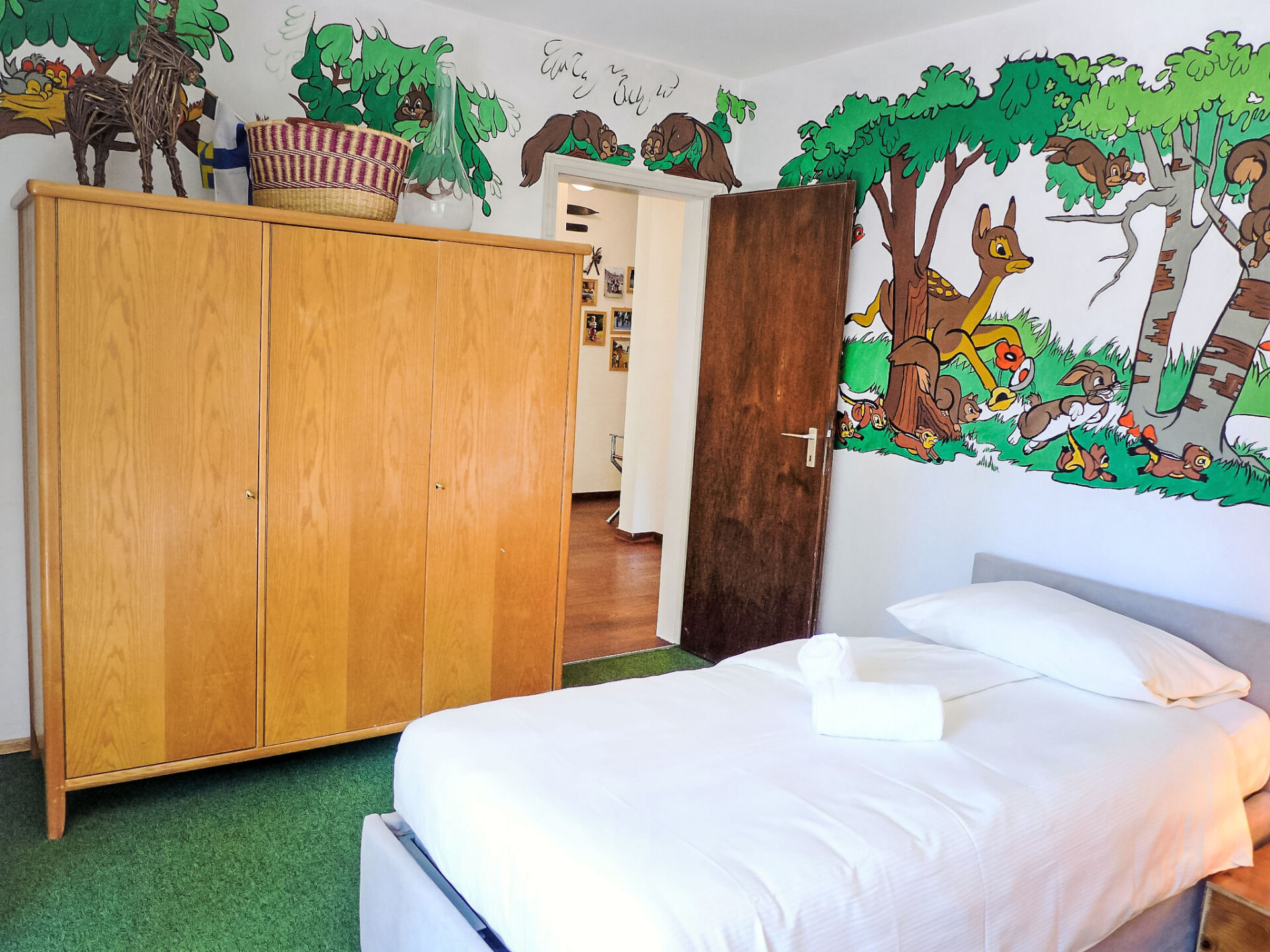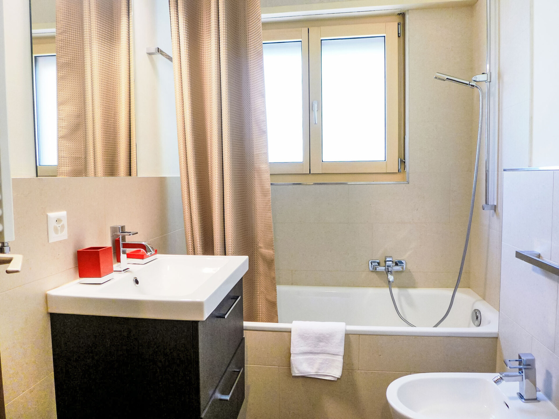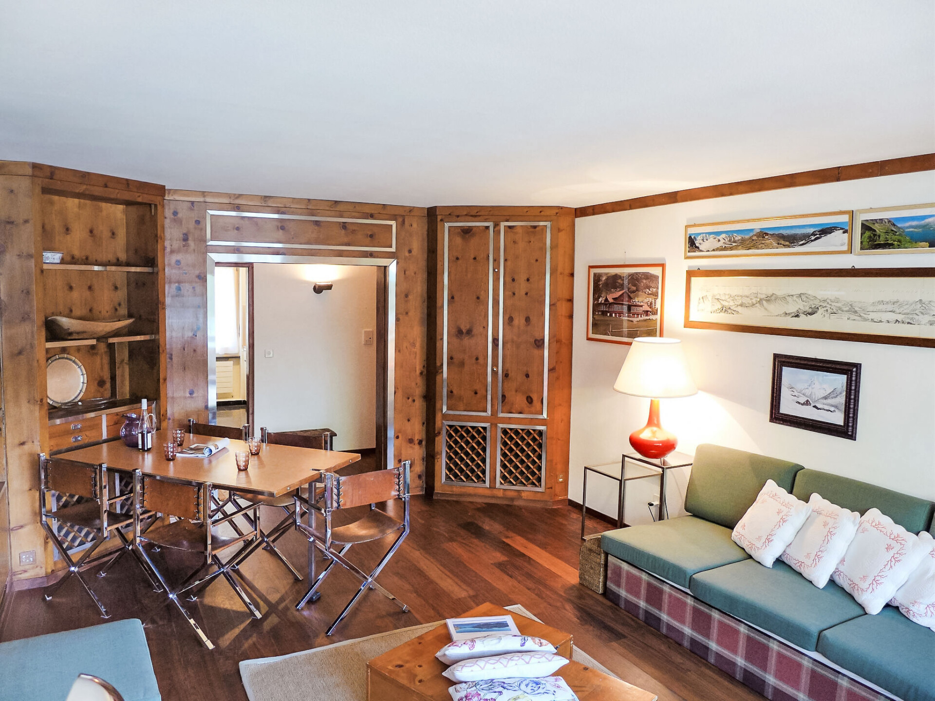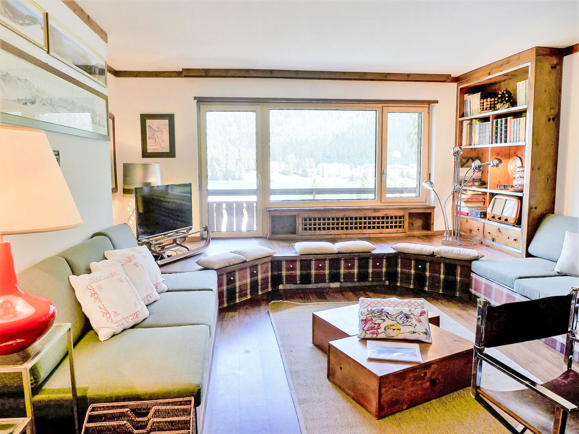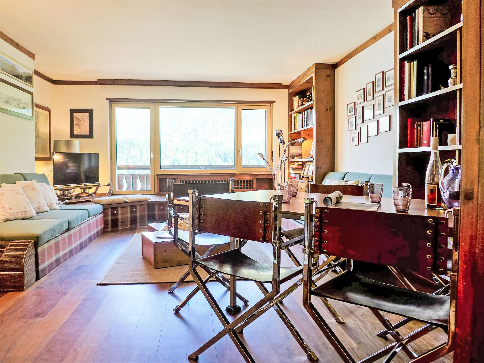 "Chesa Sonnalpine B 46", appartement 5-kamers 105 m2 op de 4e verdieping. Gedeeltelijk gerenoveerd in 2018, doelmatig ingericht: woon-/eetkamer met TV en radio. Uitgang naar het balkon, op het zuidoosten. 1 2-pers. kamer met 2 bedden (90 cm, lengte 190 cm). 1 kamer met 2 bedden (80 cm, lengte 190 cm). 1 kinderkamer met 2 bedden (90 cm, lengte 200 cm), 1 uitschuifbaar bed. Uitgang naar het balkon. 1 kamer met 1 2-pers bed (1 x 160 cm, lengte 190 cm). Kleine keuken 8 m2 (oven, afwasmachine, 4 inductiekookplaten, broodrooster, waterkoker, diepvriezer, elektrische koffiemachine, pads voor de koffiemachine (Nespresso) extra, fondue Set (chinese, kaas)). Bad/bidet/WC, aparte WC, bad/douche/WC. 2 balkons. Mooi uitzicht op het meer en de bergen. Ter beschikking: haardroger. Internet (WiFi, gratis). Garage nr. 46 (1 Auto), hoogte 183 cm, breedte 240 cm. Niet rokers woning. Maximaal 2 huisdieren/honden toegestaan. De garageplaats is gelimiteerd in hoogte en breedte.