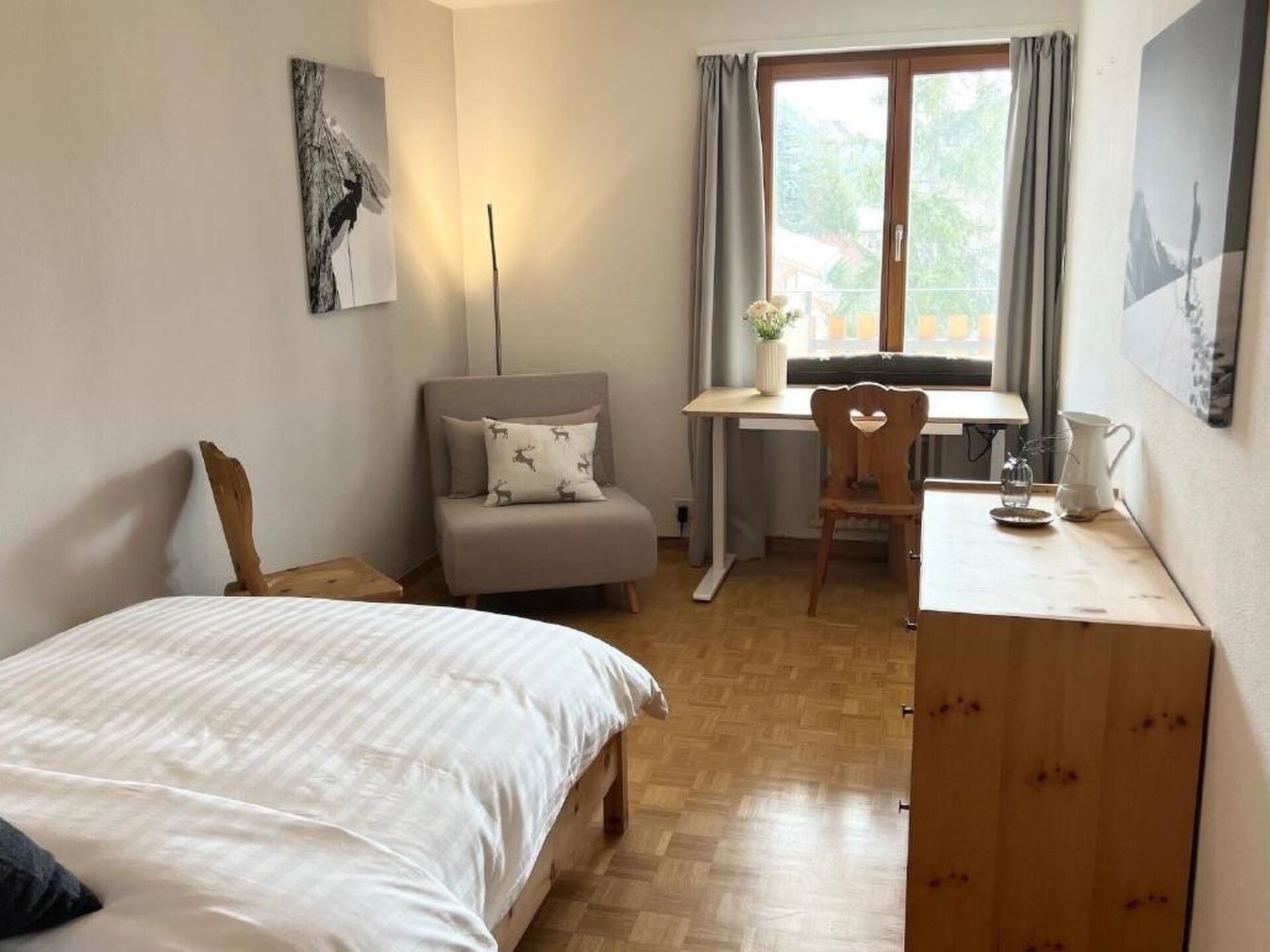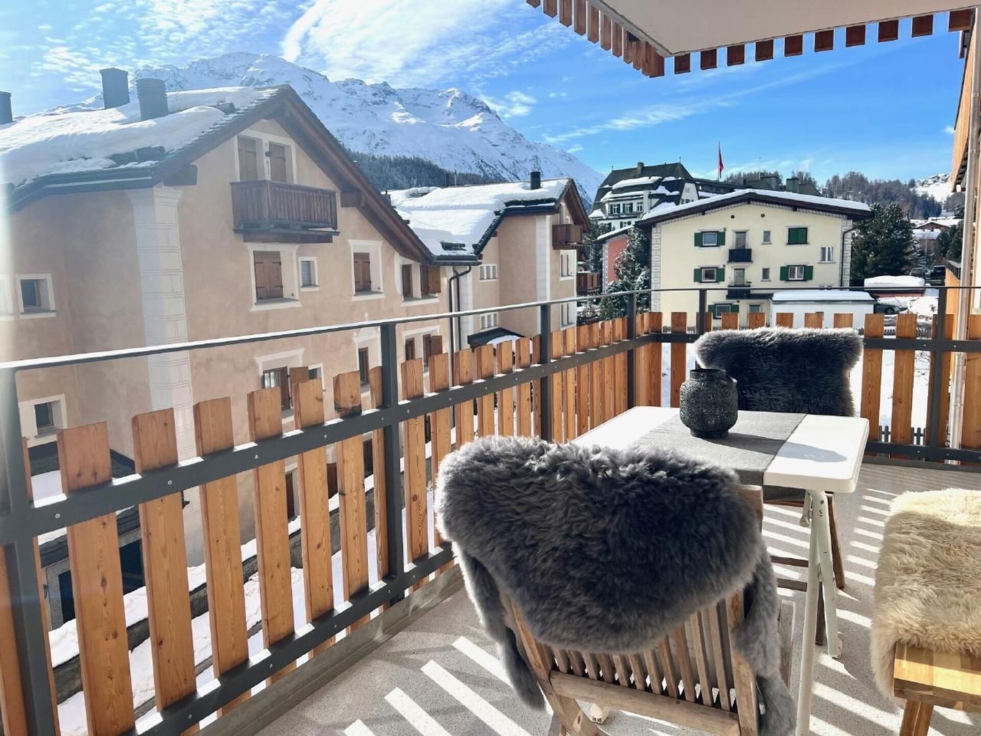 LOCATION Chesa Villasimius is situated in a quiet location directly opposite Celerina railway station. The flat is within walking distance of the Marguns/Corviglila mountain railway, the ski school and the extensive network of cross-country ski trails.The perfect starting point for various summer and winter activities.For those who want to combine holidays and work: with 5G Internet and an electrically adjustable standing desk, this is also an ideal flat for working from home. Various shops and restaurants are in the immediate vicinity (Volg and bakery 250 m, Coop 300 m). FLAT DESCRIPTION Bright 3 ½ room flat on the 1st floor with approx. 75m² living space.South-facing, newly furnished living/dining room with panoramic window and view of the church tower and the surrounding mountains. Marshall Bluethooth loudspeaker, SAT-TV.Covered balcony with garden table, wooden bench and chairs.Well-equipped separate kitchen, incl. Nespresso coffee machine, kettle, toaster, blender, raclette, fondue Bedroom 1: New comfortable double bed 160x200 cm, three-door Swiss stone pine wardrobe and Swiss stone pine chest of drawers Bedroom 2: New comfortable Swiss stone pine bed 120x200 cm (can be used as a single or double bed), armchair bed with comfortable topper 80x200 cm, Swiss stone pine wardrobe and Swiss stone pine chest of drawers, electrically height-adjustable office desk (can be used as a high table), WLAN 5G routerBathroom: bathtub with shower partition, bidet, WC and spacious washbasin, built-in cupboards and drawers. Ski boot room and ski compartment for shared use. Single garage (door dimensions W 2.35m, H 1.95m, garage length 5.80m)Iron, clothes horse and hoover available in the flat. Outdoor car park included. Pets are not allowed. Non-smoking flat. The cosy flat is suitable for up to four people.Other sports and leisure activities: Mountain scooter: signposted downhill route for mountain scooters Marguns-Celerina. Hire incl. helmet directly at the Marguns mountain station.Excursion possibilities: These mountains. These lakes. This light! On 580 kilometres of hiking trails across all mountains or by mountain bike on 400 kilometres of enjoyable trails: the Upper Engadine offers a first-class network of hiking trails and mountain bike trails amidst the pristine mountain world and the inspiring Upper Engadine lake district. The four flow trails on the Corviglia provide the right flow. The lakes of the Upper Engadin are also popular with sports enthusiasts. Kitesurfing, sailing, windsurfing, stand-up paddling: the possibilities are almost endless. The expanse of the inspiring high valley can be experienced in a particularly impressive way on the two 18-hole golf courses in Samedan and Zuoz. And in addition to the wide range of sporting activities on offer, there are also first-class cultural attractions such as a visit to the museum or the numerous art galleries in the various villages.In winter, 350 kilometres of the finest pistes in the Corviglia, Corvatsch and Diavolezza ski areas and the family-friendly Zuoz invite you to enjoy true skiing and snowboarding fun. Cross-country skiers will find over 220 kilometres of groomed trails in the Upper Engadine and the side valleys. The winter hiking trails and cross-country ski trails on the frozen Upper Engadin lakes shine with light, sunshine and vastness in the midst of an inspiring mountain world. Those who want to enjoy the tranquillity and beauty of the snow-covered forests can hike along the 150 km of winter hiking trails in the side valleys of Val Roseg, Val Fex or Val Bever, while those who prefer an overview can enjoy breathtaking views on the panoramic hiking trails high above the lakes on Muottas Muragl.Families can enjoy the Engadin sunshine on a carriage ride into Val Roseg or Val Fex, or toboggan down into the valley on the 4.2 km long, winding Muottas Muragl toboggan run.Welcome to the Engadin.Other bedroom furnishings (bedroom 1): Swiss stone pine wardrobe, Swiss stone pine chest of drawers, mirror, clothes rackOther kitchen equipment (kitchen1):BlenderKitchen scalesRacelette ovenFondue setSports facilities in the surrounding area: mountaineering, ice skating, golf course, climbing, mountain biking, cycling, tobogganing, alpine skiing, cross-country skiing, tennisVillage description:Celerina - The village with the charming village centreThe charming neighbouring village of St. Moritz has more hours of sunshine than any other place in the Engadin.The fact that Celerina shines in a special light is also thanks to the alpine village centre with its Engadine houses. The mountain railway to Marguns, which leads directly to the glamorous mountain and ski area of St. Moritz Corviglia, is located in the immediate vicinity, as is the extensive network of cross-country ski trails in the Upper Engadine. In summer, contrasting forest and meadow paths lead to one of the most romantic mountain and bathing lakes in the Upper Engadine: the Lej da Staz. 447570