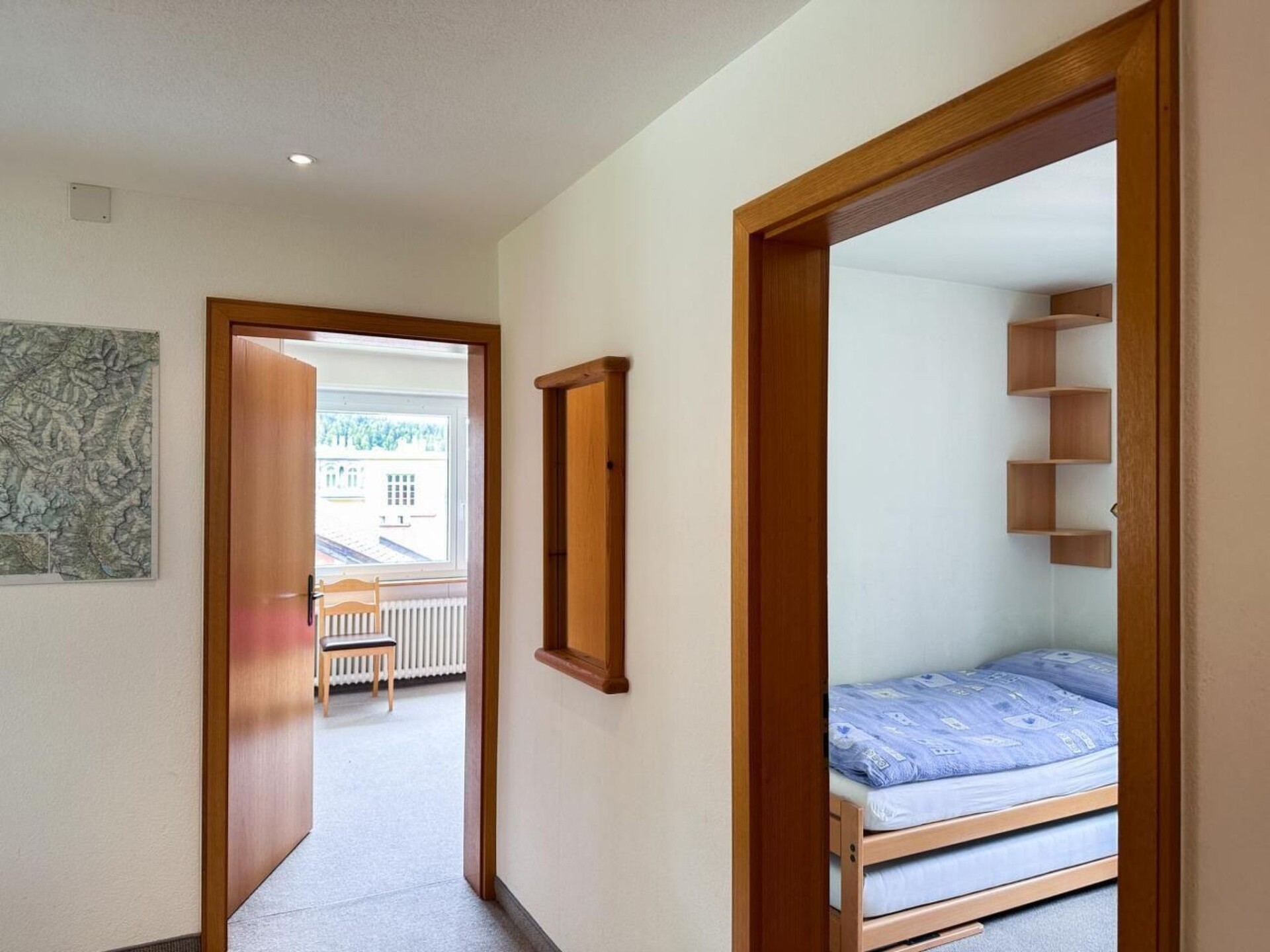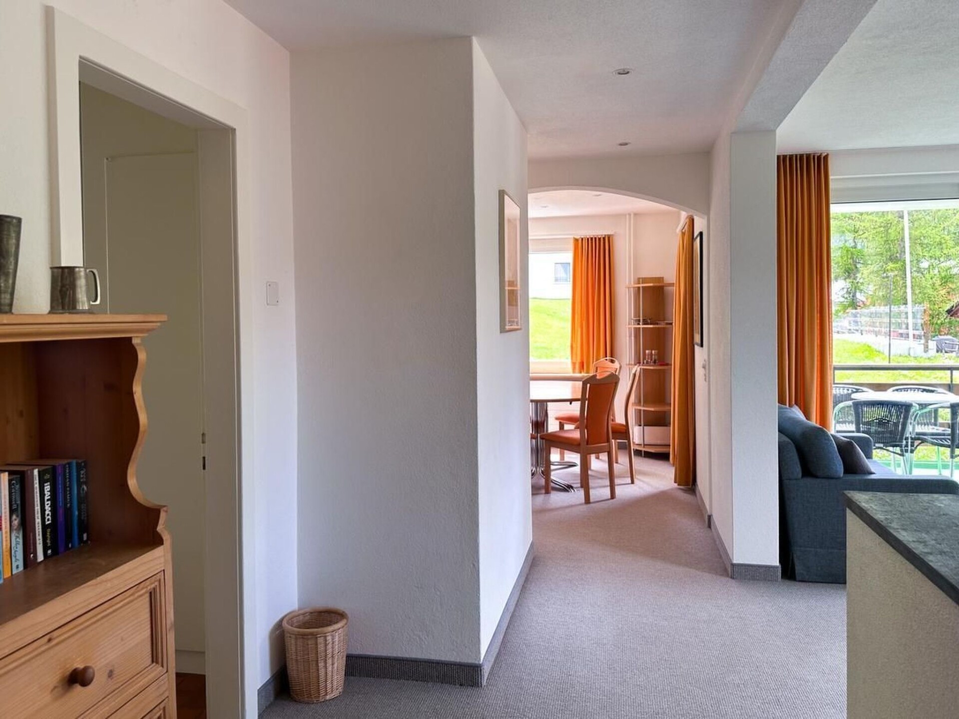 Zonnige, rustig gelegen, panoramische 4,5 kamer flat (105m2) op de tussenverdieping, grote woon / eetkamer met satelliet-tv, radio, internetverbinding en directe toegang tot een grote tuin, evenals een apart balkon met tafel en stoelen, en dubbele beglazing. 3 tweepersoonsslaapkamers, kinderbedje beschikbaar. De nieuwe (nov.2023) keuken met vaatwasser, oven, koffiezetapparaat raclette oven, kaasfondue, kruiden, thee, koffie en basisvoedsel zoals rijst en pasta, om te kopen, alleen wanneer uit. Servies van Villeroy&Boch. Badkamer met bad en douche, dubbele wastafel, WC. Aparte WC. Algemene fiets-/skiruimte, wasruimte met wasmachine en droger. Garage en 1-2 parkeerplaatsen indien nodig. Dichtbij bushalte, curling-, ijs-, hockey-tennisbanen en kinderspeelplaats. Huisdieren toegestaan. Het dorp is ca. 5 min. te voet, winkelmogelijkheden in het dorp, Coop ca. 15 min, apotheek, zuivel, bakker, sportwinkels allemaal op loopafstand.